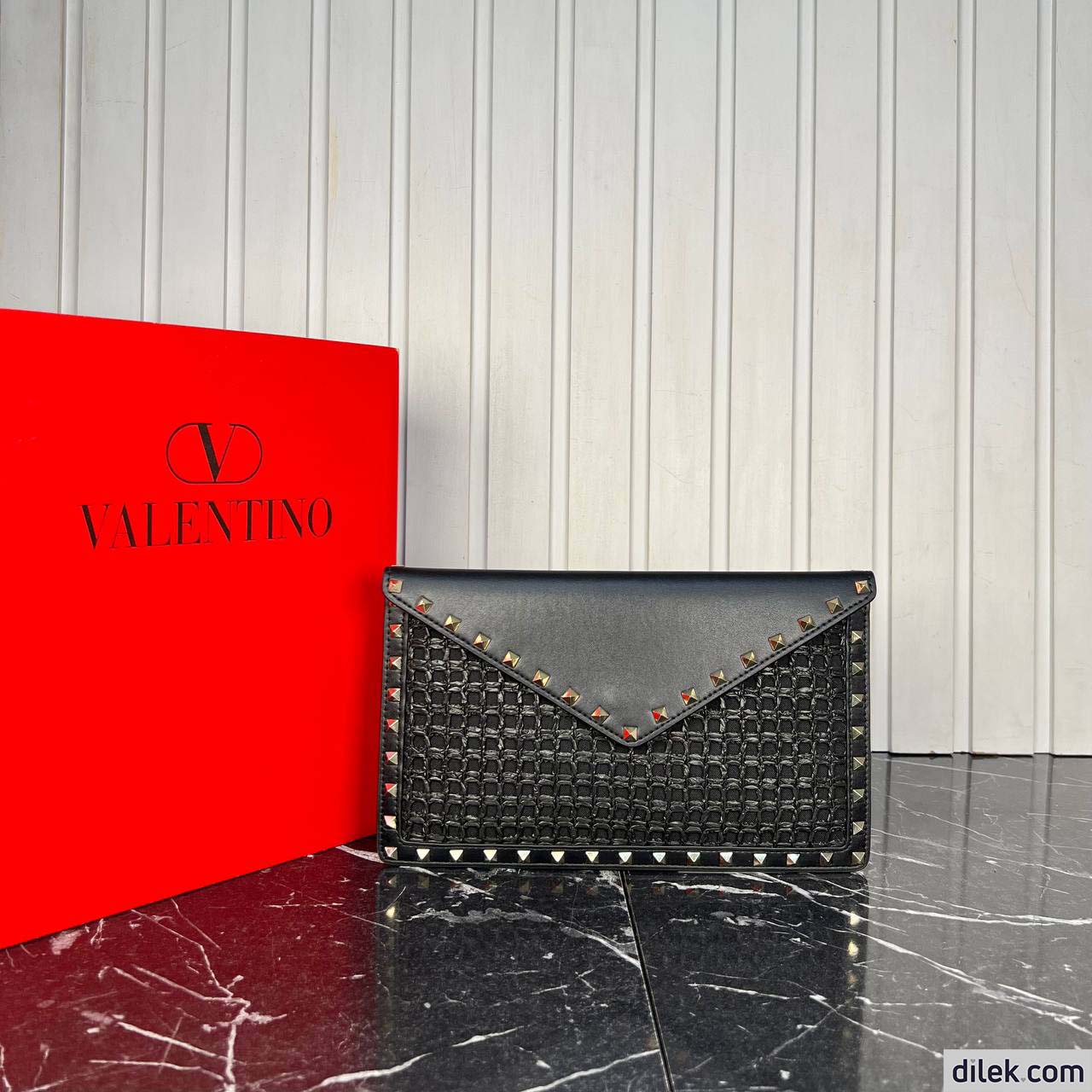 Valentino Garavani Rockstud Raffia Clutch Bag