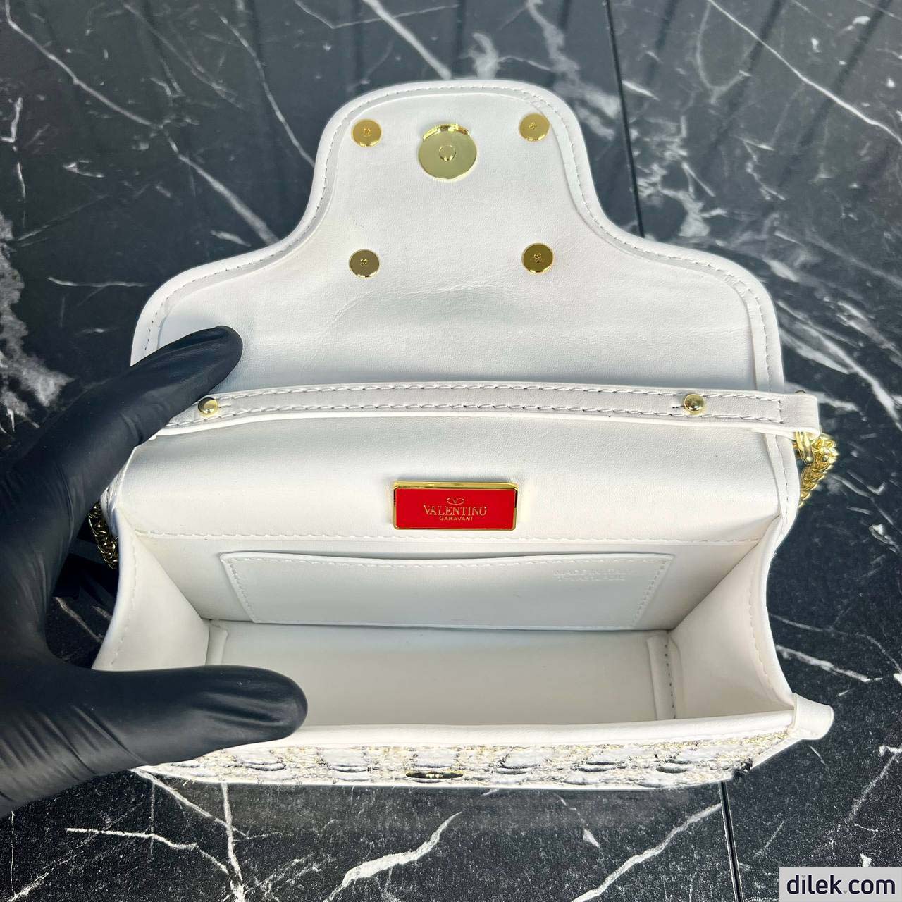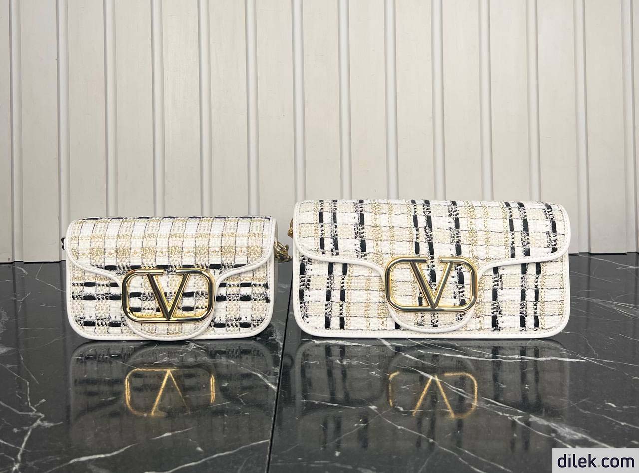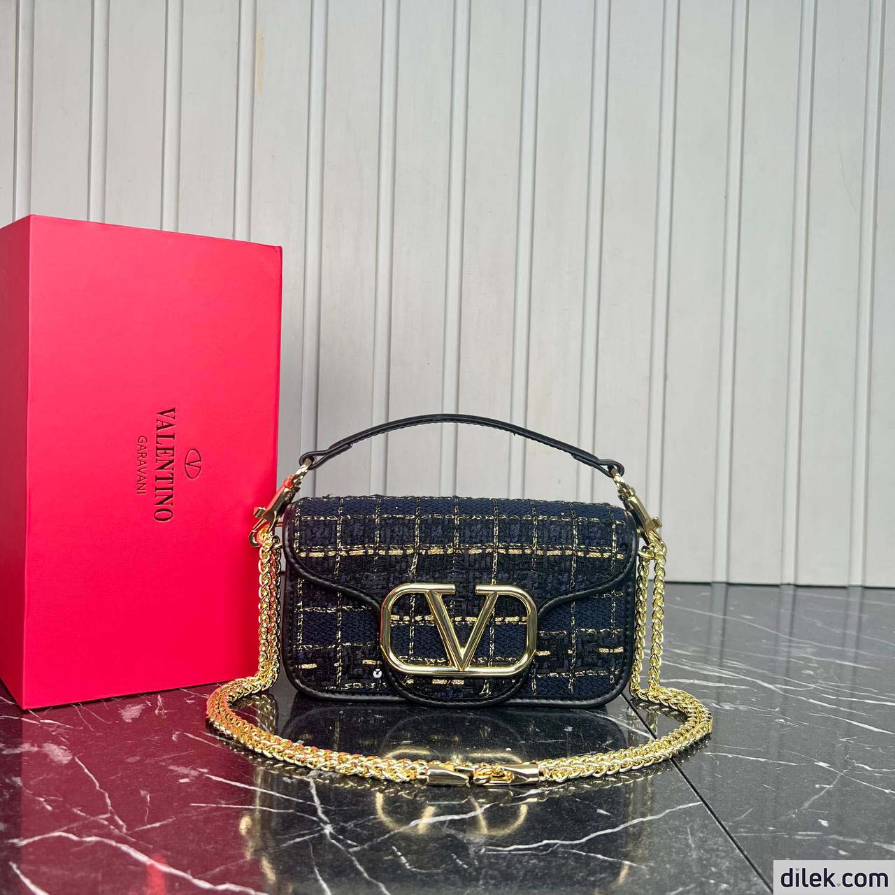 Valentino Garavani Loco small shoulder bag in Toile Iconographe with metallic VLogo Signature detail. Equipped with both a detachable sliding chain strap and a detachable handle, this accessory can be worn as a crossbody/shoulder bag or carried as a handbag.
