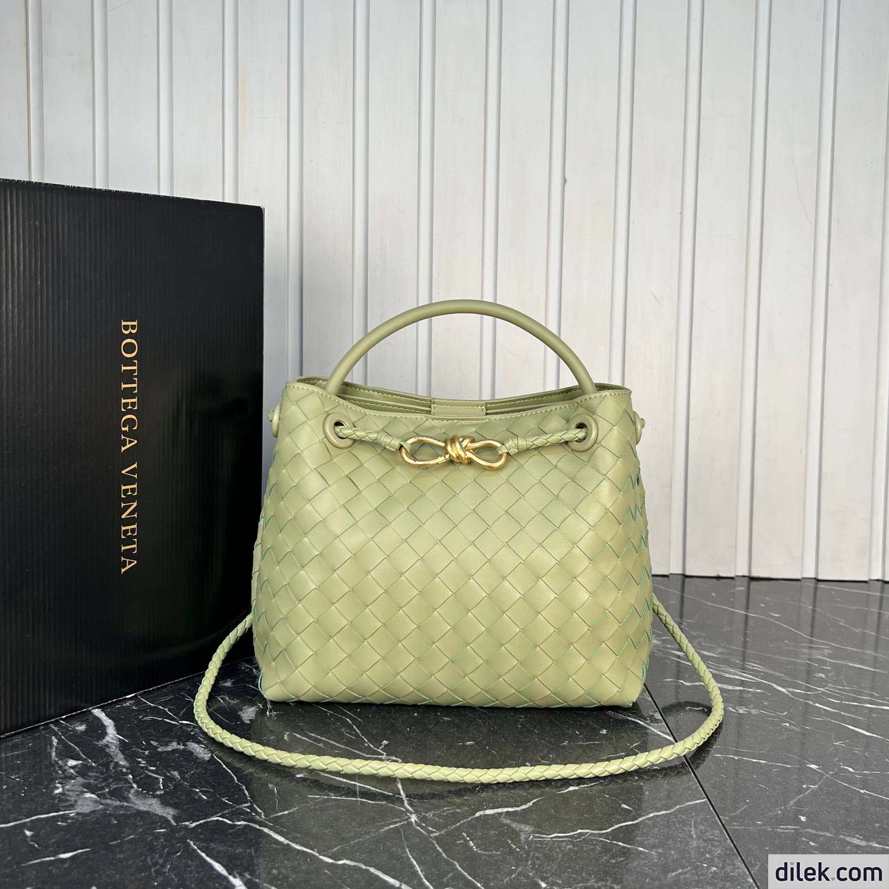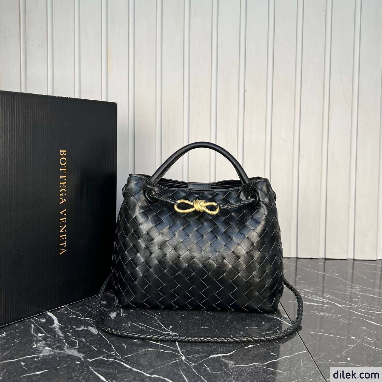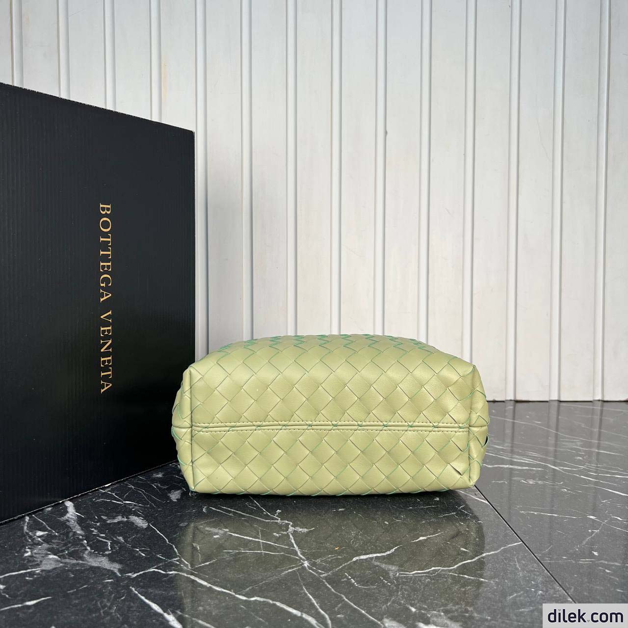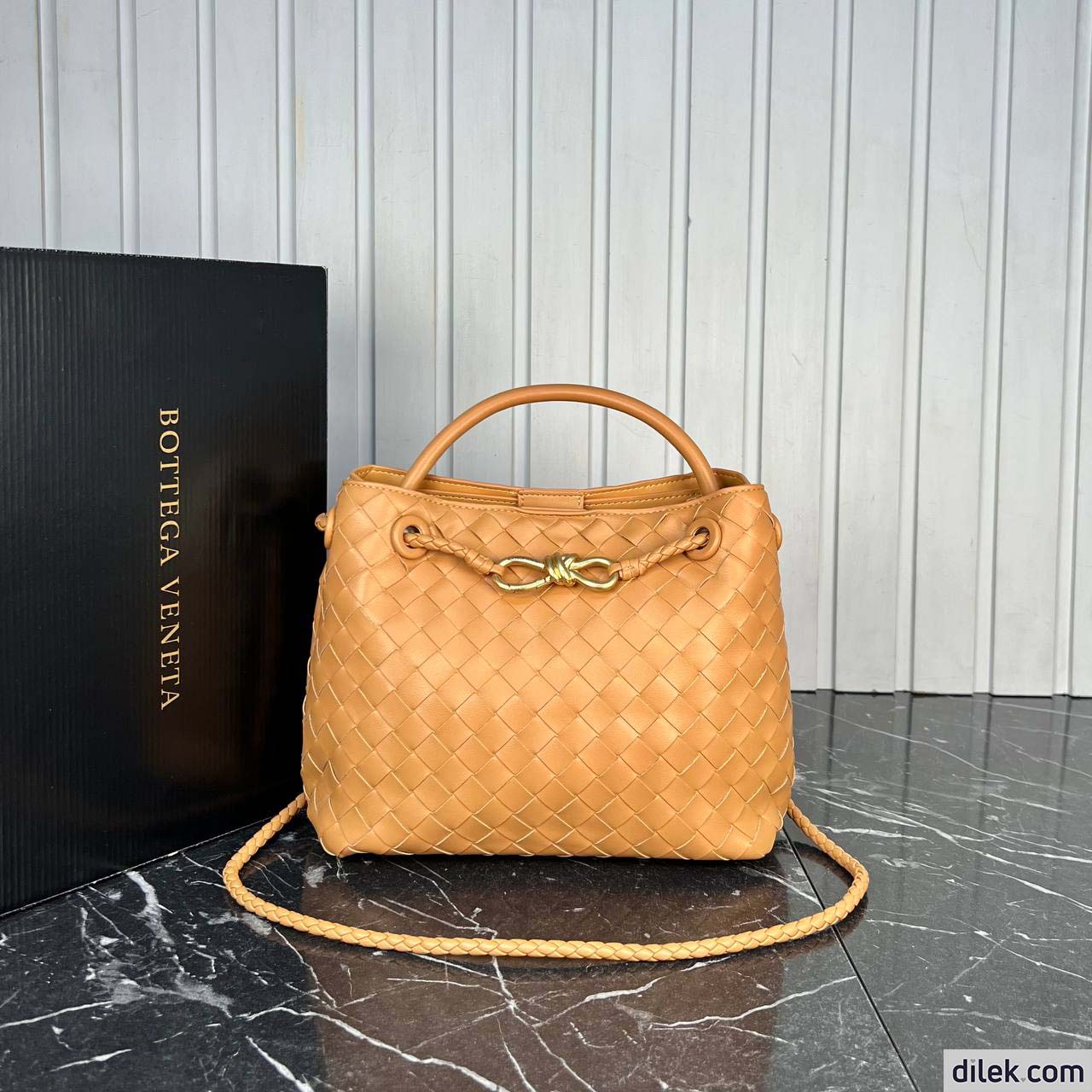 Top handle bag in supple Intrecciato leather with signature knot detail and sliding cross-body strap.