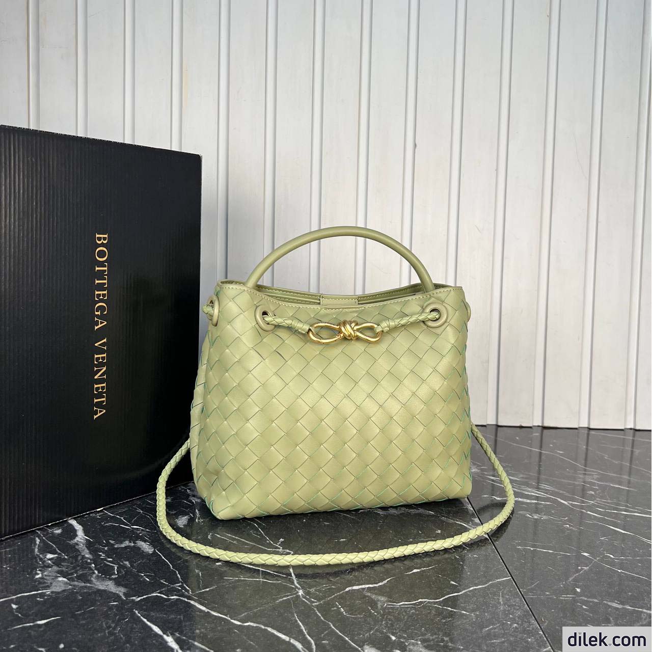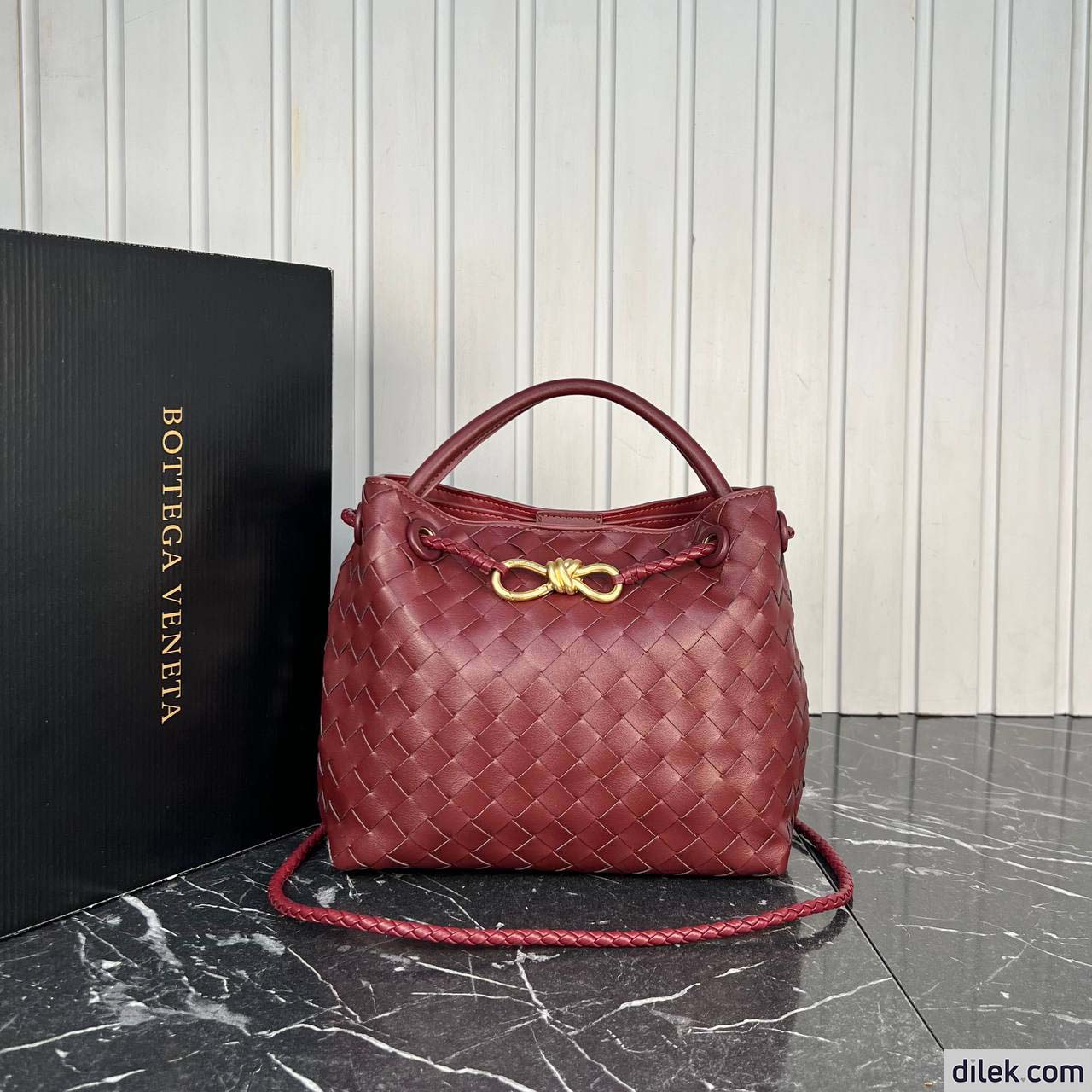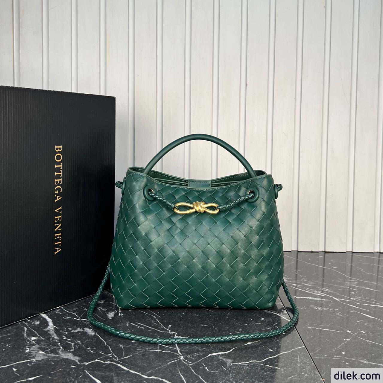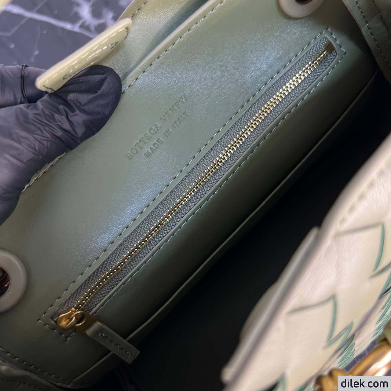 Top handle bag in supple Intrecciato leather with signature knot detail and sliding cross-body strap.