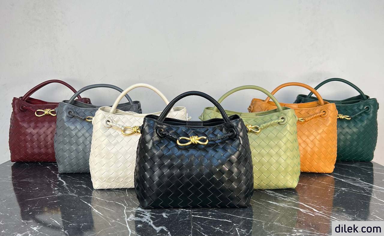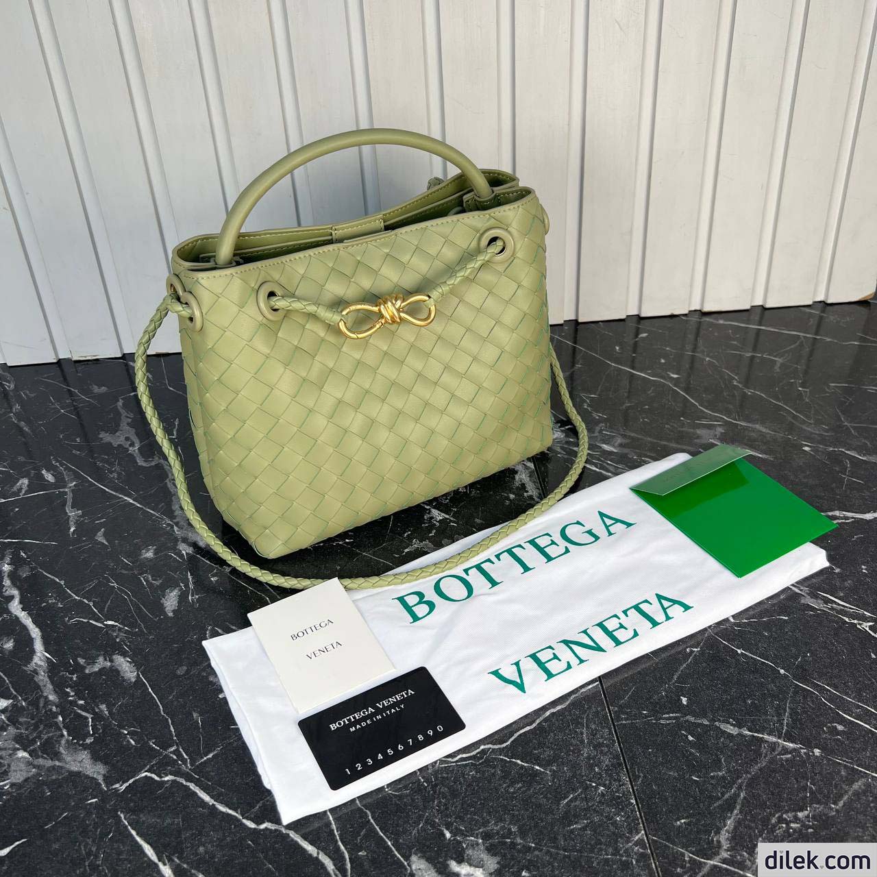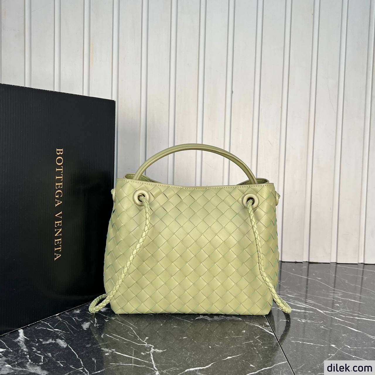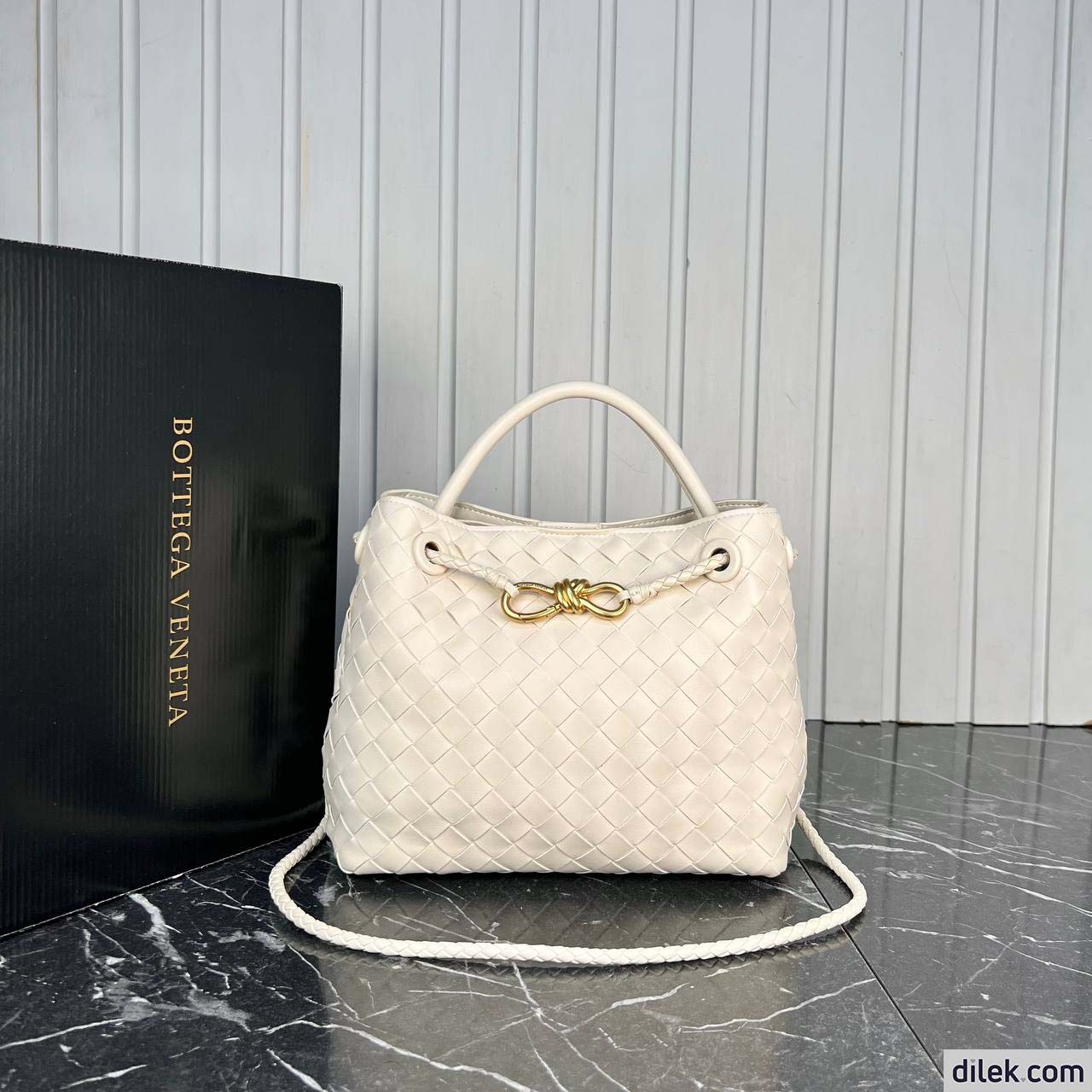 Top handle bag in supple Intrecciato leather with signature knot detail and sliding cross-body strap.