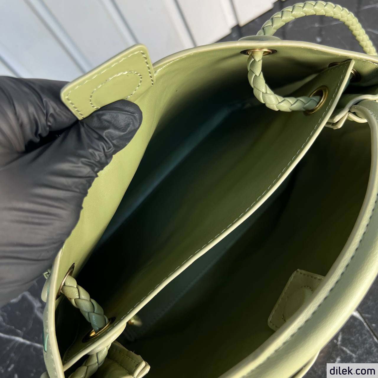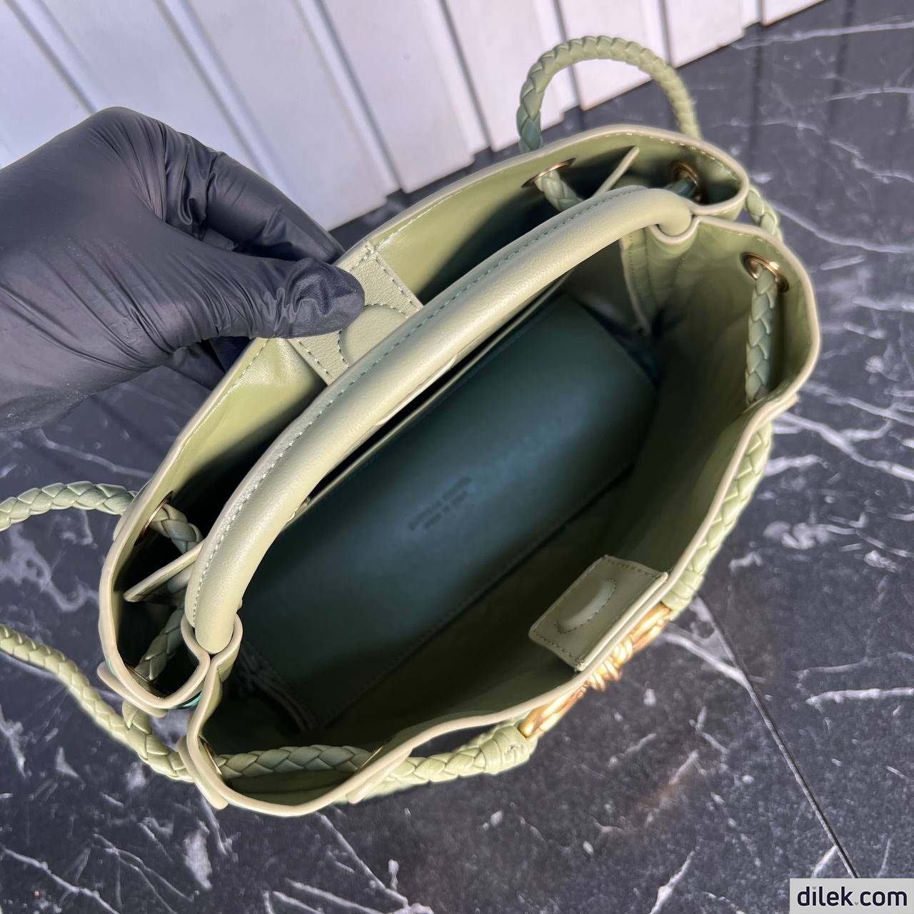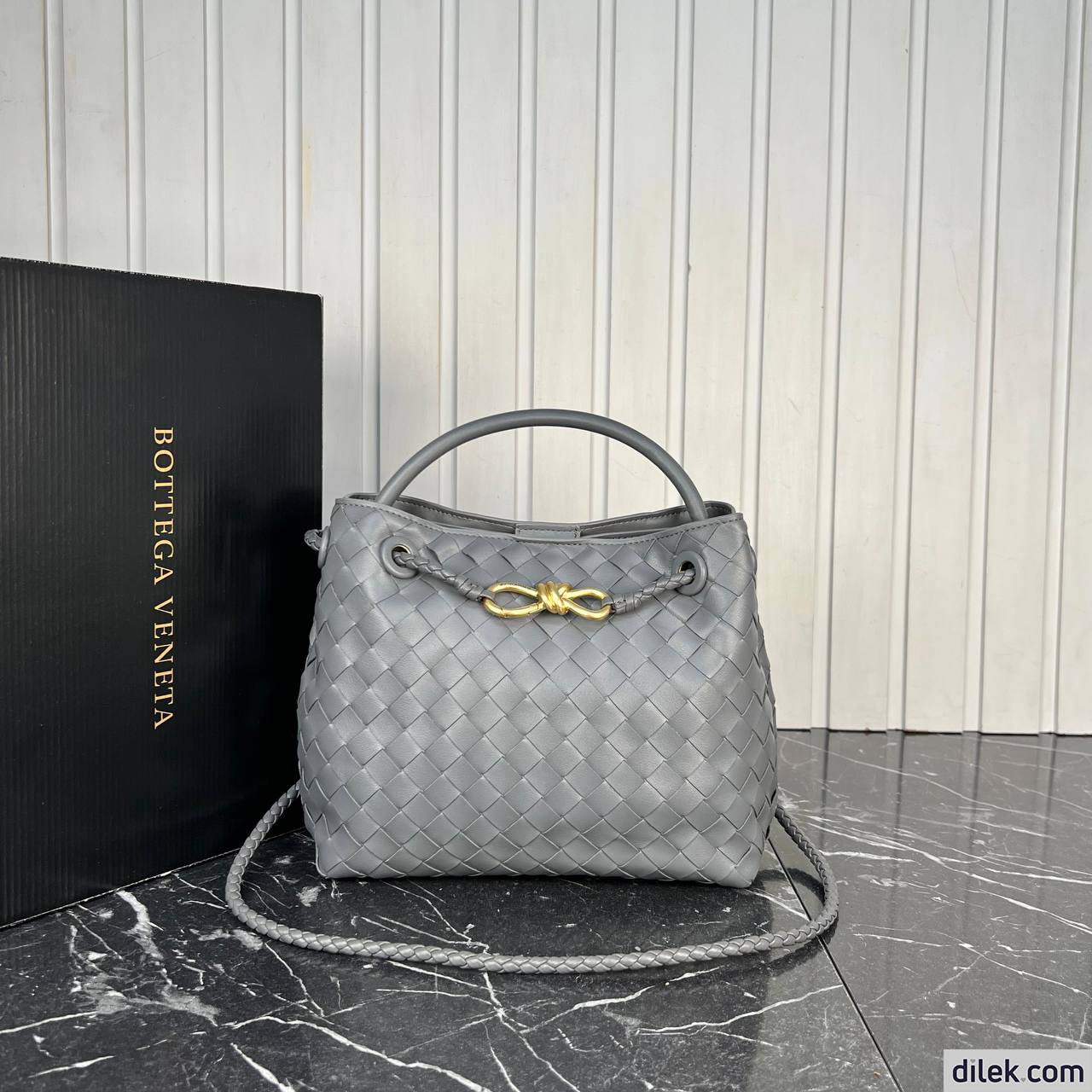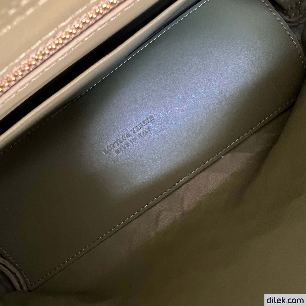Top handle bag in supple Intrecciato leather with signature knot detail and sliding cross-body strap.