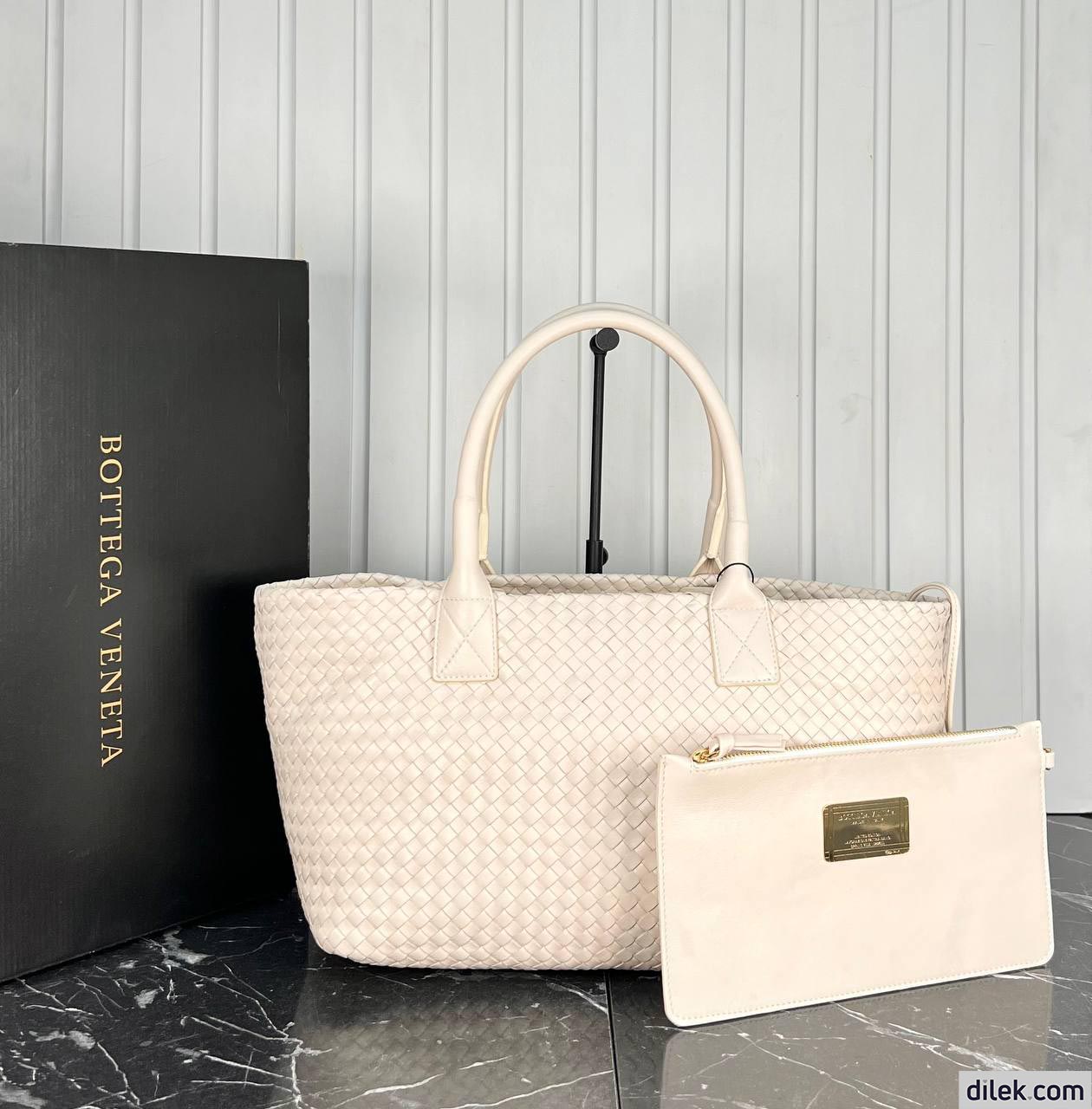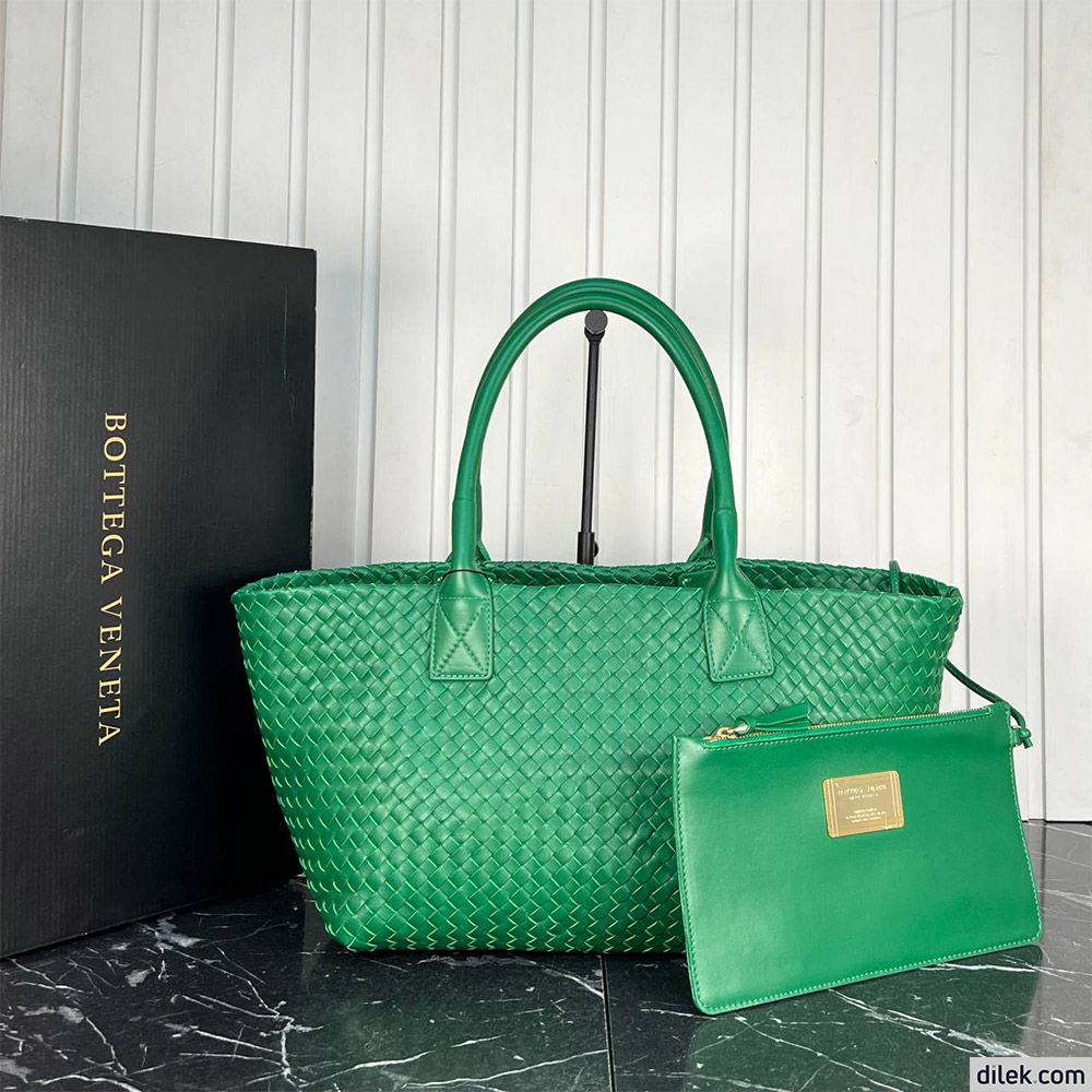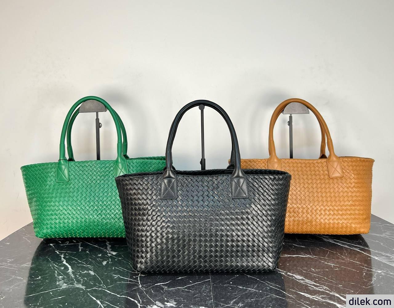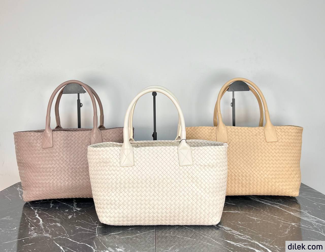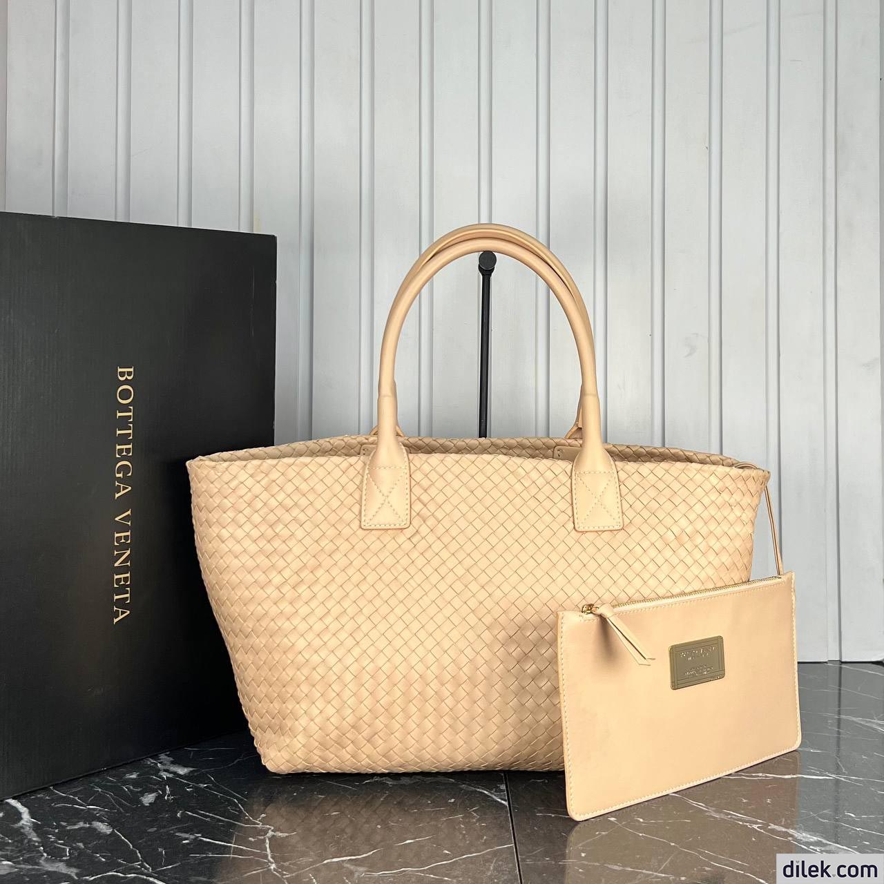 Timeless tote bag meticulously made from supple lambskin leather using Intreccio Craftsmanship.