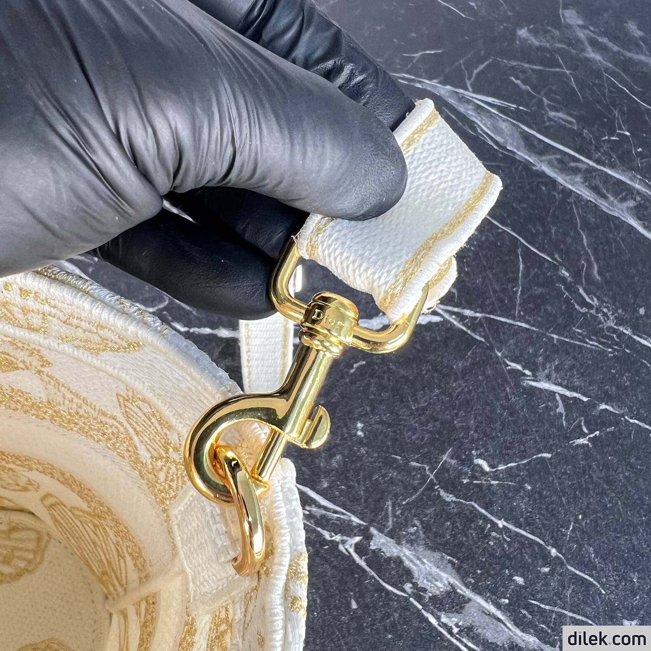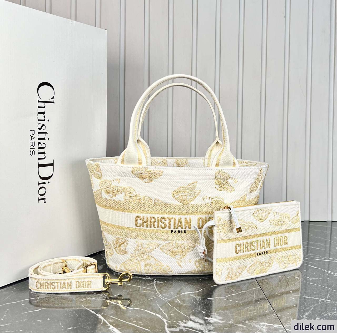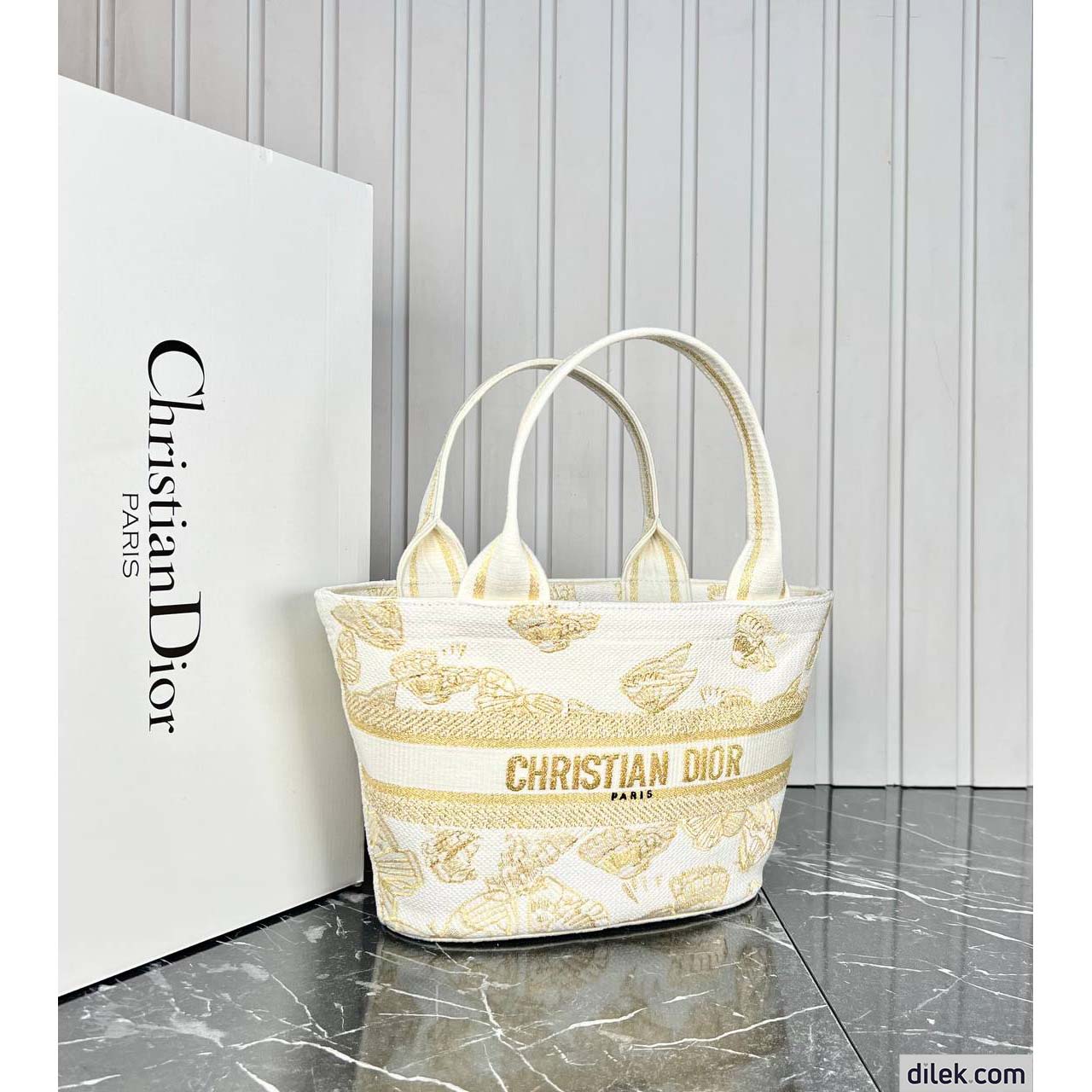 New for the Cruise 2024 Collection, the hat basket bag stands out with its elegant silhouette combining functionality and refinement. Fully embroidered with a white and gold-tone Gradient Butterflies motif, it showcases a kaleidoscope of butterflies in a gradient effect and is enhanced by a Christian Dior Paris signature on the front. Equipped with a tonal detachable zip pouch, the spacious bag is completed with an adjustable and removable embroidered strap, allowing it to be carried by hand, worn over the shoulder or crossbody.