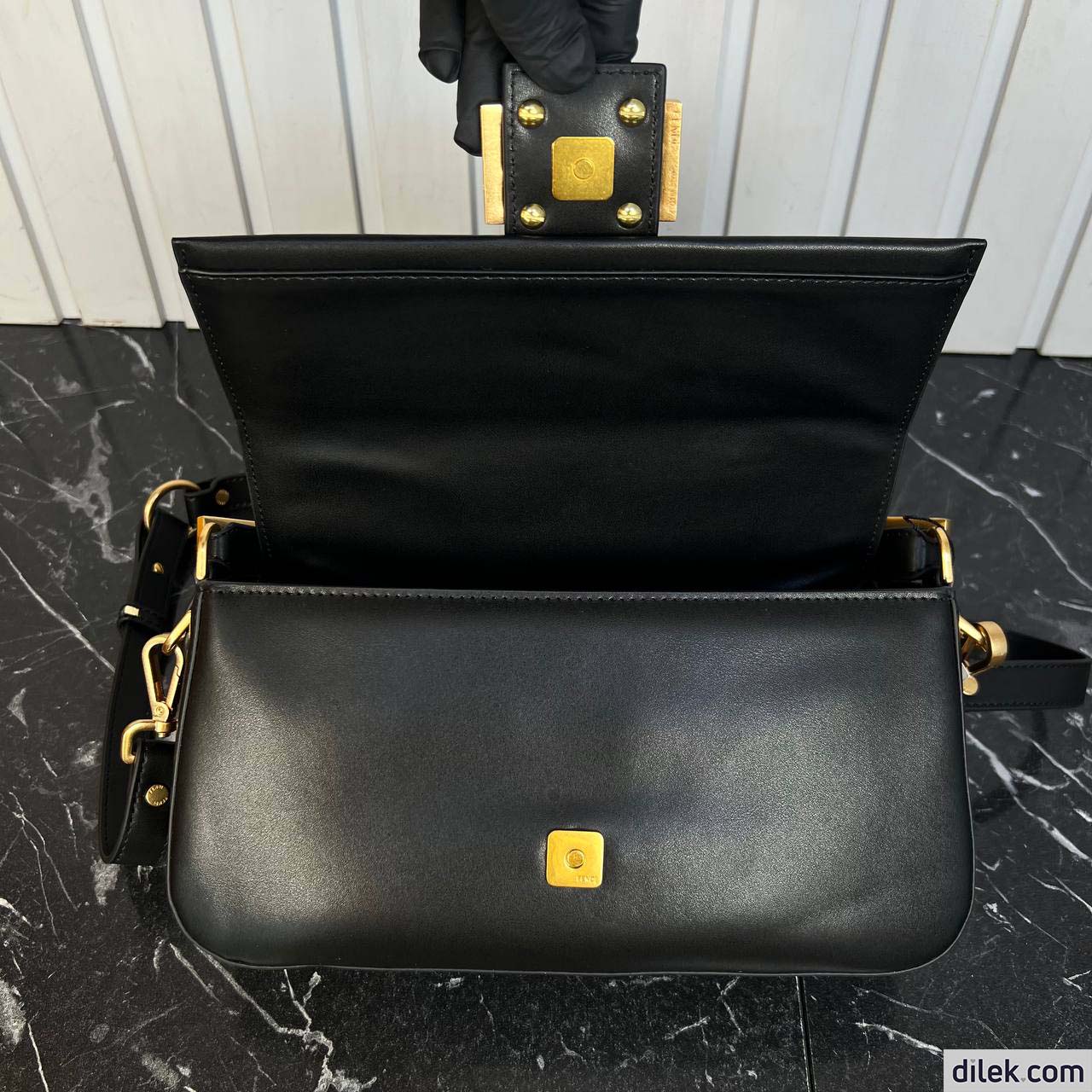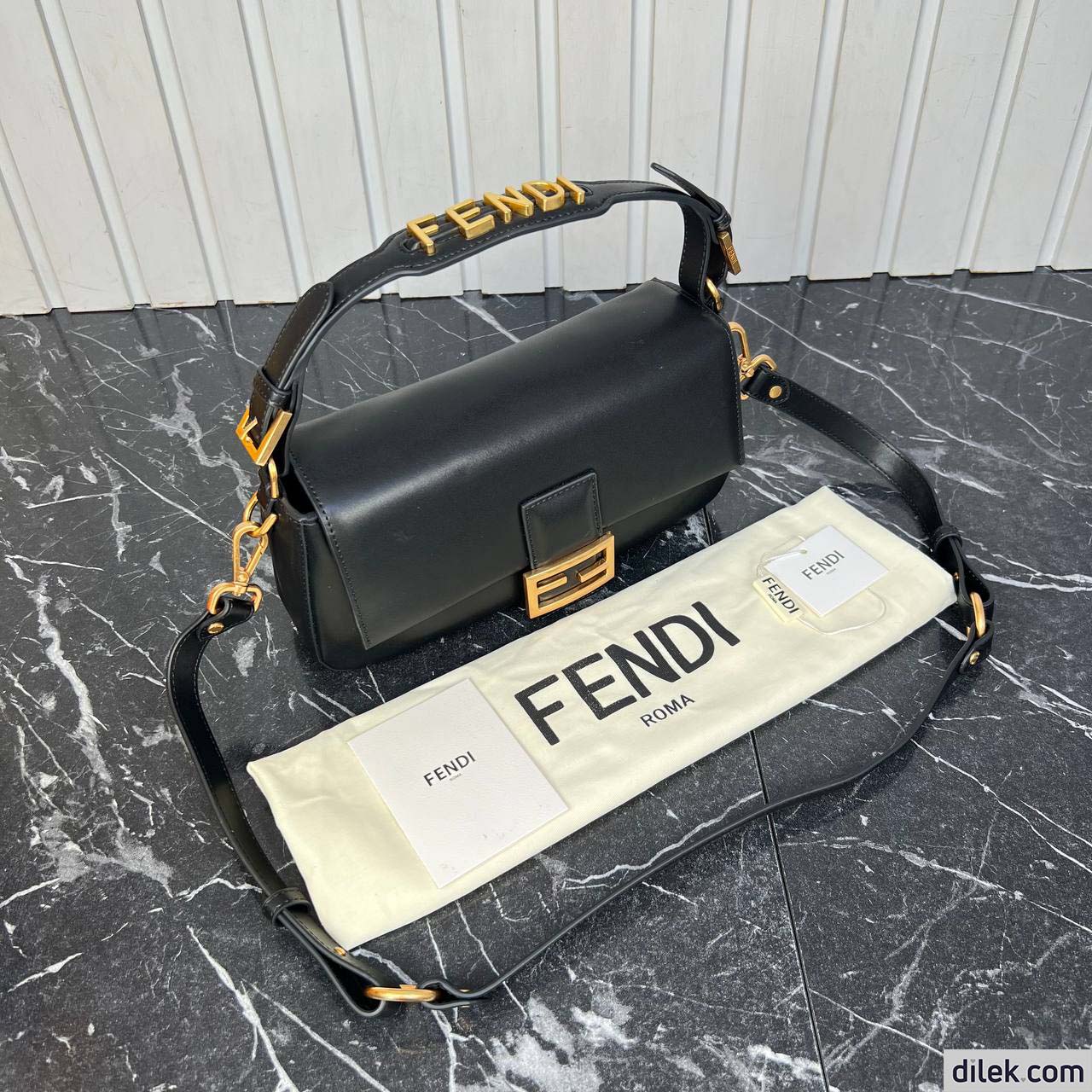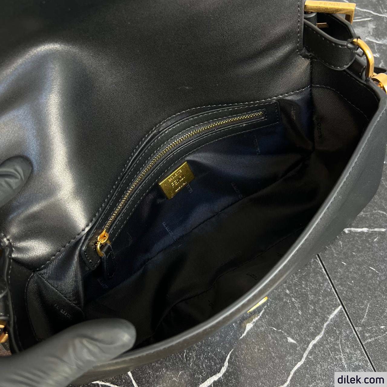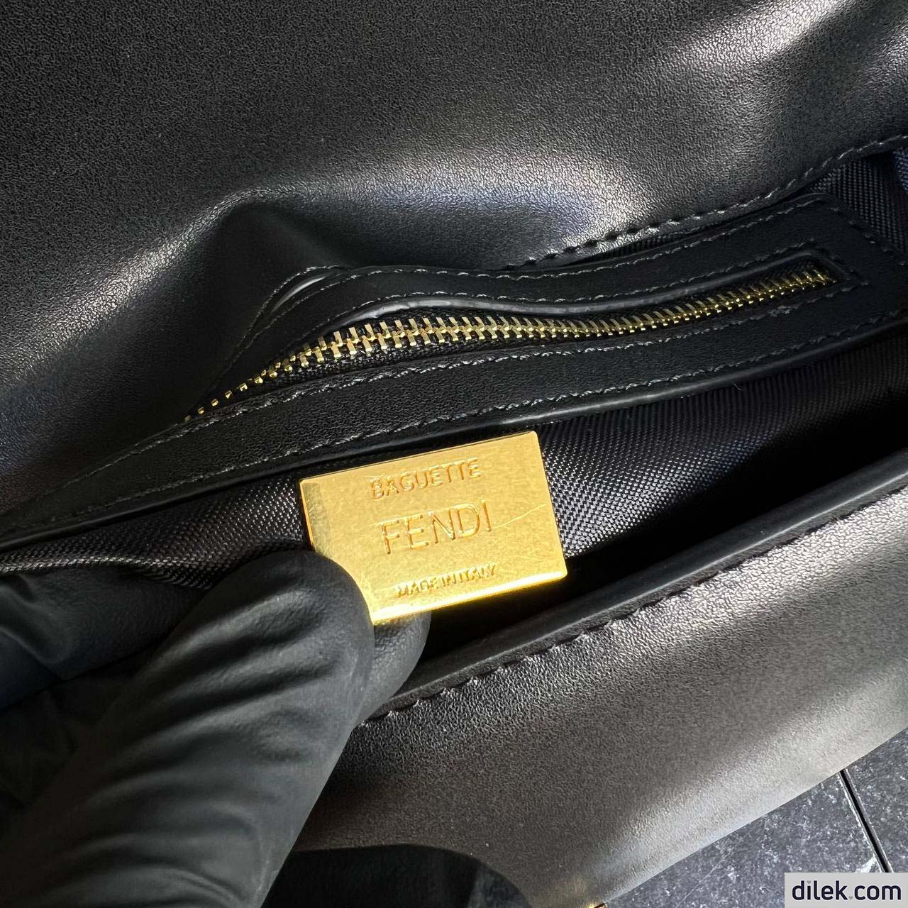 Iconic medium Baguette bag, created in 1997 which went on to become the first It bag. Versatile and with timeless appeal, it features the iconic underarm design inspired by the French Baguette bread from which it takes its name. Made of jacquard fabric with the iconic FF motif in brown, decorated with an FF clasp and trimmed with black embroidery.