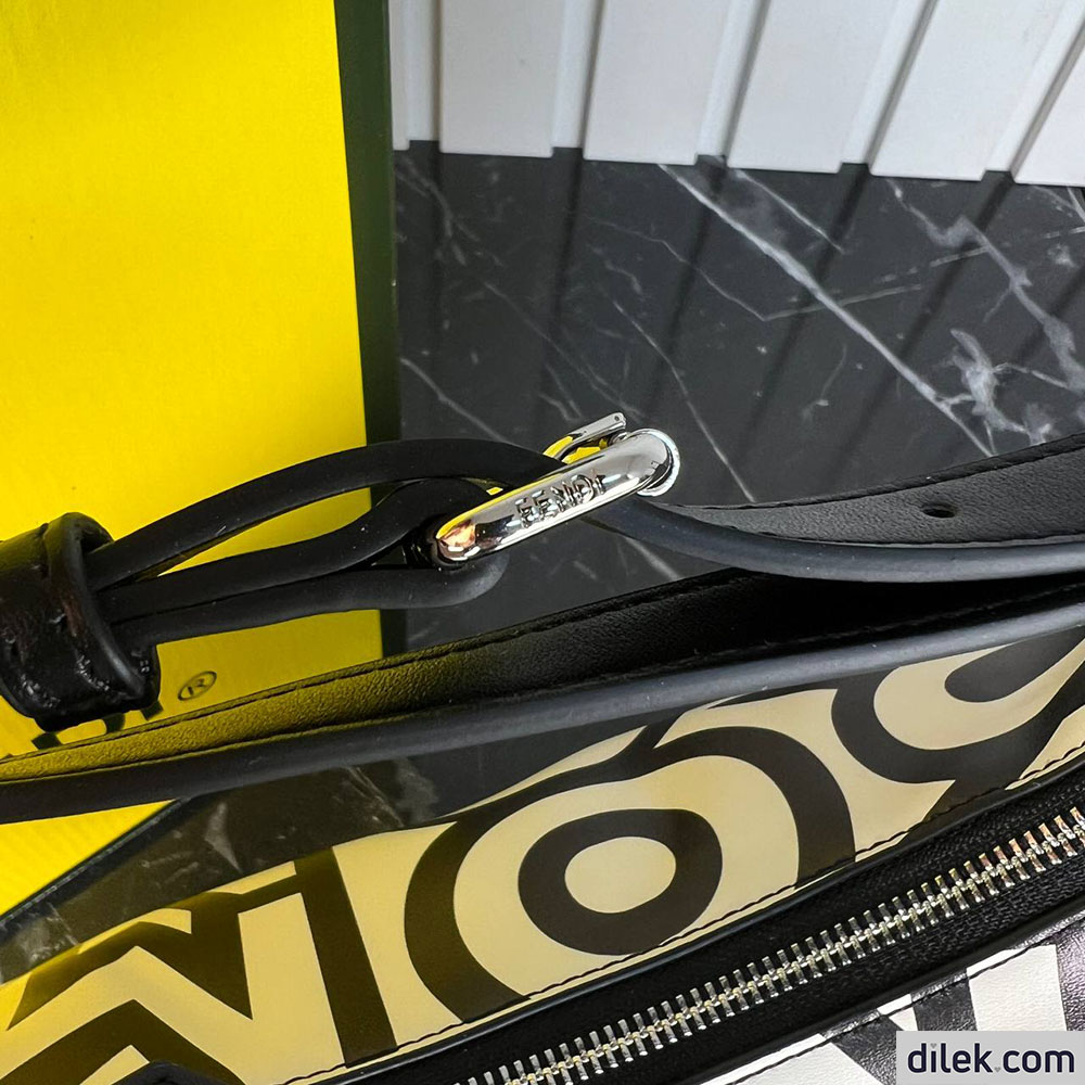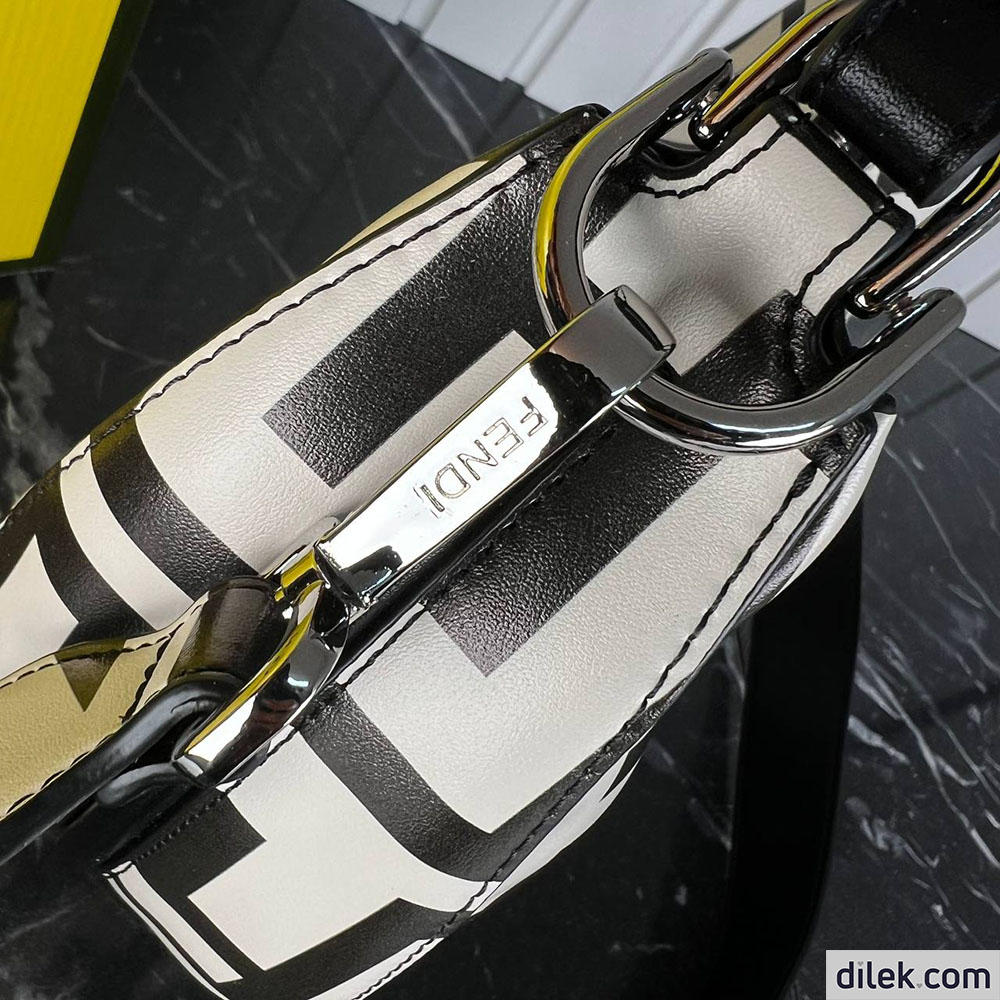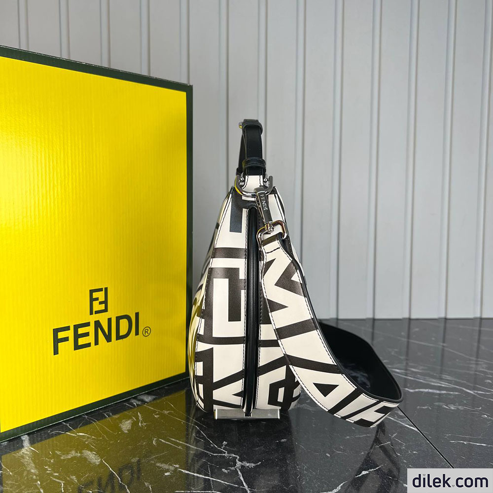 Small hobo bag made of soft black leather, with vintage gold metal FENDI lettering visible when the bag is worn under the arm. Zip closure with fabric-lined internal compartment, gold-finish metalware. Can be worn under the arm or cross-body thanks to the adjustable, detachable handle and the hooks that allow a shoulder strap to be attached.