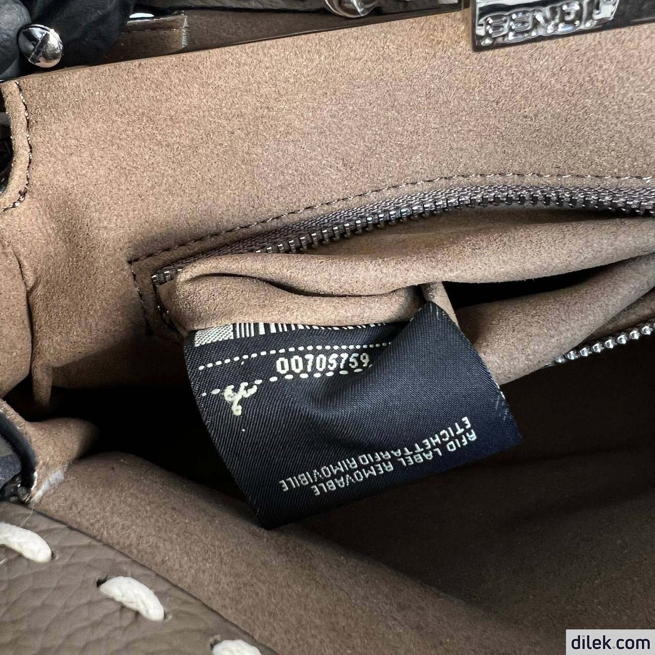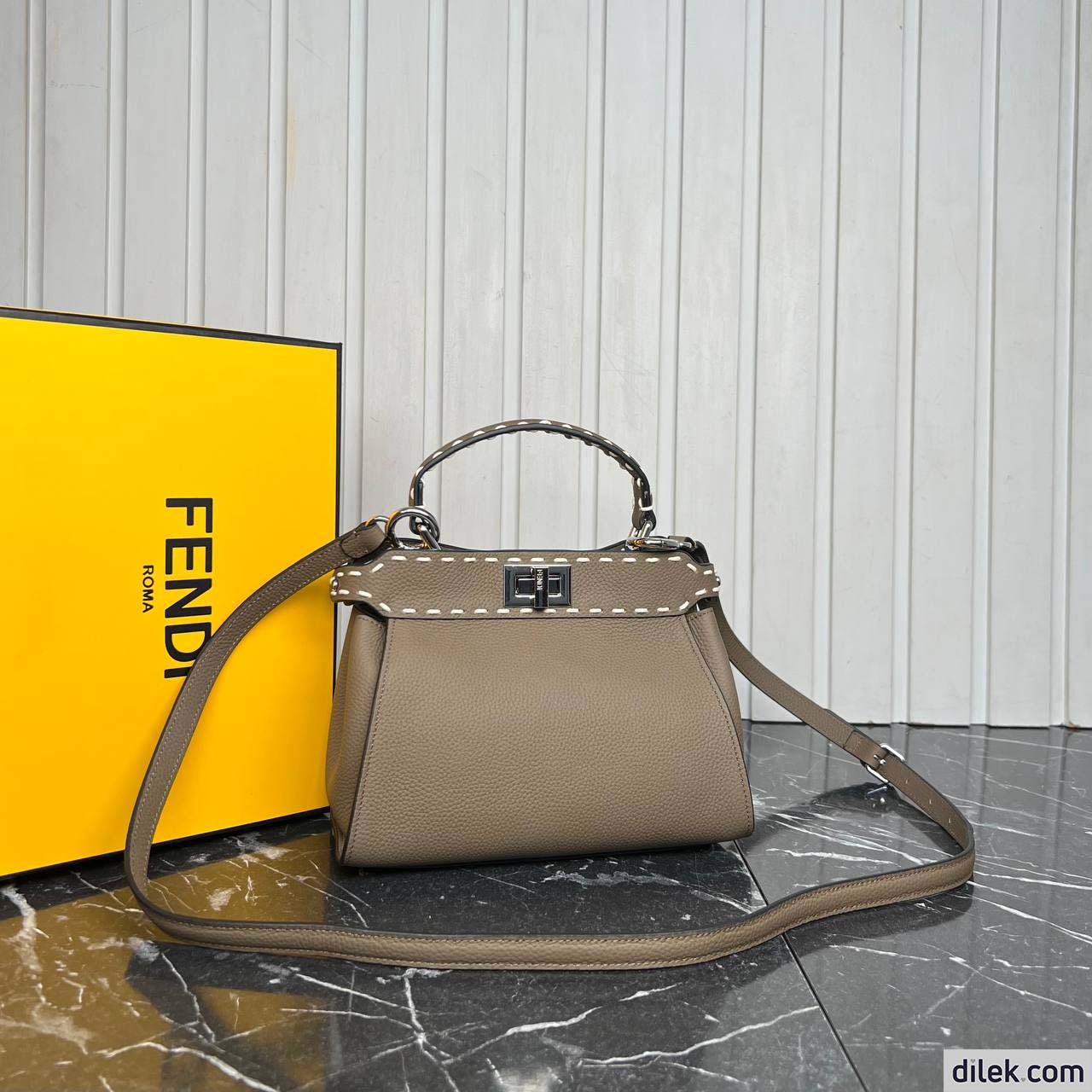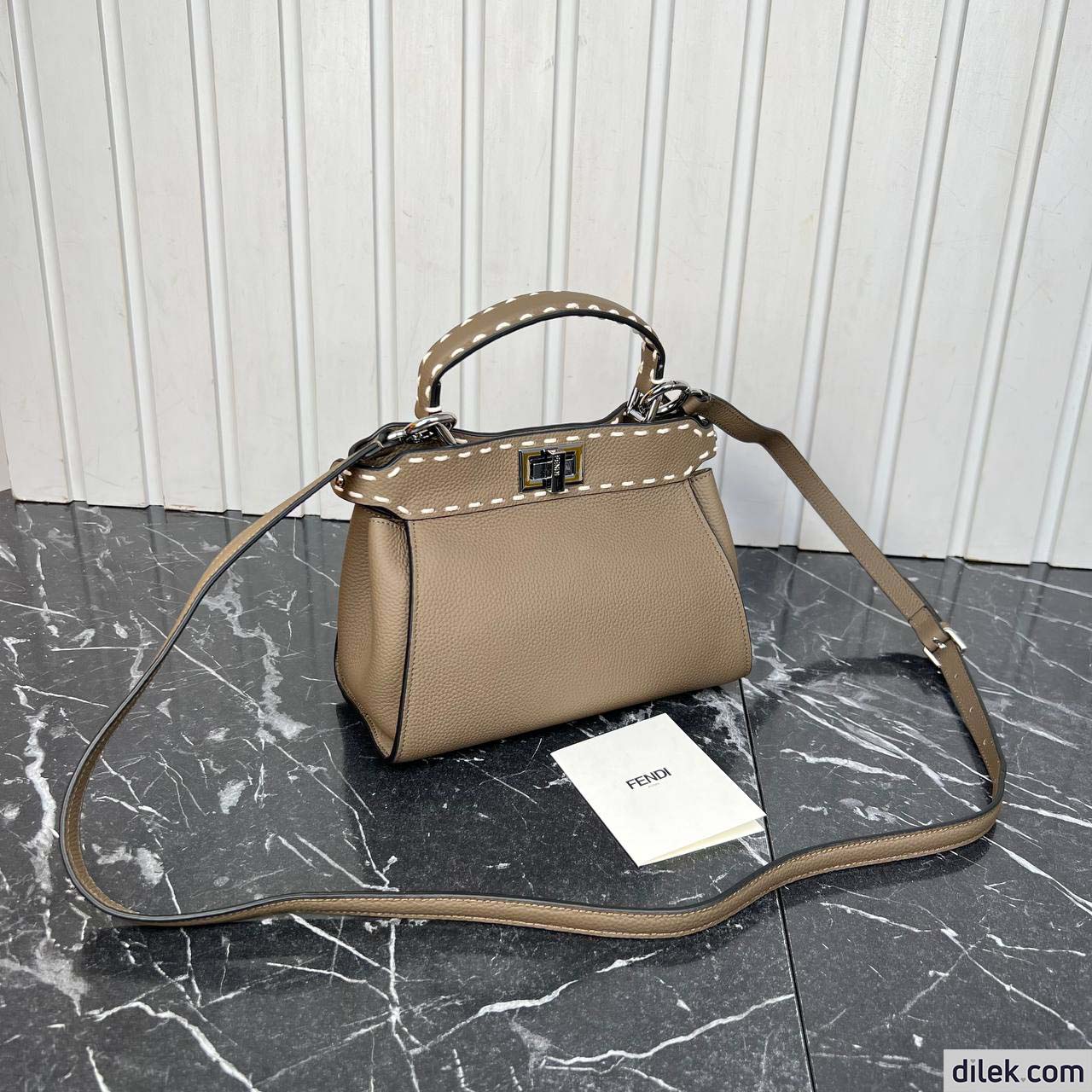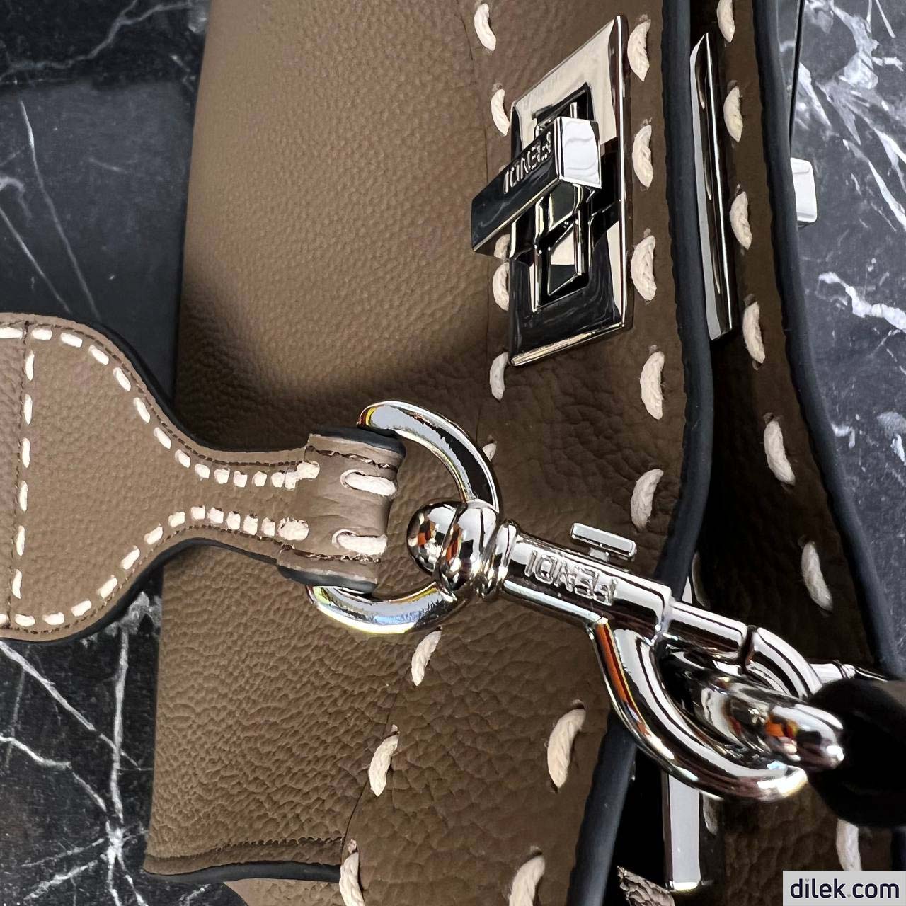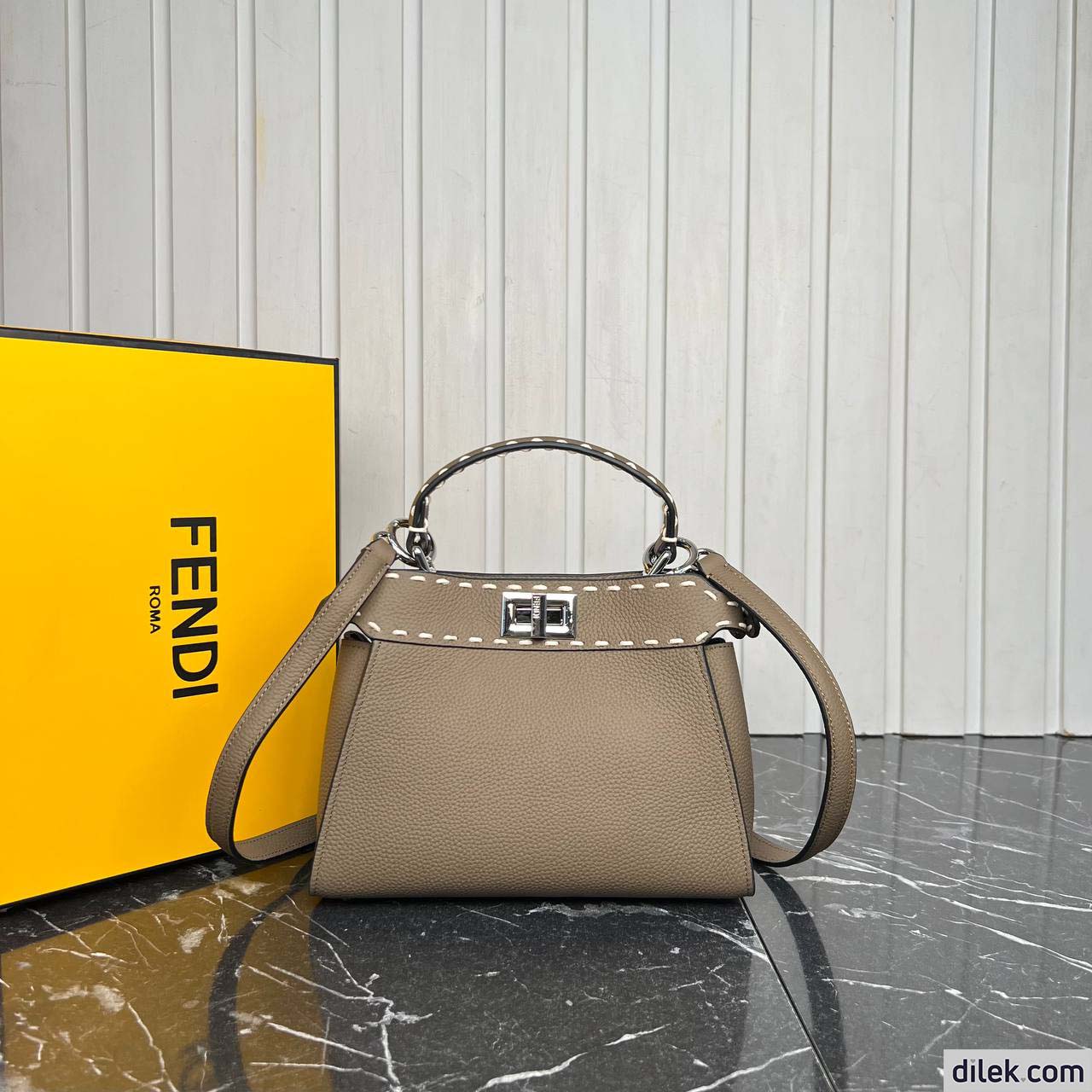Iconic small Peekaboo bag made of soft black leather and embellished with the classic twist lock on both sides. Features a tone-on-tone nappa leather lining with two compartments separated by a stiff partition, an inner zipper pocket and gold-finish metalware. The bag can be carried by hand or worn either on the shoulder or cross-body thanks to the handle and adjustable, detachable shoulder strap.