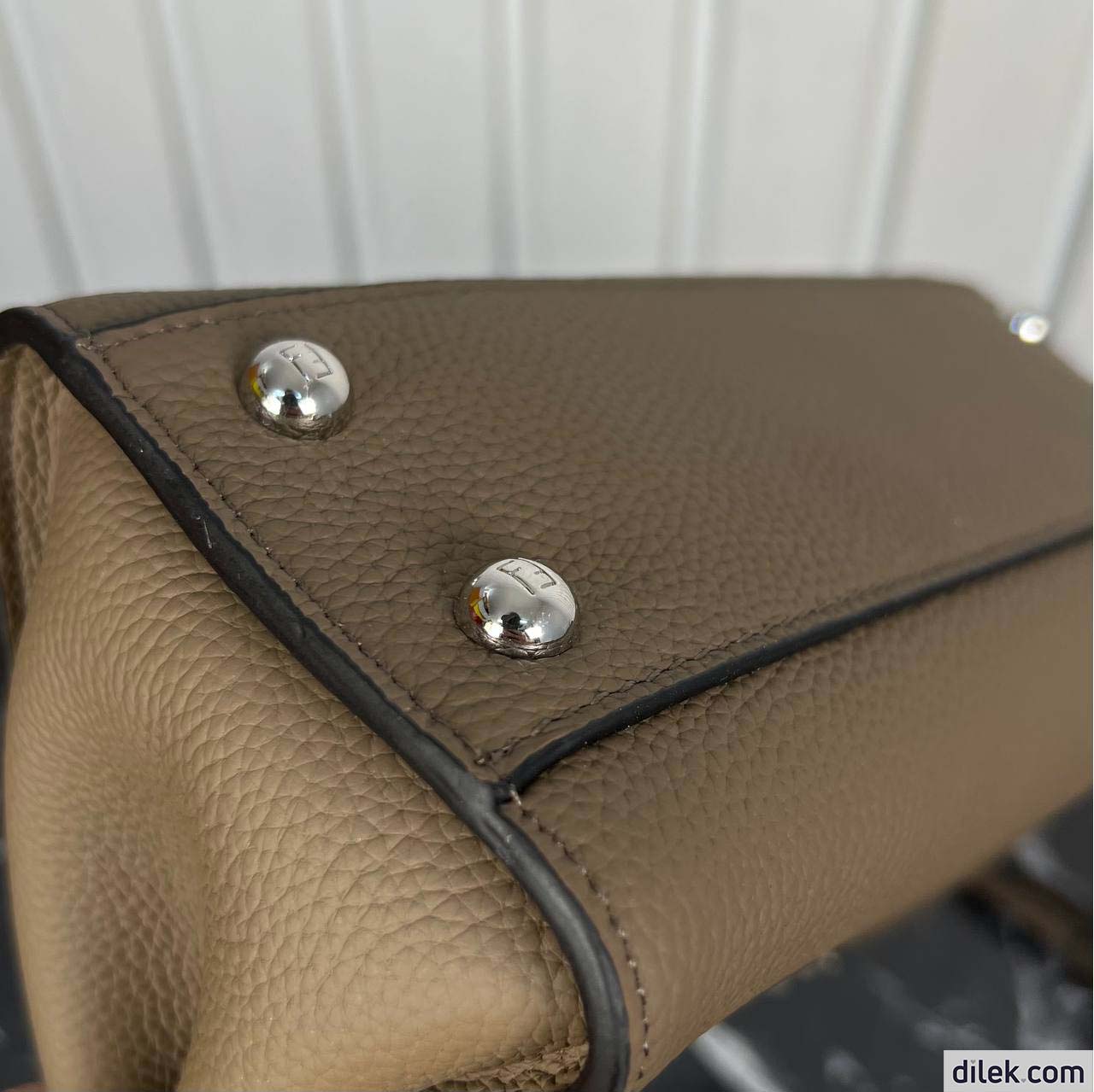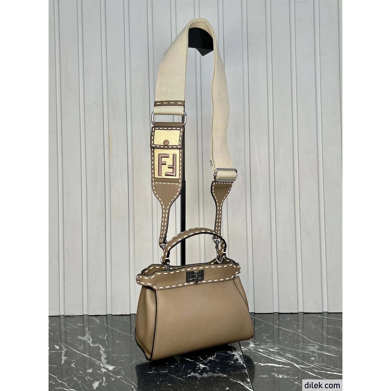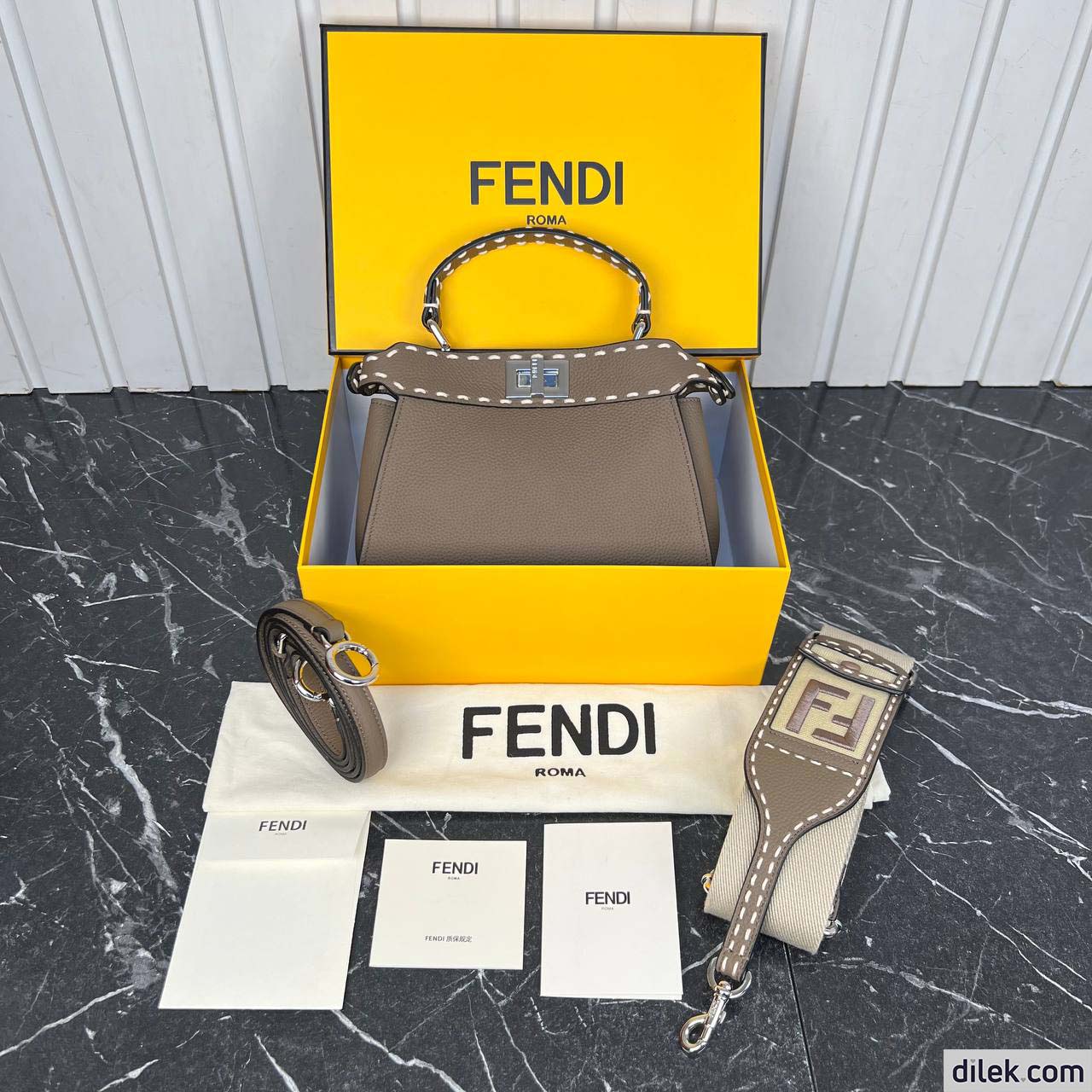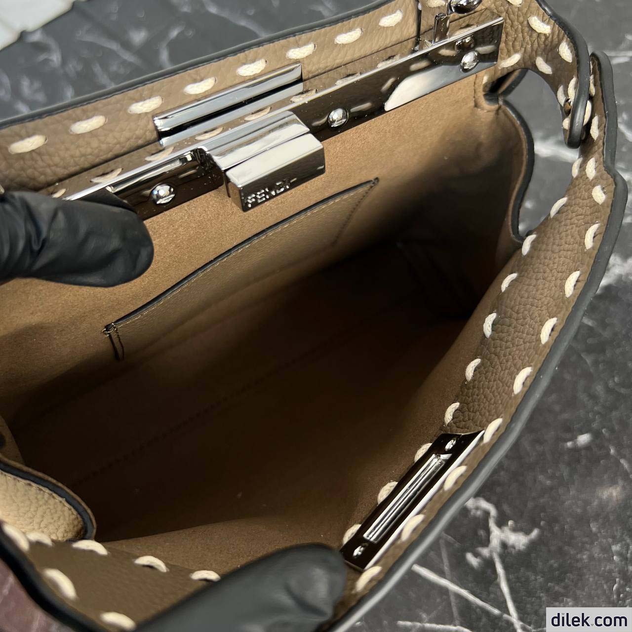 Iconic small Peekaboo bag made of soft black leather and embellished with the classic twist lock on both sides. Features a tone-on-tone nappa leather lining with two compartments separated by a stiff partition, an inner zipper pocket and gold-finish metalware. The bag can be carried by hand or worn either on the shoulder or cross-body thanks to the handle and adjustable, detachable shoulder strap.