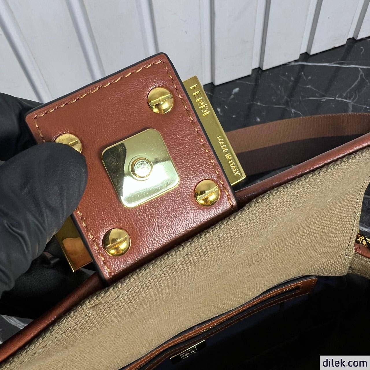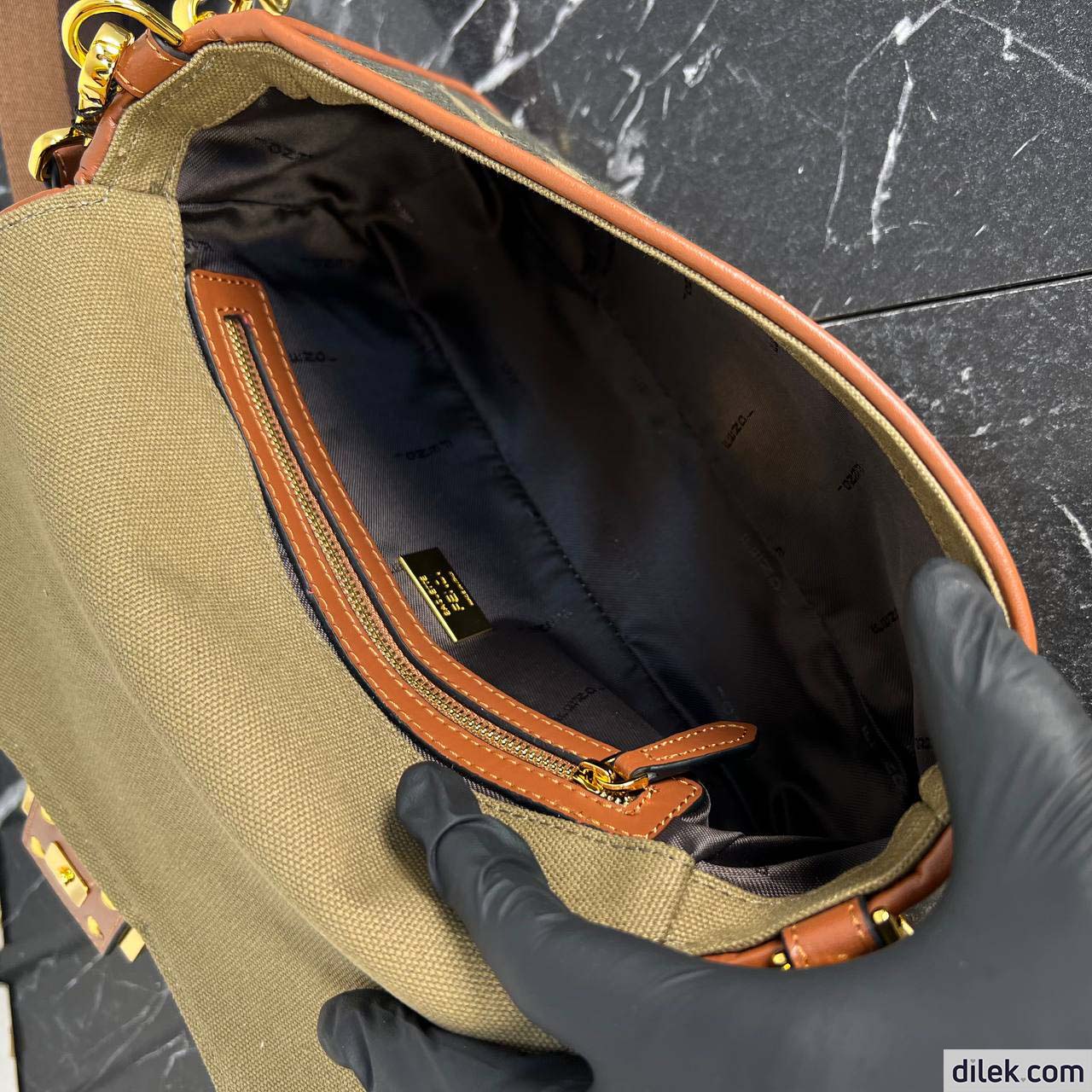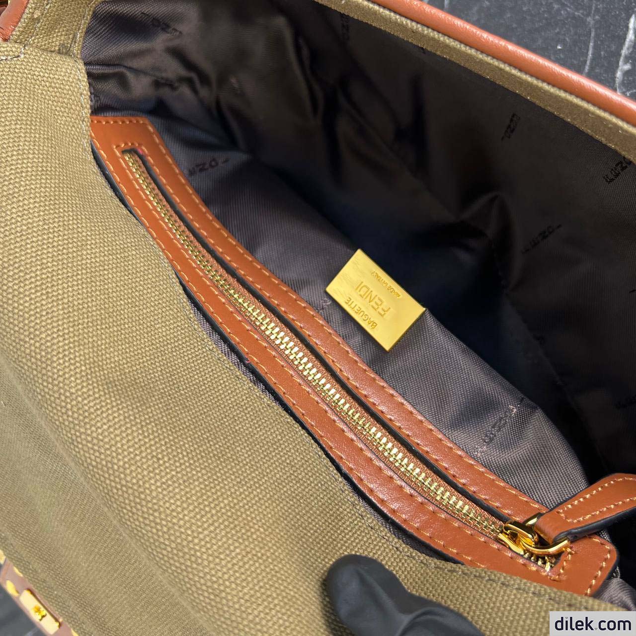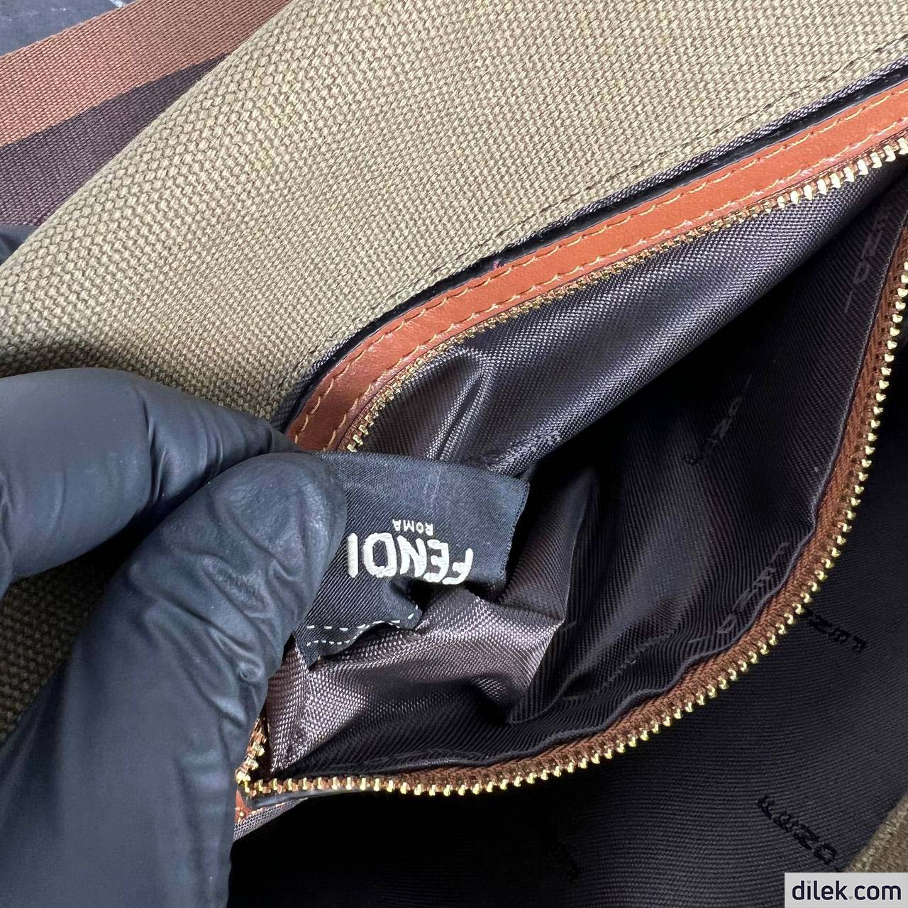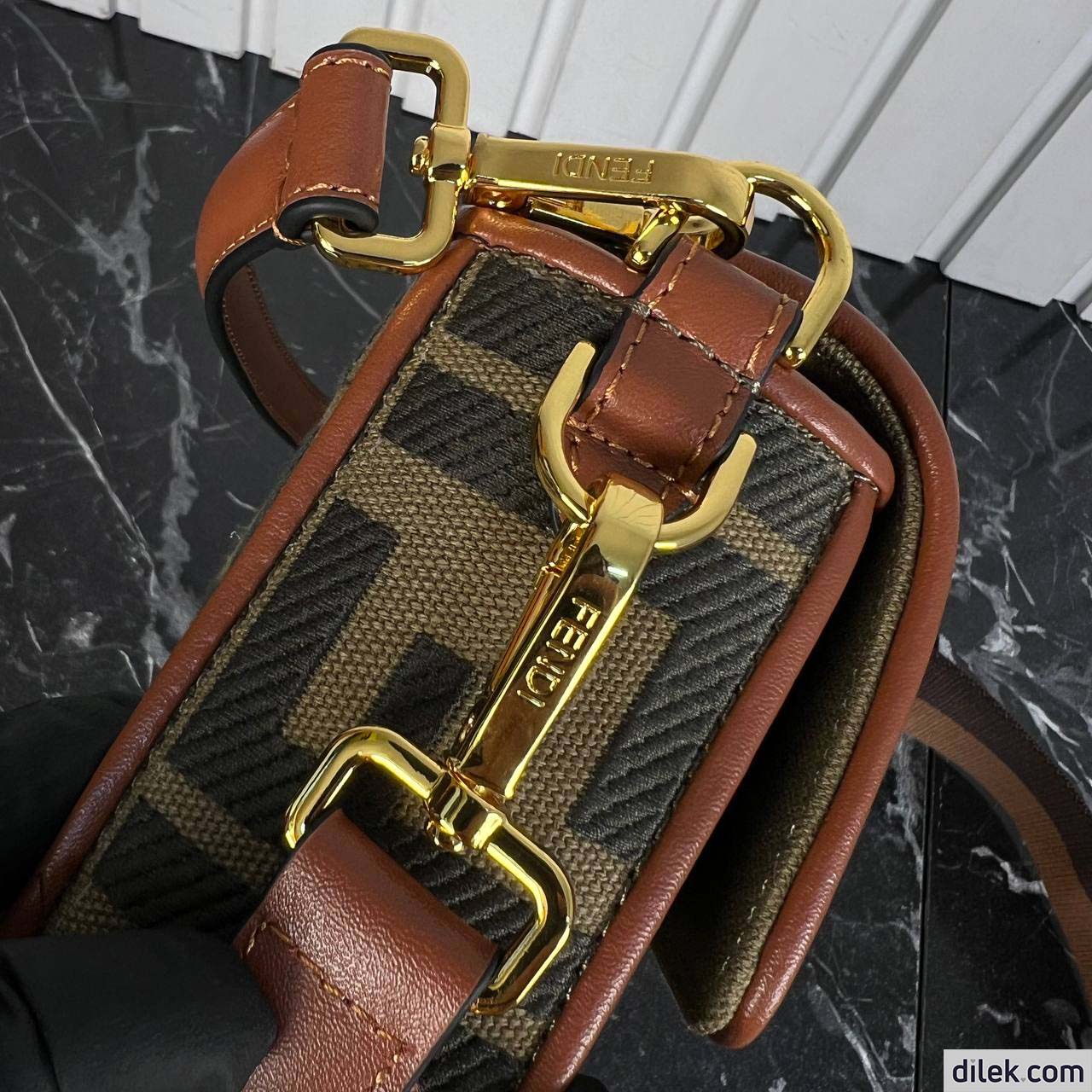 Iconic medium Baguette bag, created in 1997 which went on to become the first It bag. Versatile and with timeless appeal, it features the iconic underarm design inspired by the French Baguette bread from which it takes its name. Made of jacquard fabric with the iconic FF motif in brown, decorated with an FF clasp and trimmed with black embroidery.