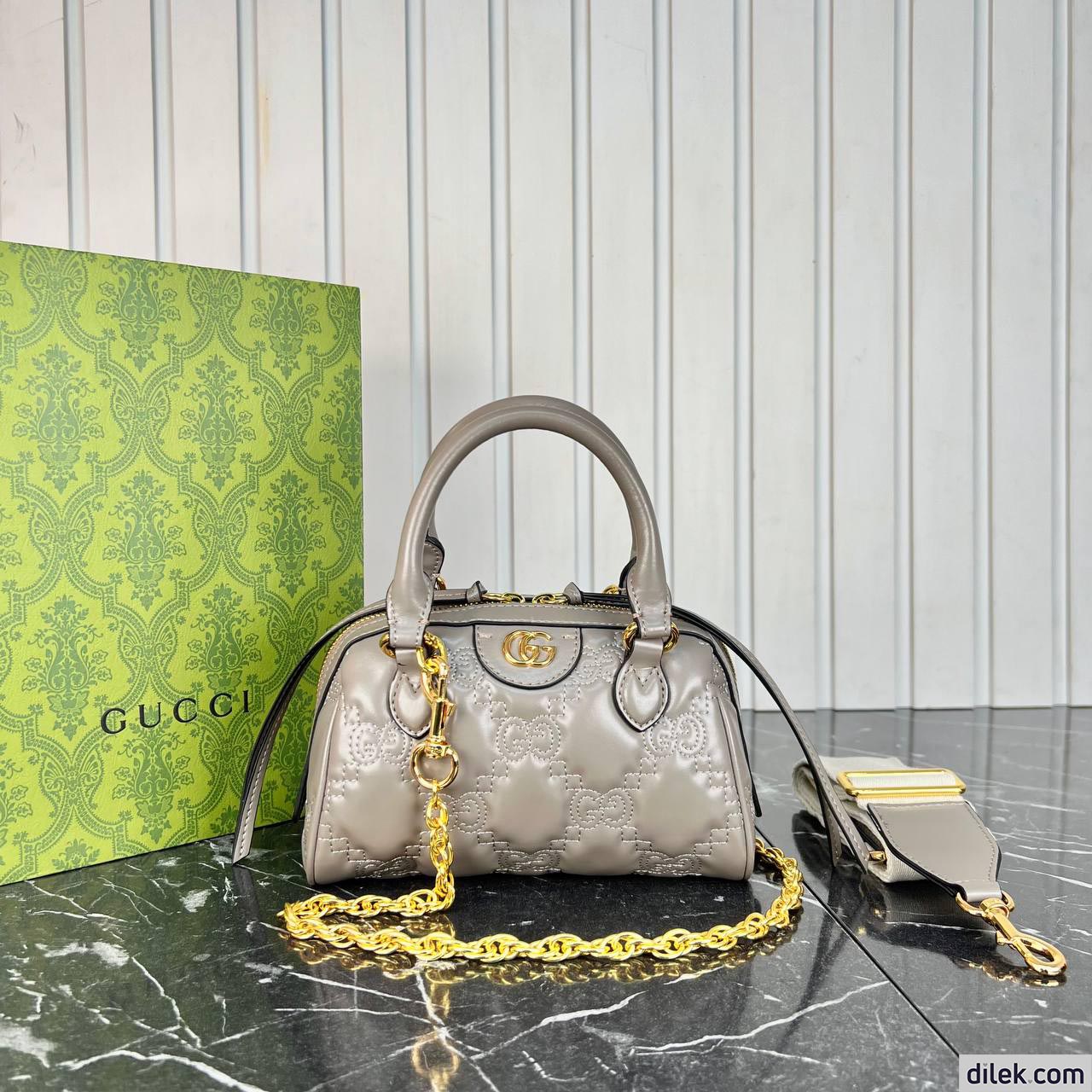 The GG pattern, a recognizable design of the House, continues to define handbags and small leather goods. Here, the Ophidia GG mini top handle bag is presented in pale green GG denim, enriched with tonal leather trims. A light gold-toned hardware completes the accessory with a metallic contrast.