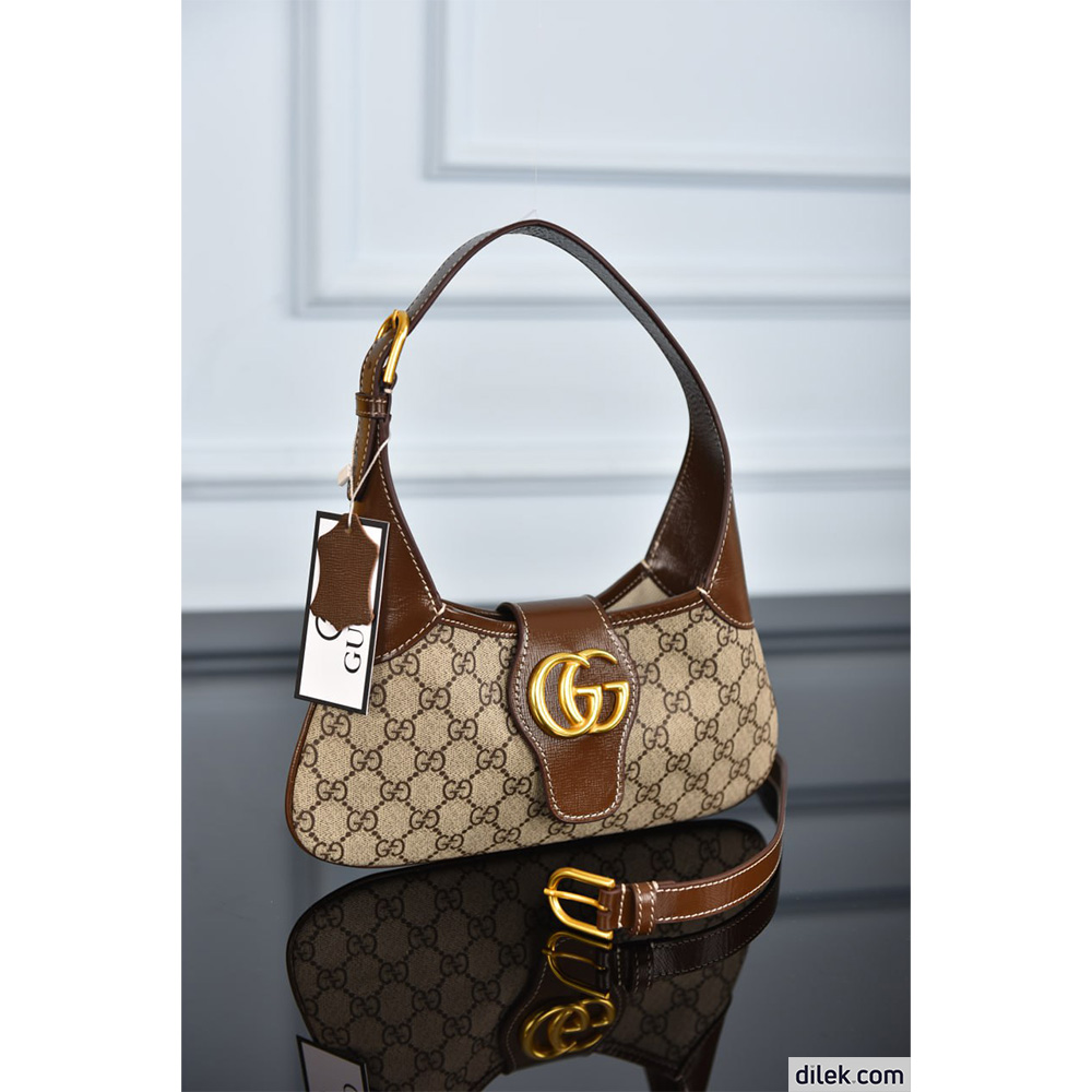 The world of Ophidia continues to evolve, incorporating new shapes and materials each season. Guccio Gucci's everlasting monogram continues to enrich new designs with a logo feel. This super mini shoulder bag is presented in the historical beige and ebony GG Supreme canvas, complete with the Double G hardware.