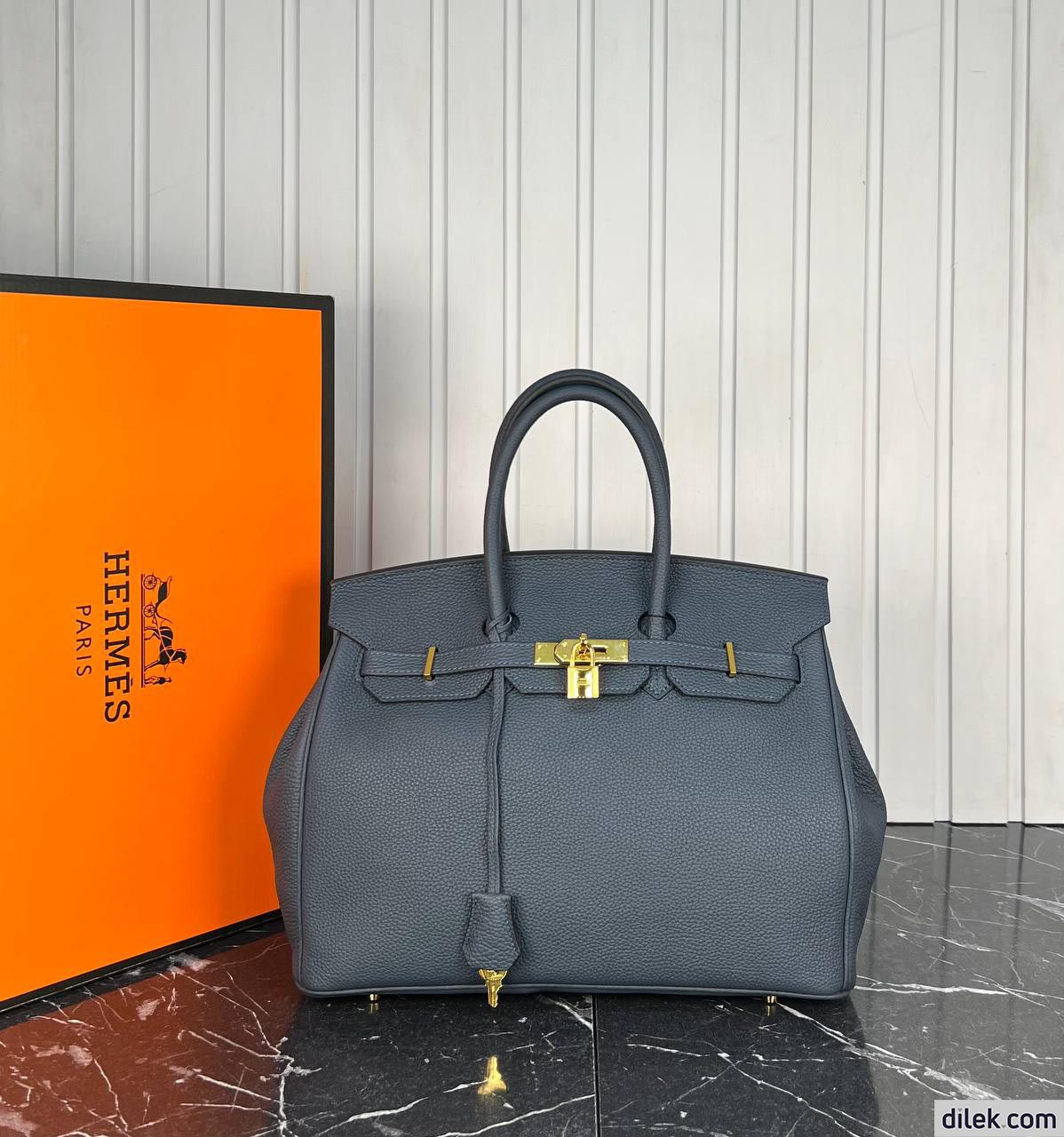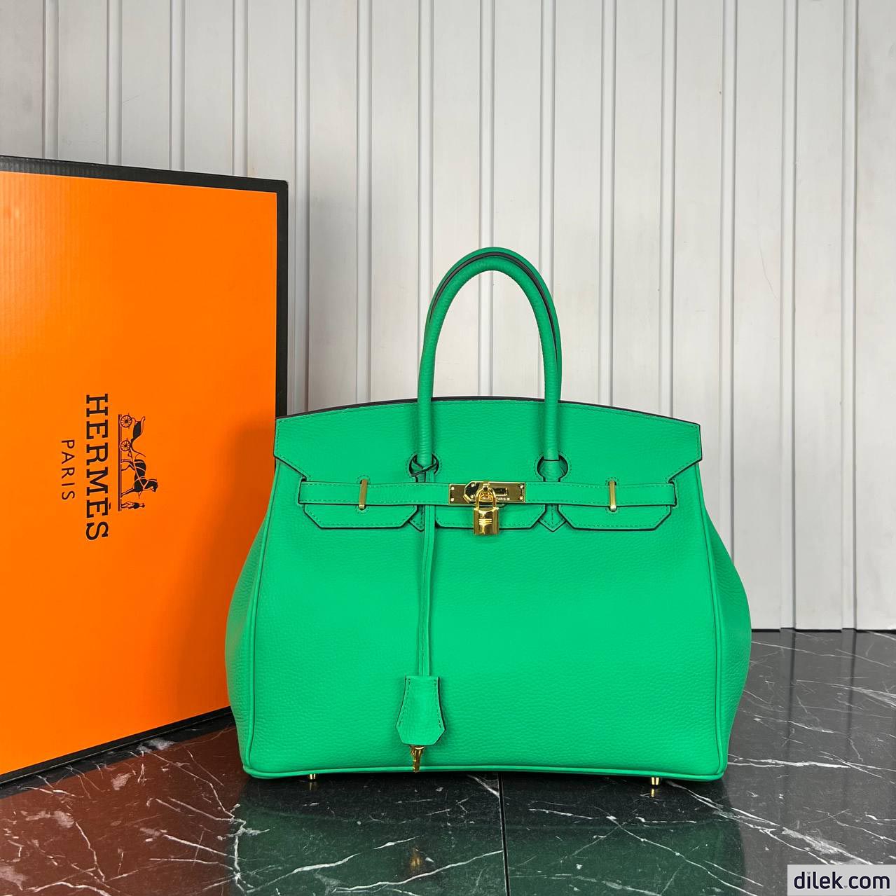Hermes Birkin 35 Retourne in Fjord Leather, Vert Veronese with Gold Hardware.