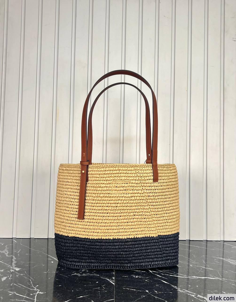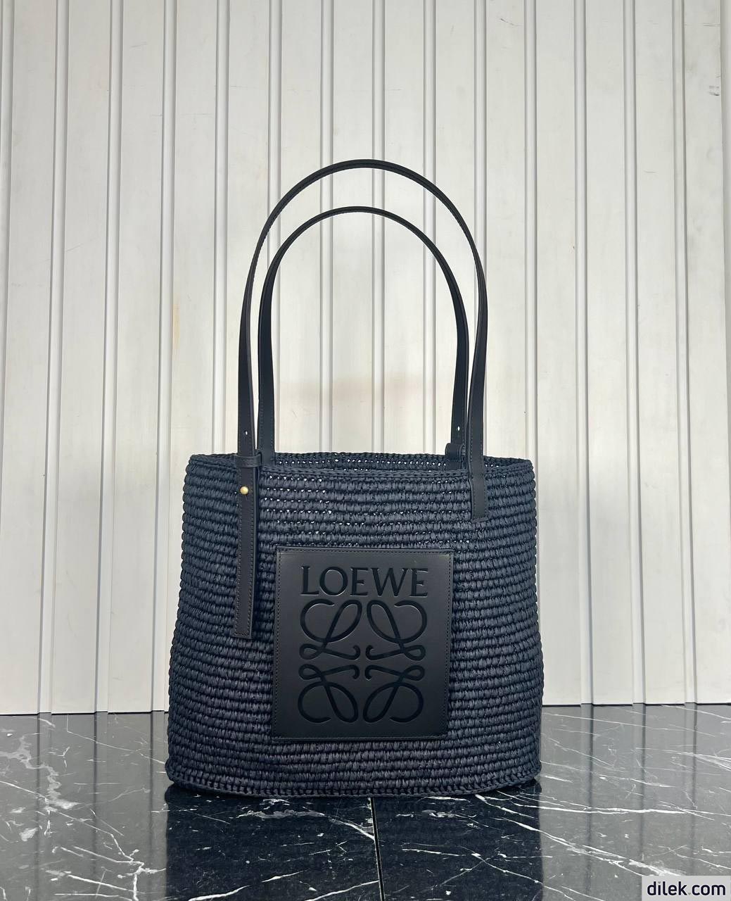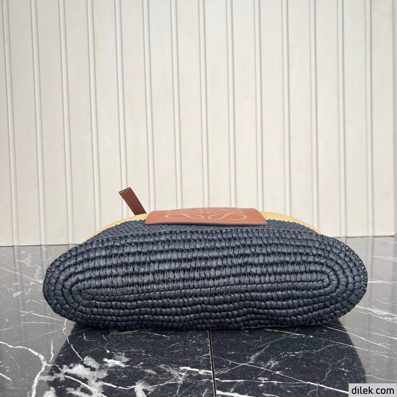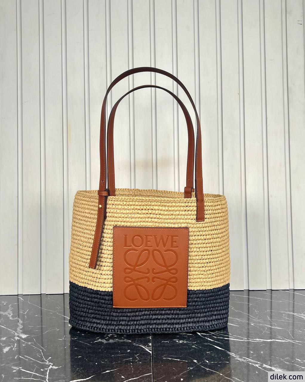 Loewe Small Square Basket Bag In Raffia and Calfskin