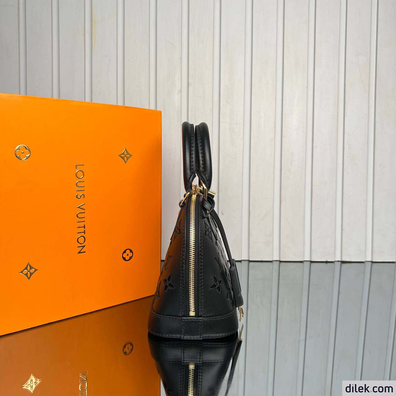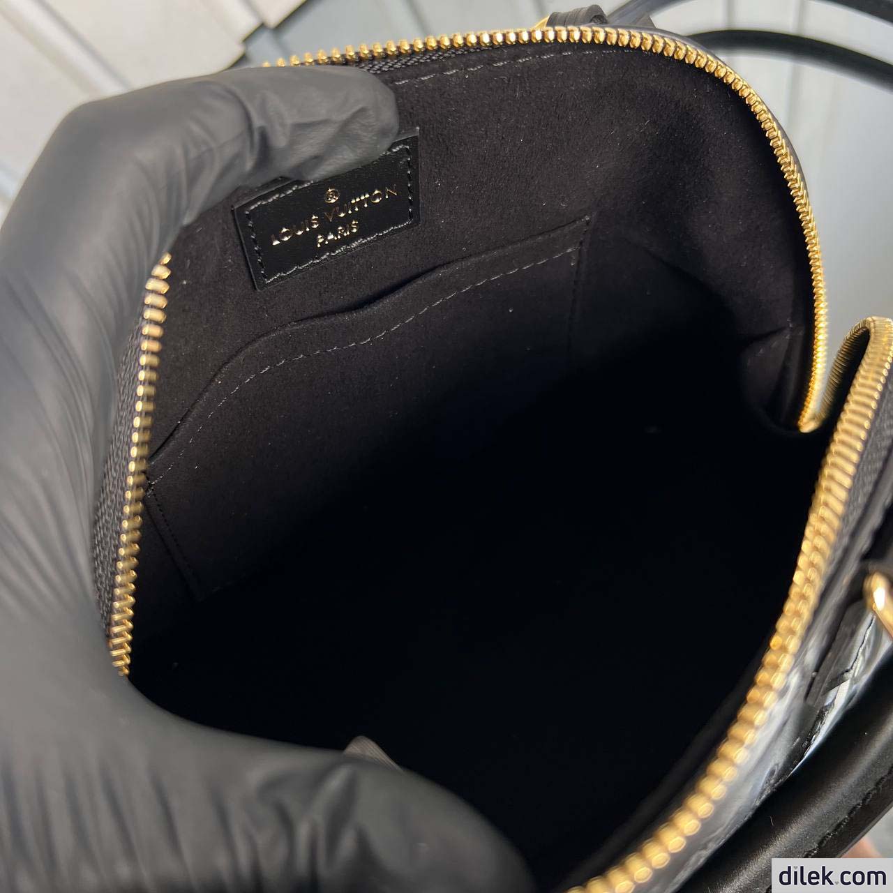 The Alma BB handbag traces its pedigree to the Art Deco original, introduced in 1934. Signature details impart a timeless elegance to this model made from graphic Damier Ebene canvas: note the golden padlock and keys, twin Toron handles and chic leather key bell. Equipped with a removable strap, this charming small bag is perfect for cross-body wear.