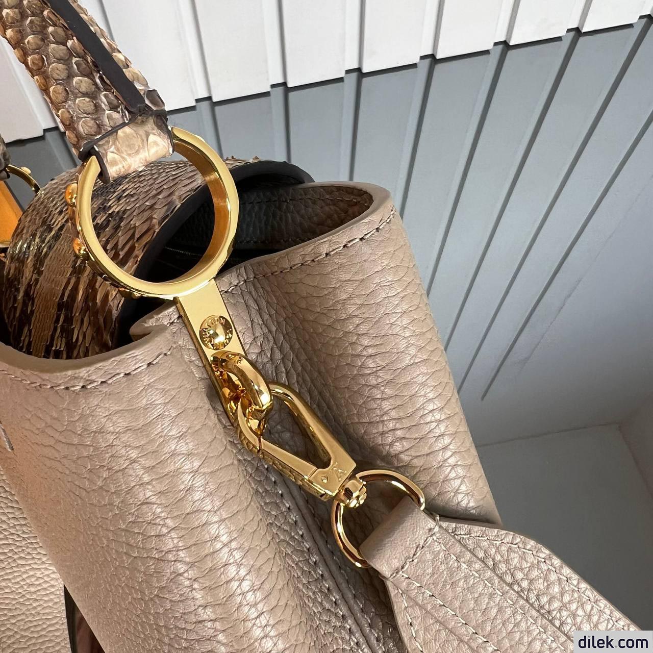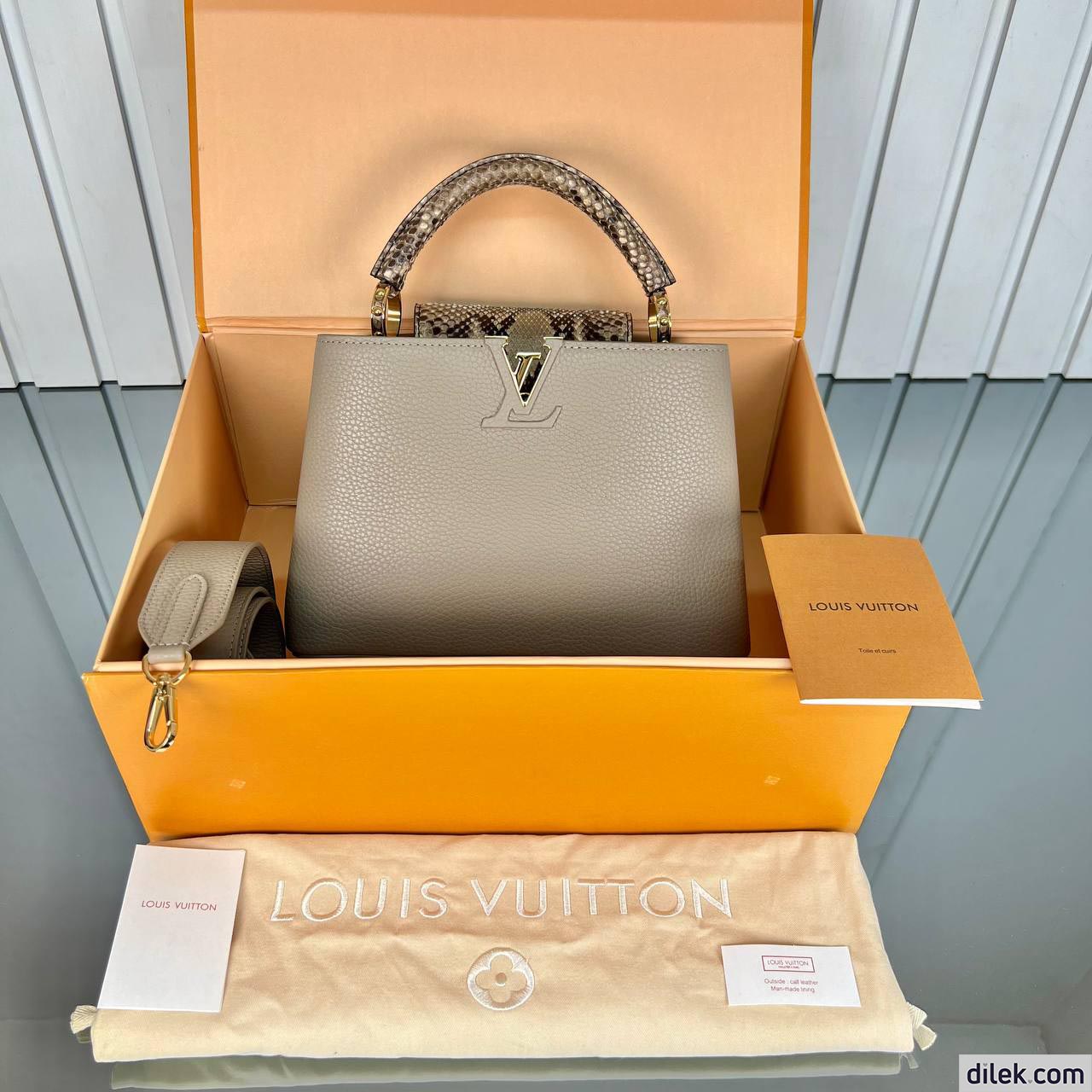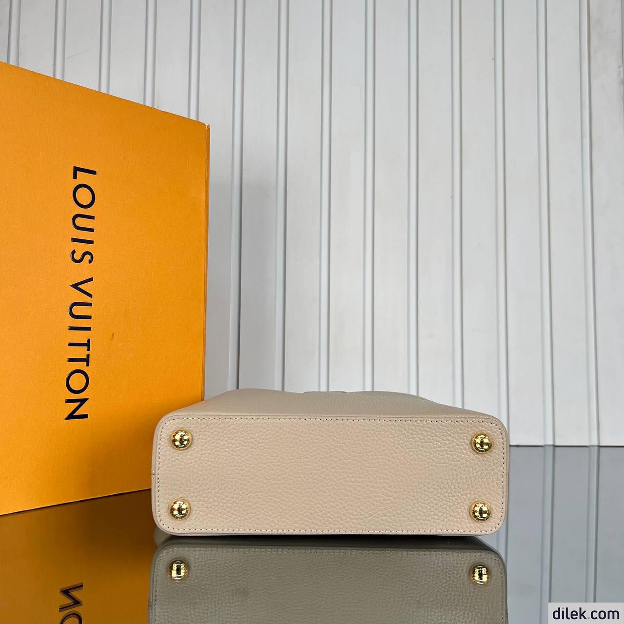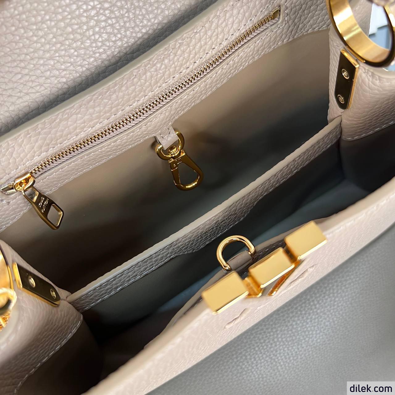 This season the House tells a new Capucines story. Embellished with a delicate frieze of metallic Monogram flowers, the emblematic bag is more feminine than ever. The MM model, in refined Noir with a crown of gold-toned blooms, is both elegant and practical.