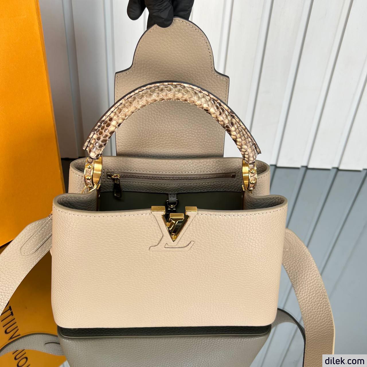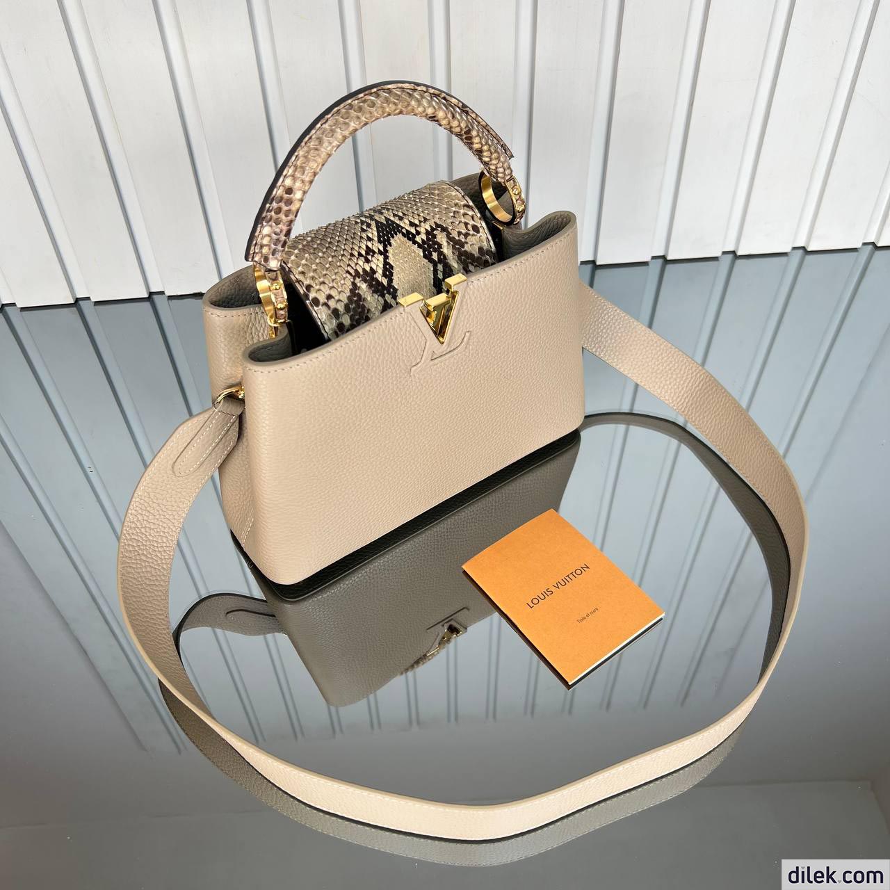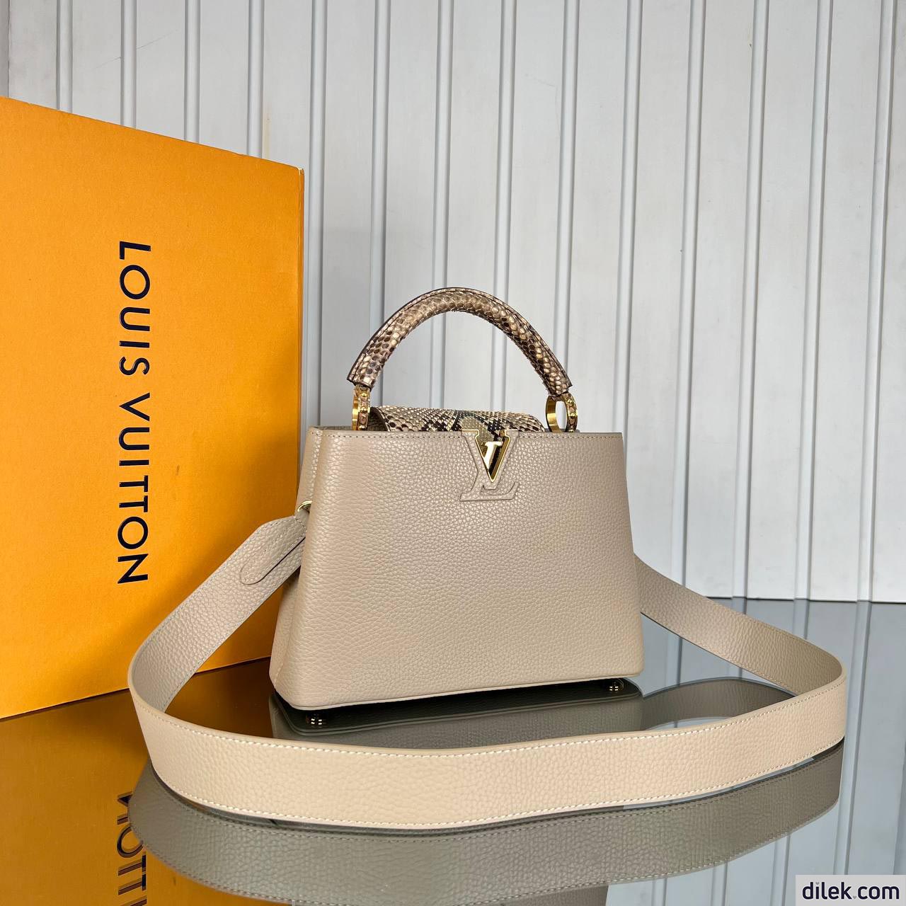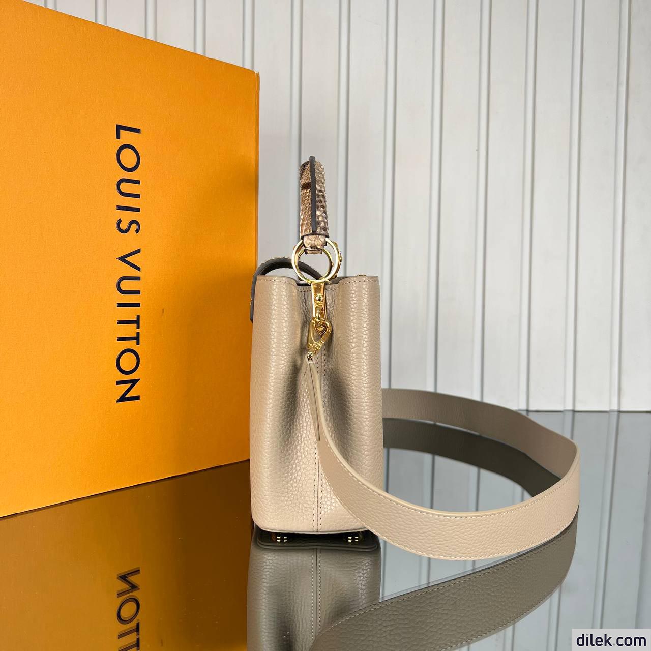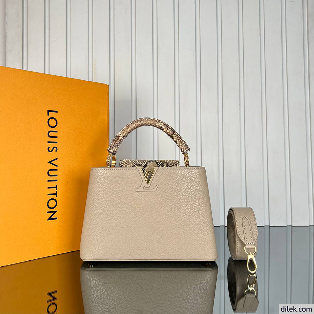 This season the House tells a new Capucines story. Embellished with a delicate frieze of metallic Monogram flowers, the emblematic bag is more feminine than ever. The MM model, in refined Noir with a crown of gold-toned blooms, is both elegant and practical.