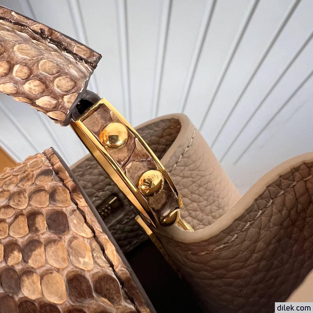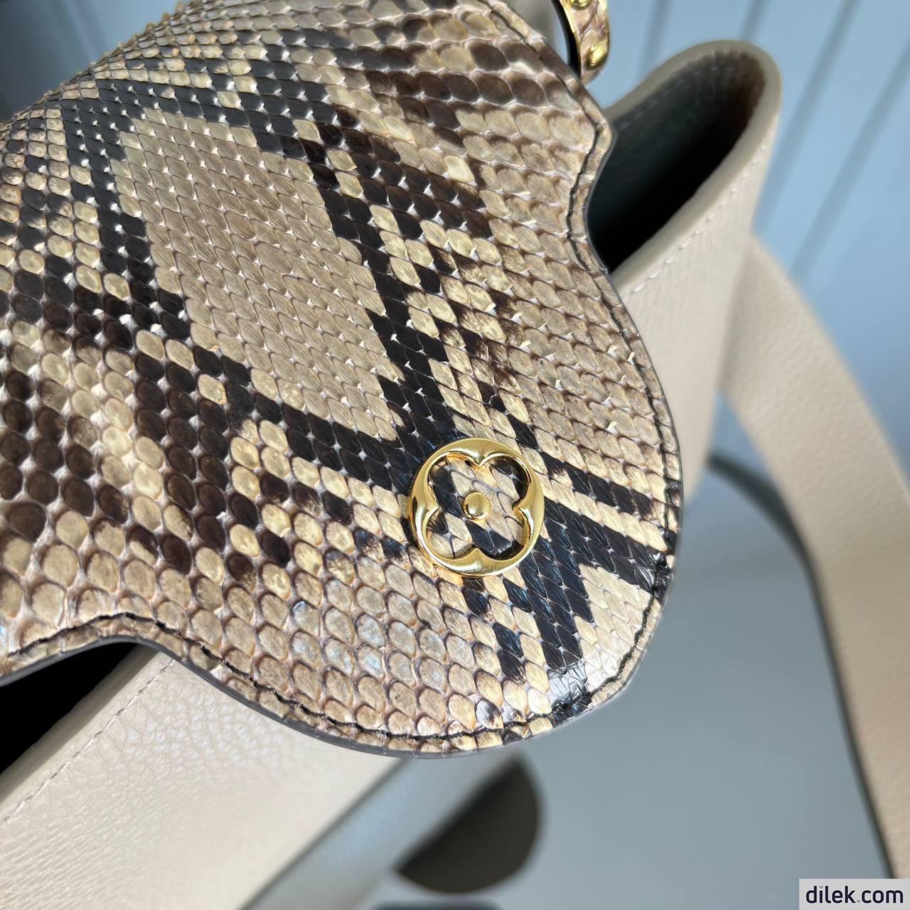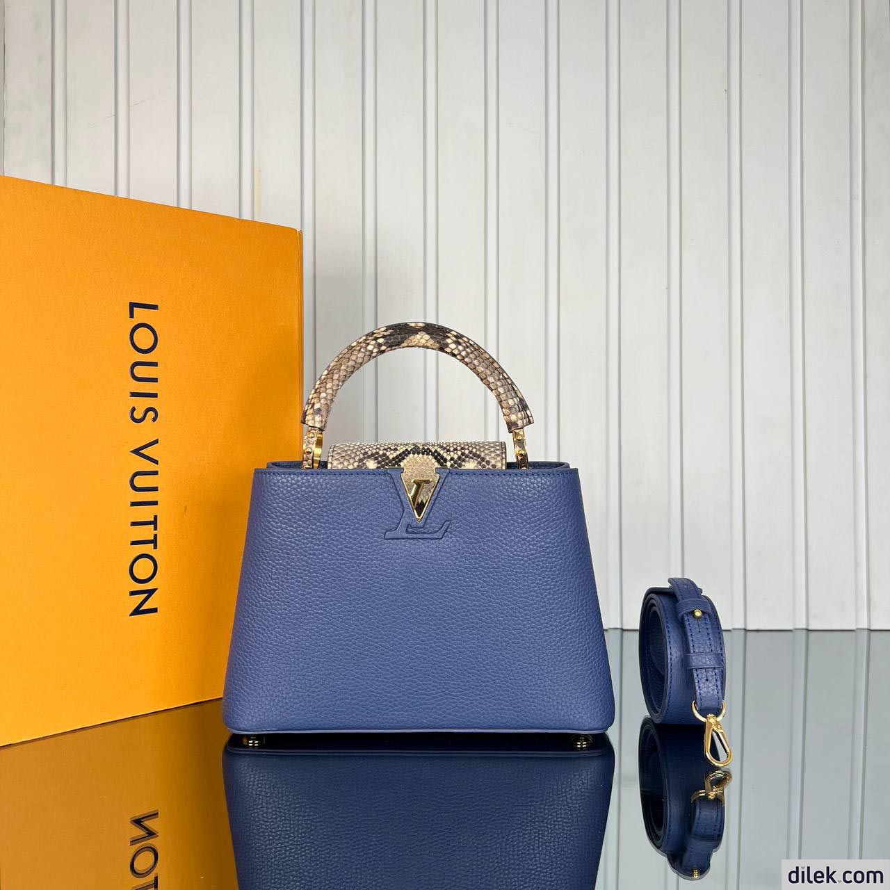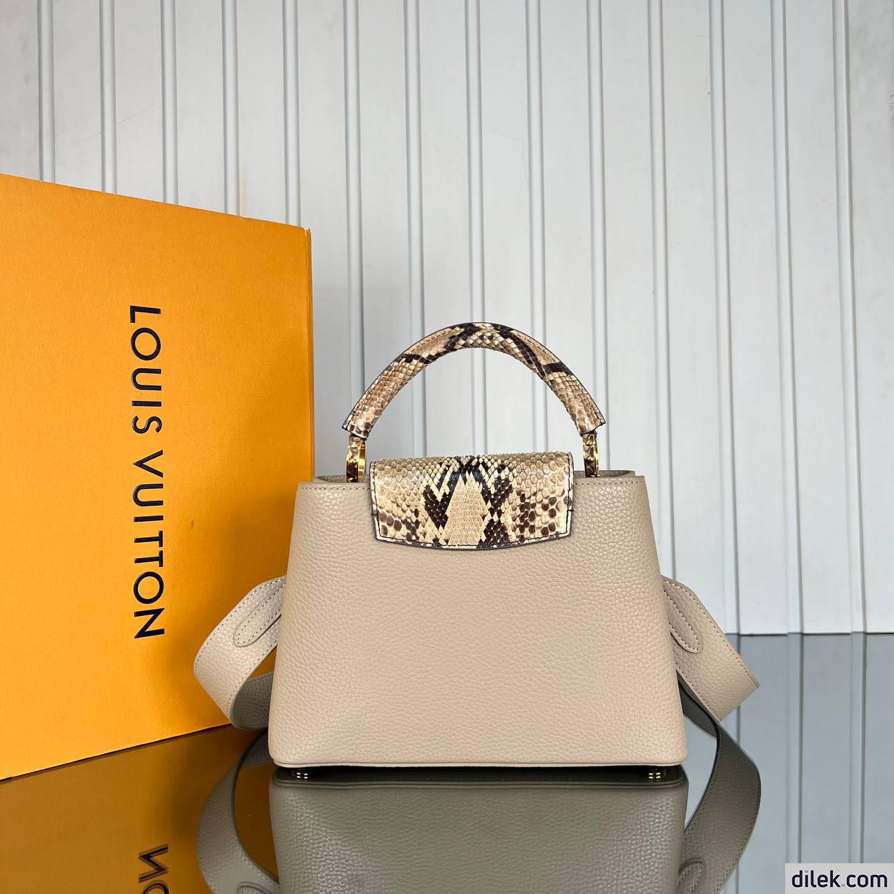 This season the House tells a new Capucines story. Embellished with a delicate frieze of metallic Monogram flowers, the emblematic bag is more feminine than ever. The MM model, in refined Noir with a crown of gold-toned blooms, is both elegant and practical.