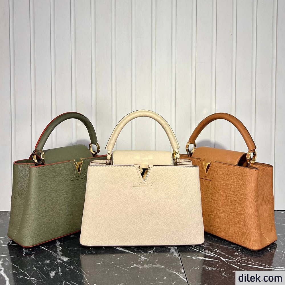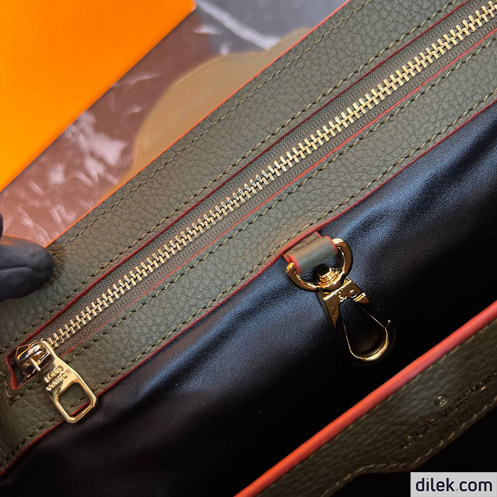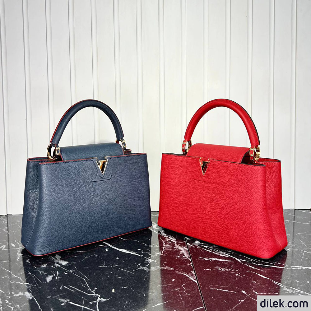 Named for the Rue des Capucines in Paris, where Louis Vuitton opened for business in 1854, the Capucines MM handbag was first introduced in 2013. Superbly crafted from full-grain Taurillon leather, it features a flap which can be worn two ways: outside to reveal a Monogram Flower, or inside to display the leather-wrapped LV Initials. Light enough to carry all day long, by hand, on the shoulder or worn cross-body with the detachable strap.