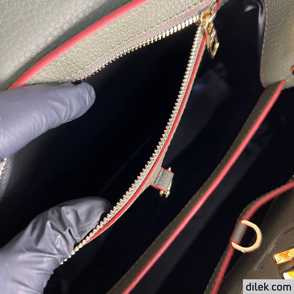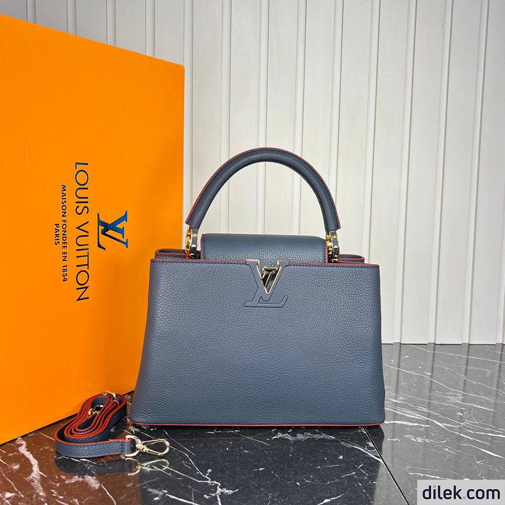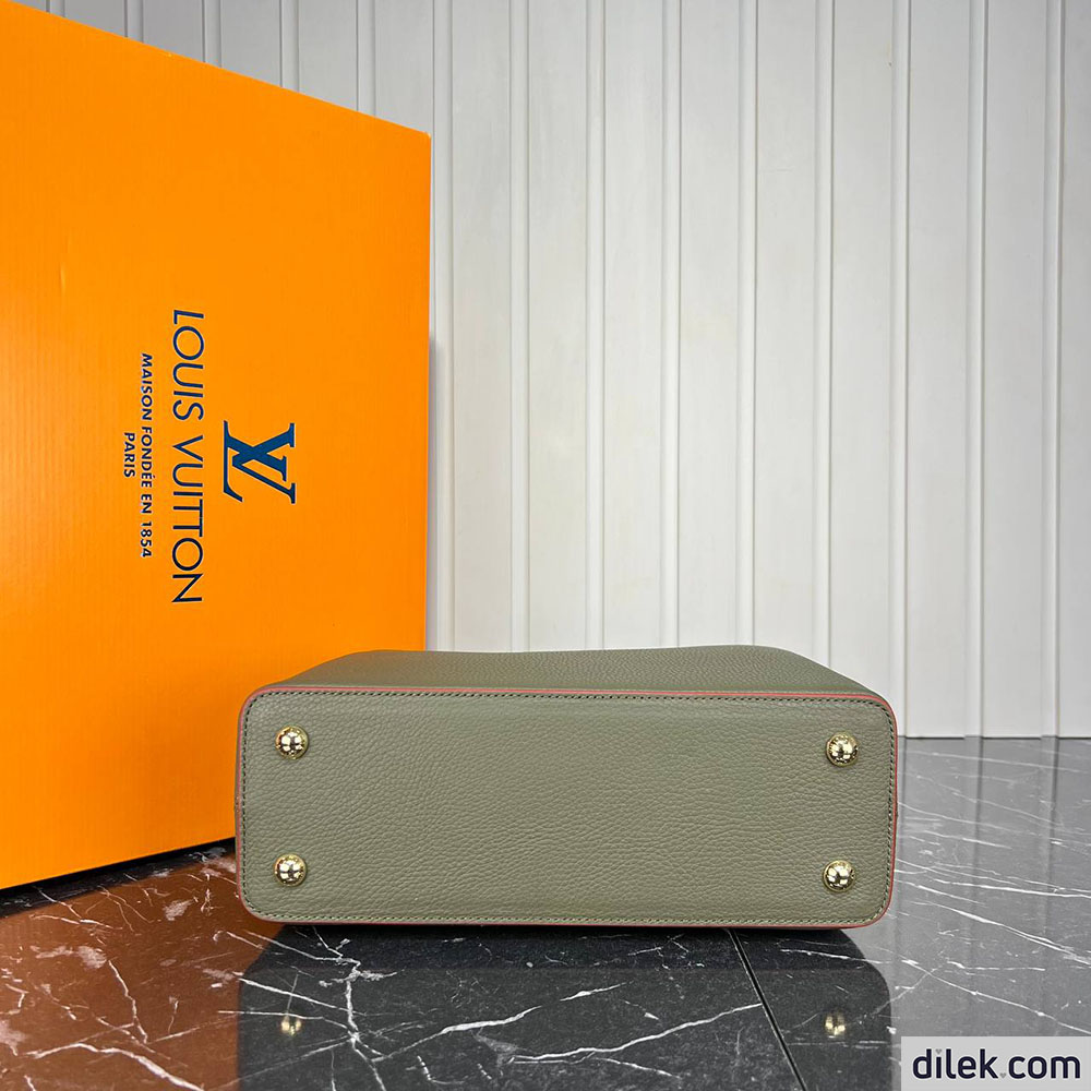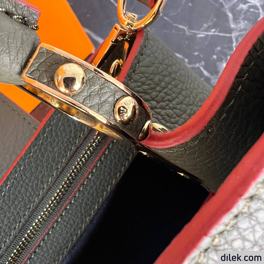 Named for the Rue des Capucines in Paris, where Louis Vuitton opened for business in 1854, the Capucines MM handbag was first introduced in 2013. Superbly crafted from full-grain Taurillon leather, it features a flap which can be worn two ways: outside to reveal a Monogram Flower, or inside to display the leather-wrapped LV Initials. Light enough to carry all day long, by hand, on the shoulder or worn cross-body with the detachable strap.