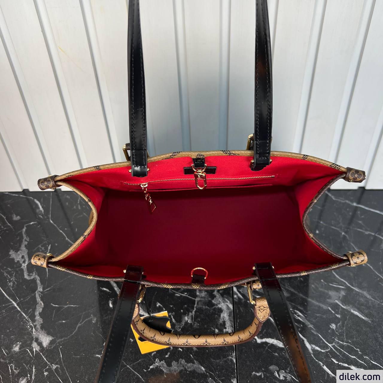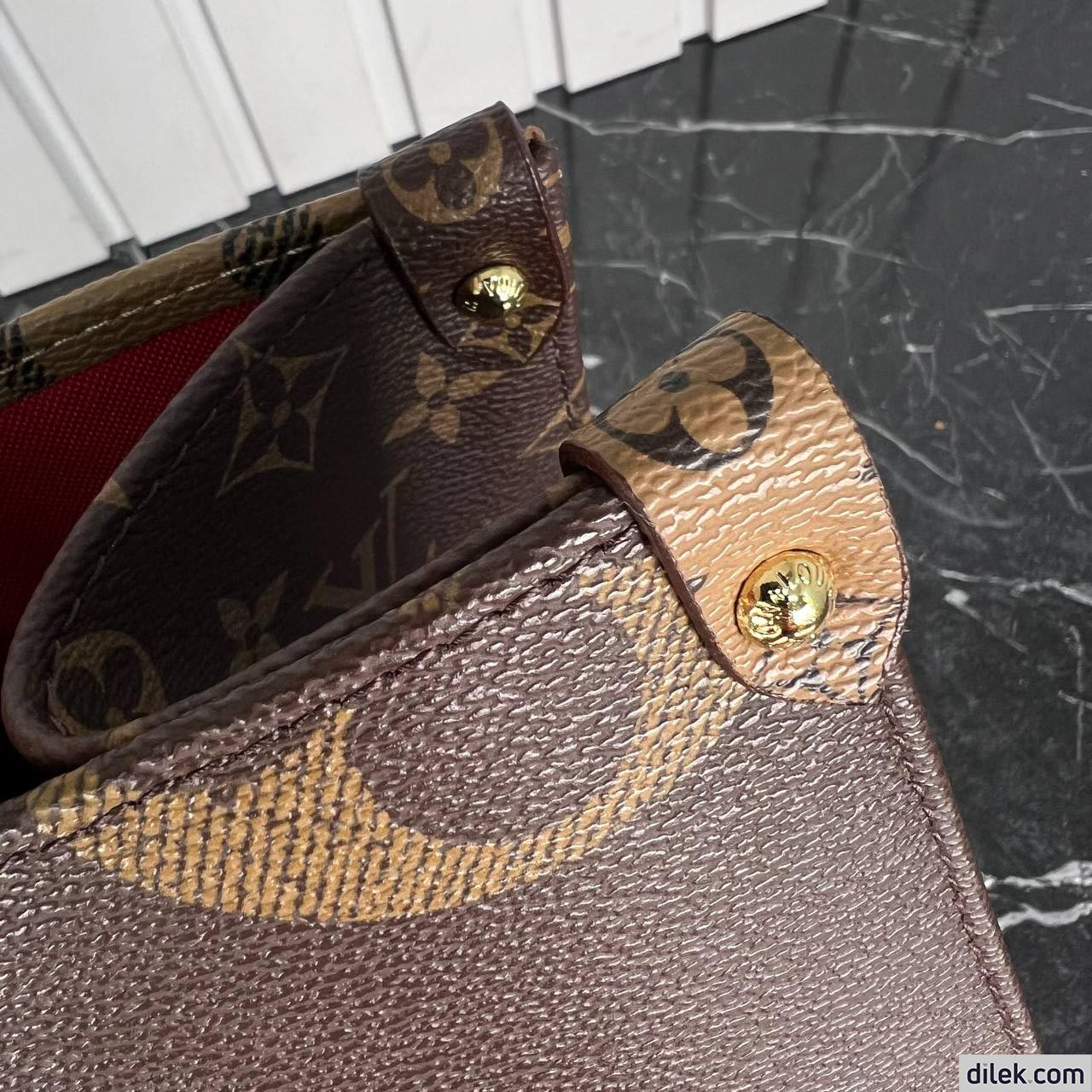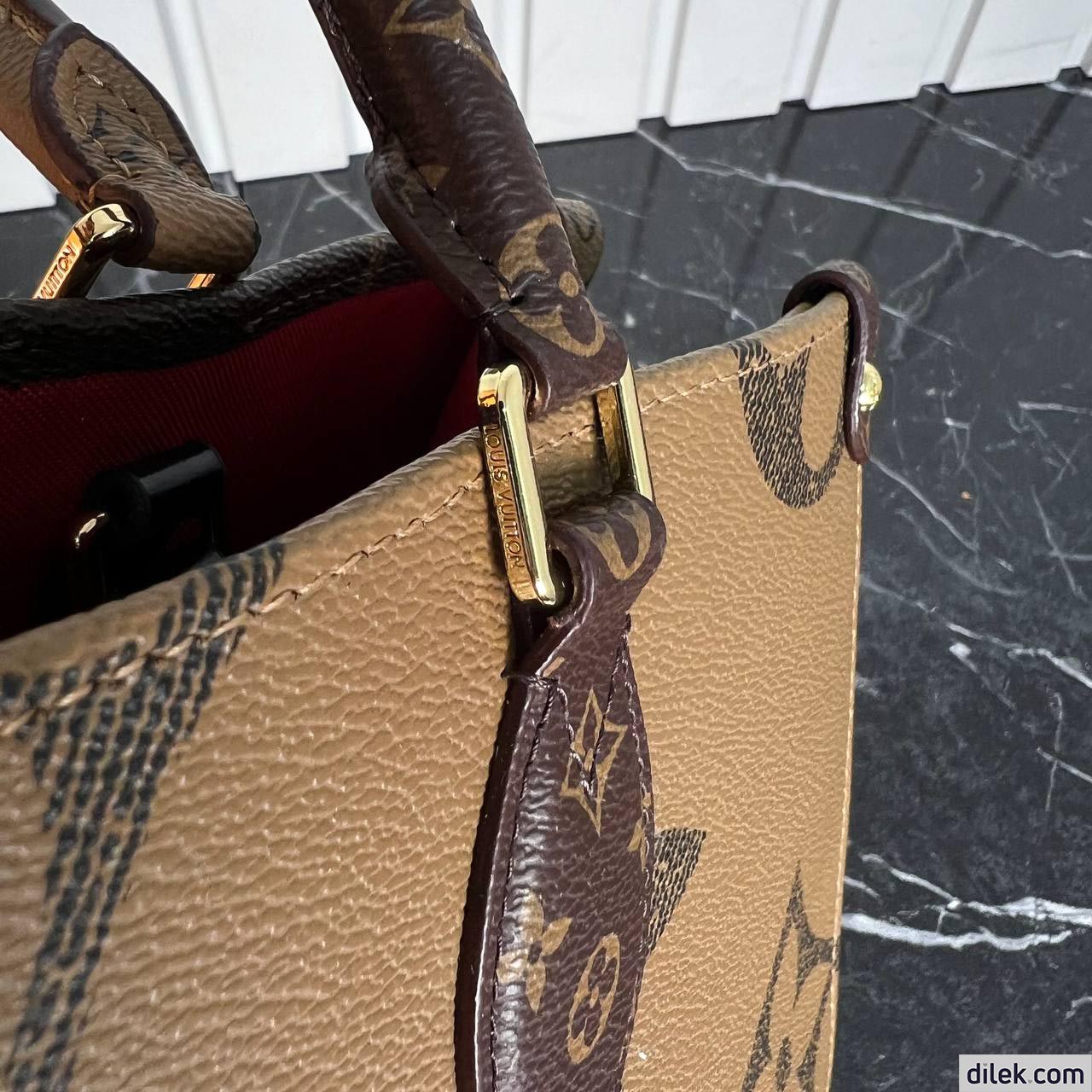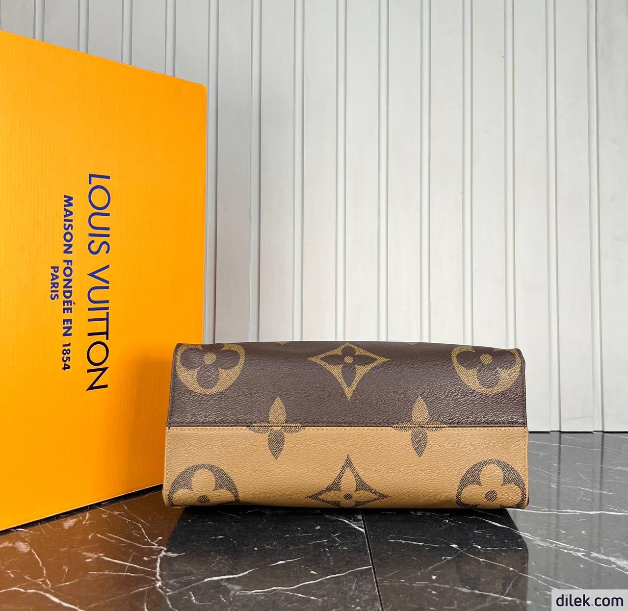 The name says it all: onthego mm takes care of business or shopping, with plenty of room for a busy woman’s essentials. with giant monogram canvas on one side and monogram reverse on the other, it is virtually two bags in one. twin toron top handles and two shoulder straps offer several different carry styles, for extra versatility.