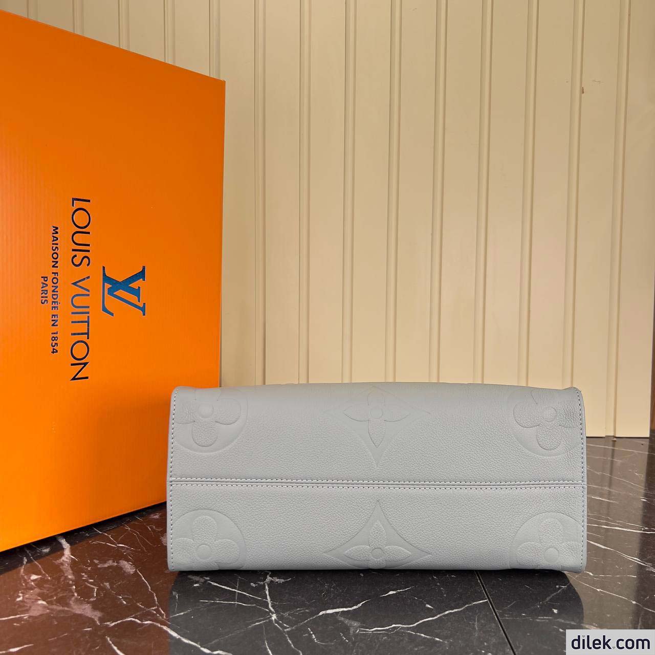 For Spring 2021, Louis Vuitton launches the Onthego MM tote bag in grained Monogram Empreinte, a soft leather that is embossed with a large and modern Monogram pattern. Thanks to the square shape, it boasts a generous capacity and can easily fit a laptop. Its articulated top handles and shoulder straps give carrying options.