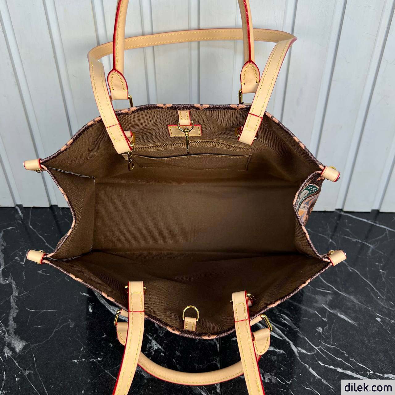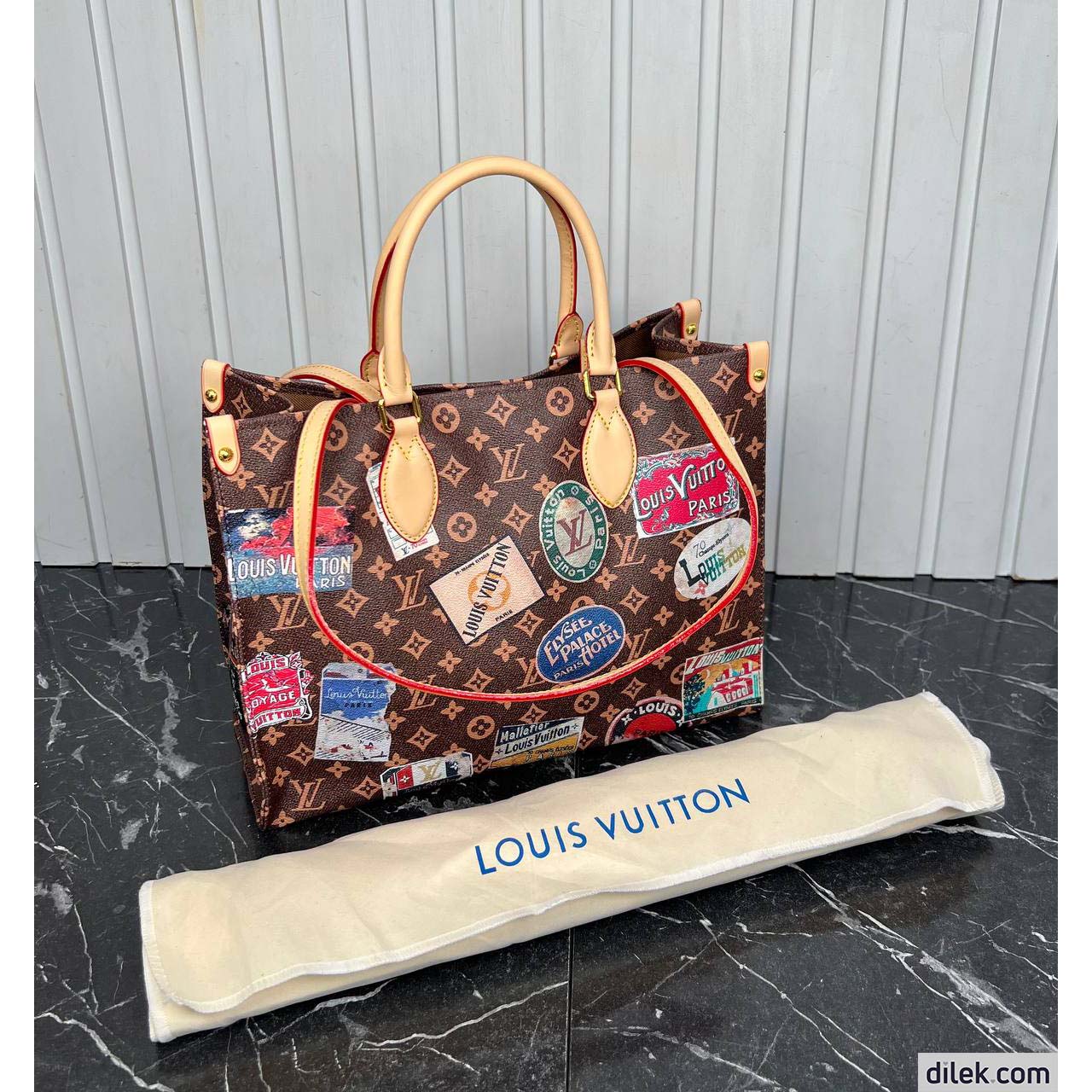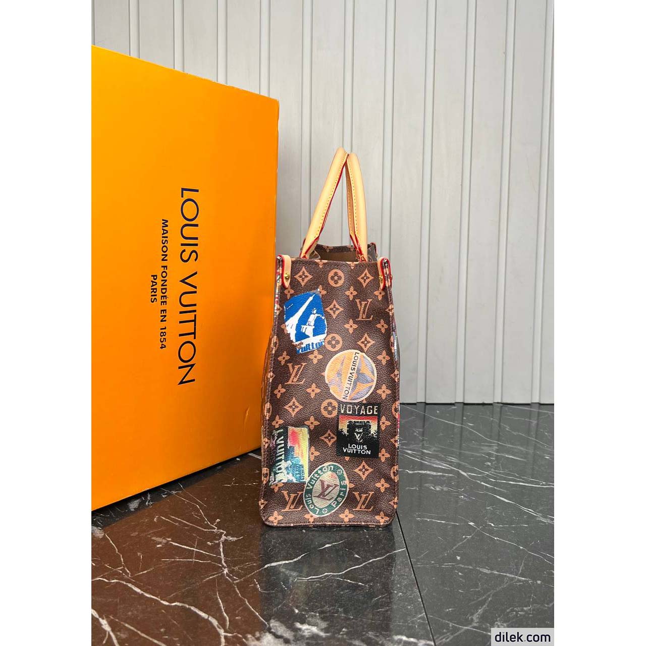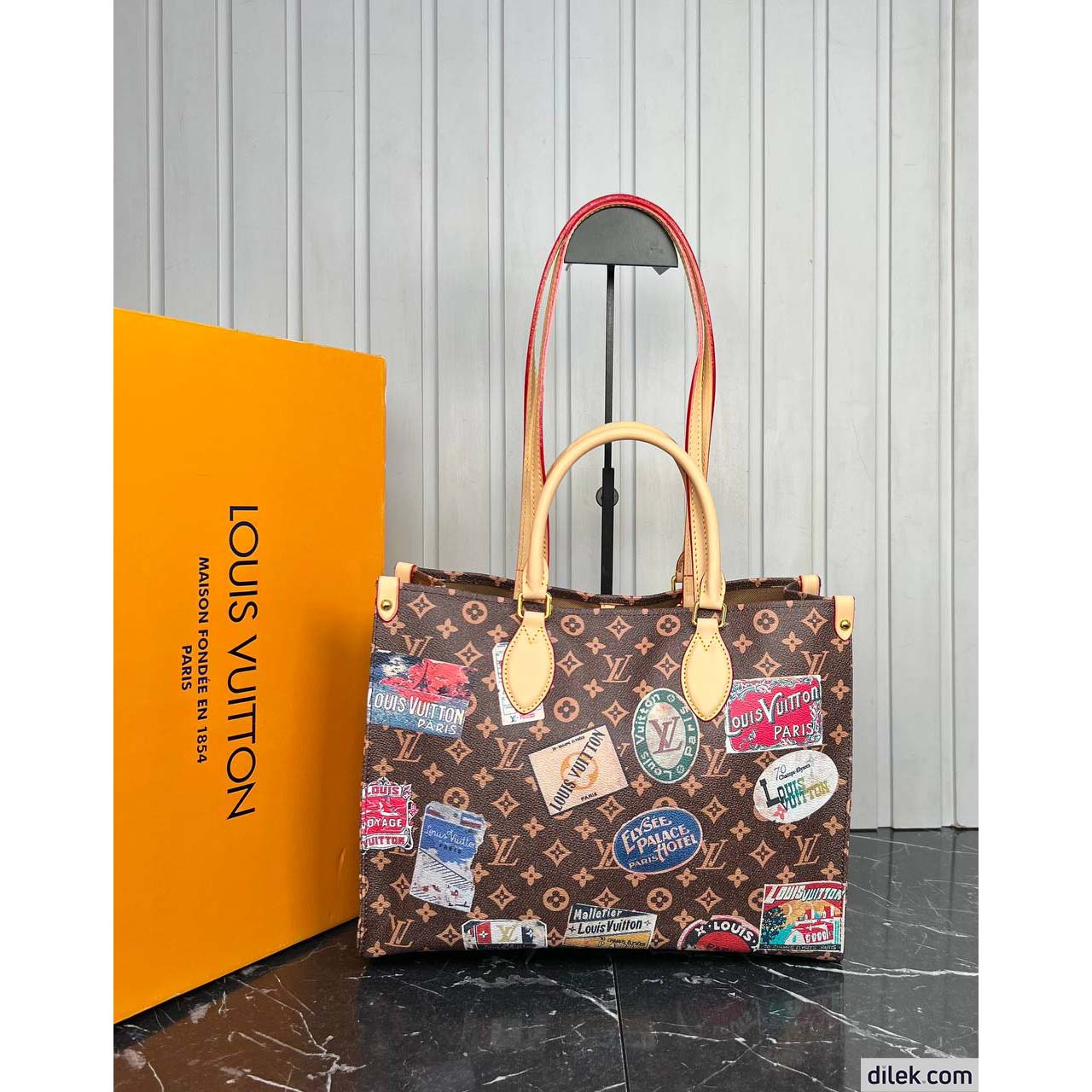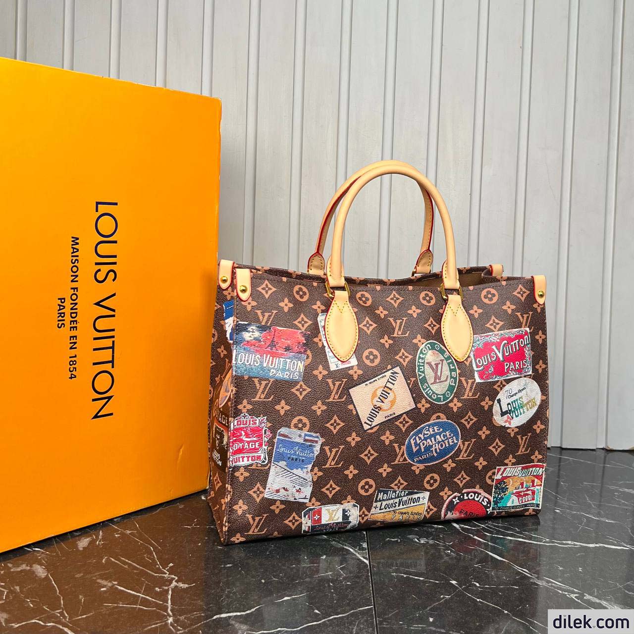 Inspired by archival Monogram canvas, embellished with a patchwork of vintage hotel labels and trimmed with the Maison’s heritage natural cowhide-leather, the season’s new OnTheGo Voyage tote is an ideal addition to the traveling woman’s wardrobe. Fitted with signature Toron top handles and a removable leather strap, this timeless carryall offers maximum versatility.