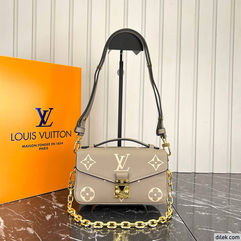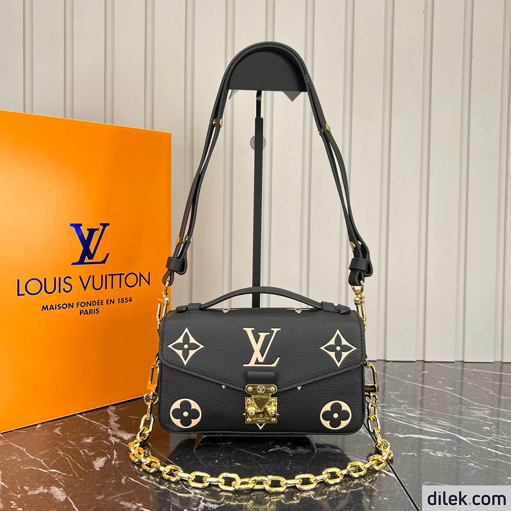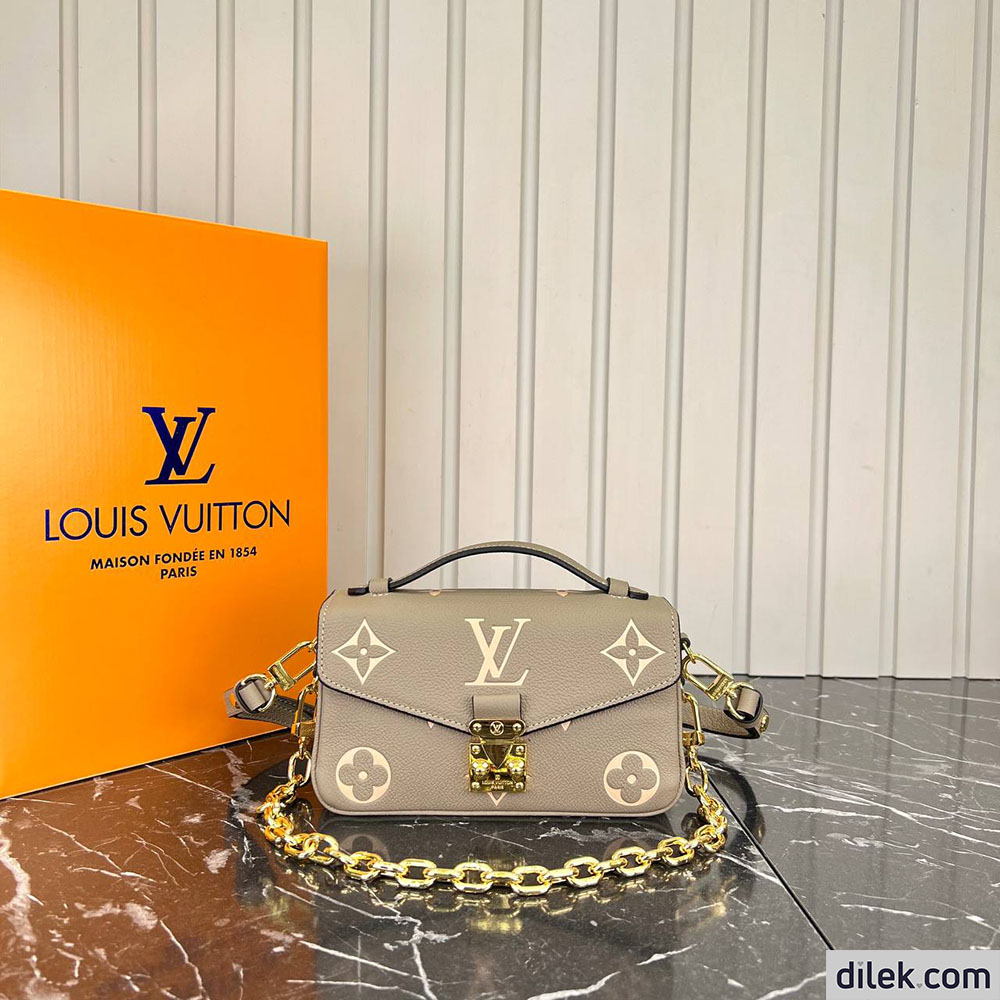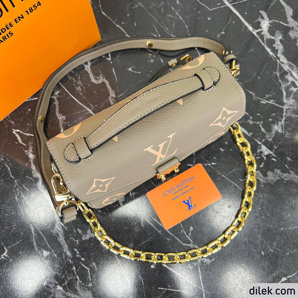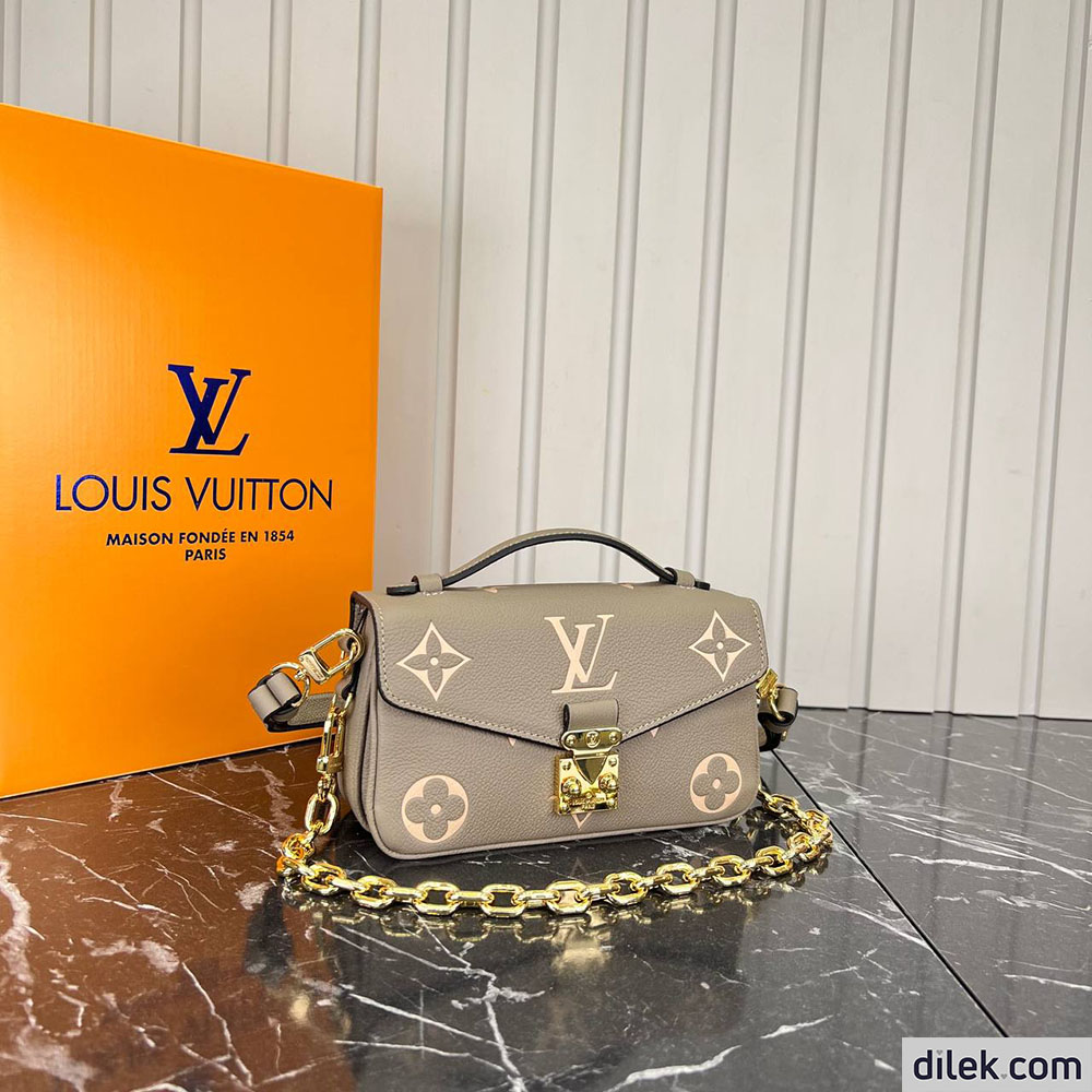 Crafted from Monogram Empreinte leather, with its embossed Monogram pattern, the Pochette Metis East West handbag blends classic Louis Vuitton design codes with contemporary details. The S-lock and top handle evoke the House’s historic trunks while the compact proportions and removable chain, perfect for short shoulder carry, bring an up-to-the minute feel.