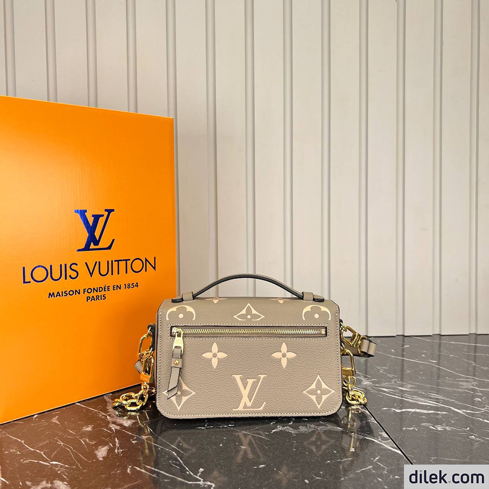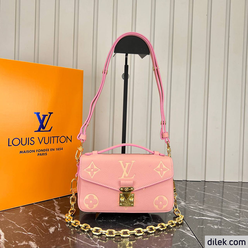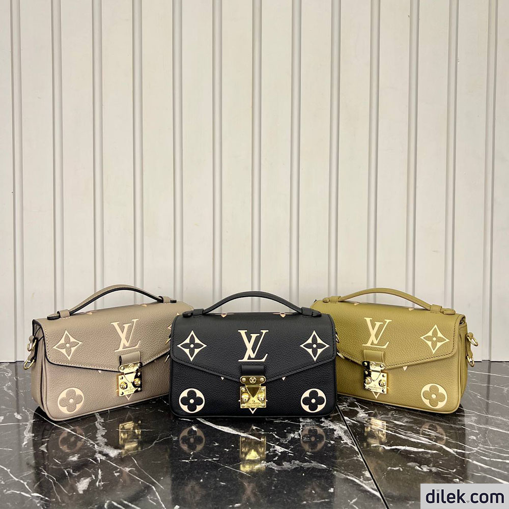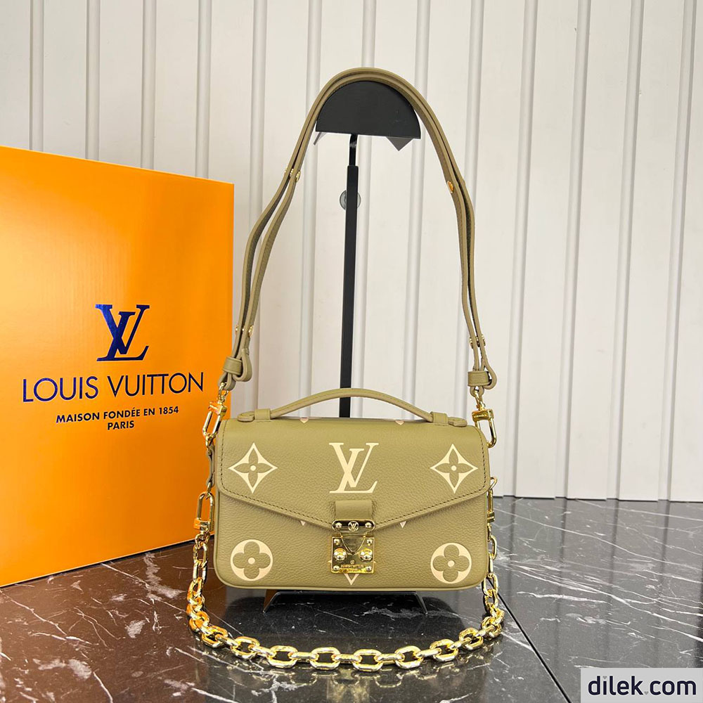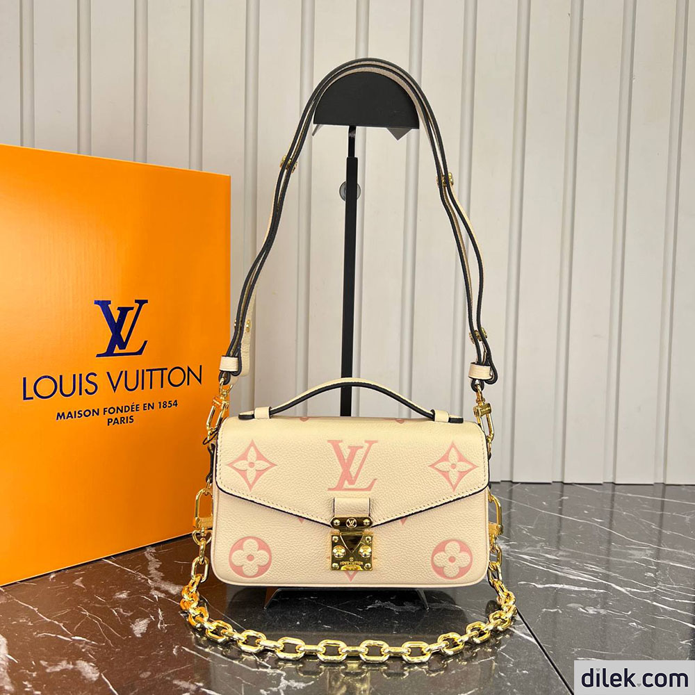 Crafted from Monogram Empreinte leather, with its embossed Monogram pattern, the Pochette Metis East West handbag blends classic Louis Vuitton design codes with contemporary details. The S-lock and top handle evoke the House’s historic trunks while the compact proportions and removable chain, perfect for short shoulder carry, bring an up-to-the minute feel.