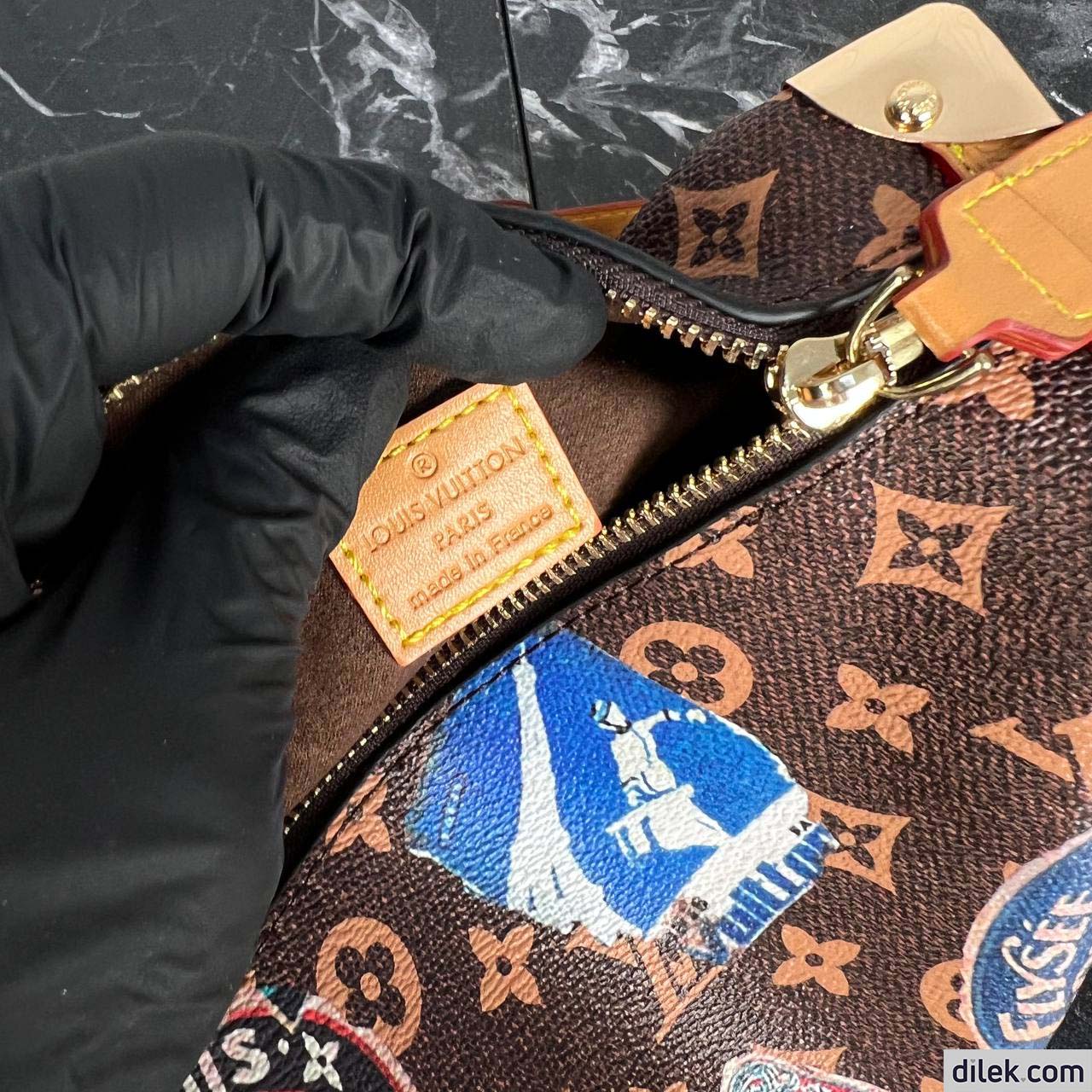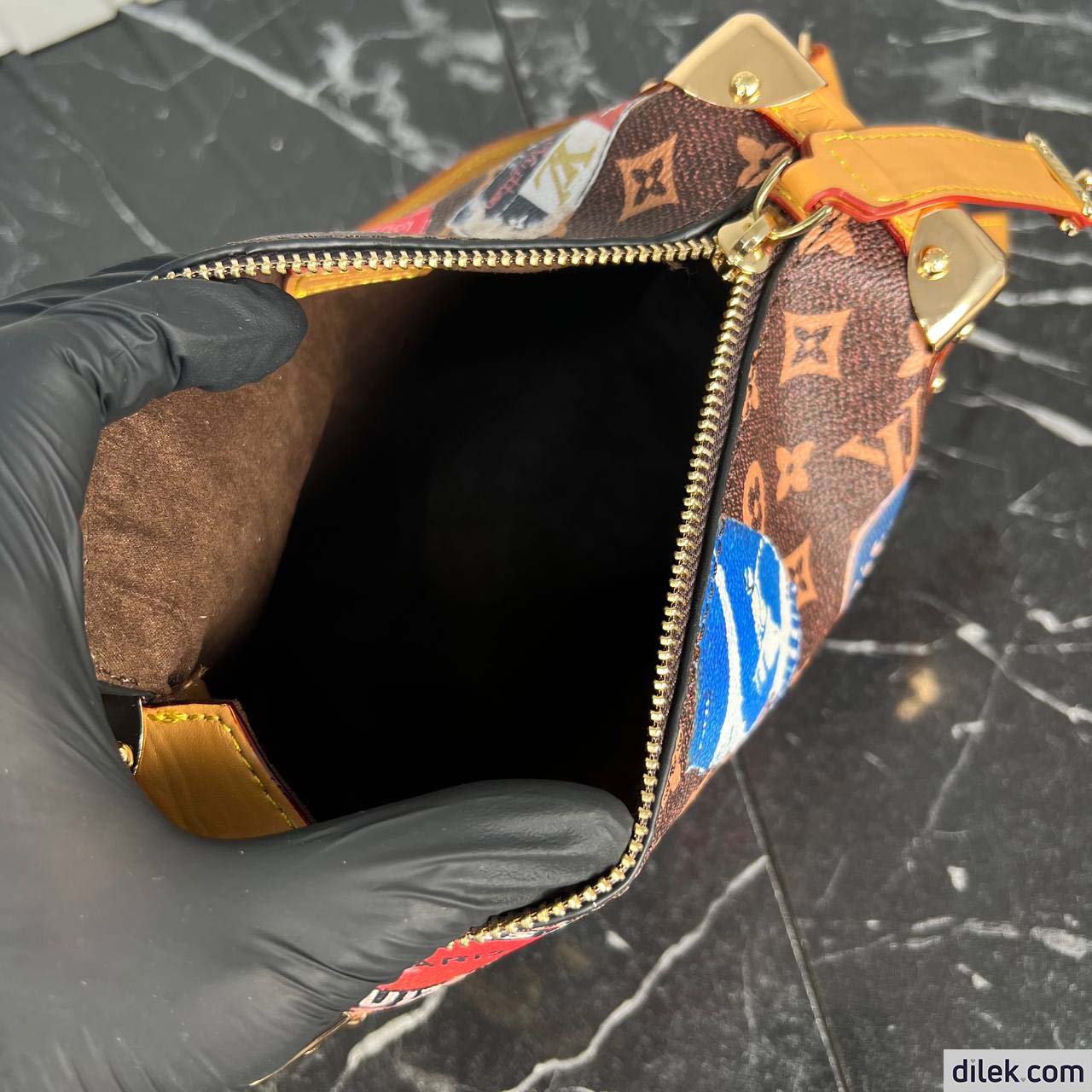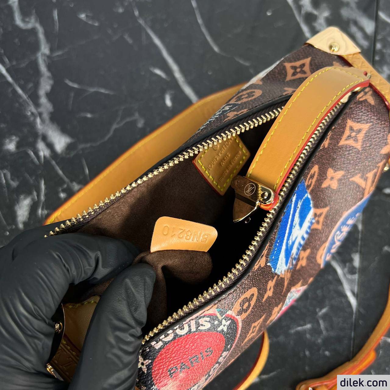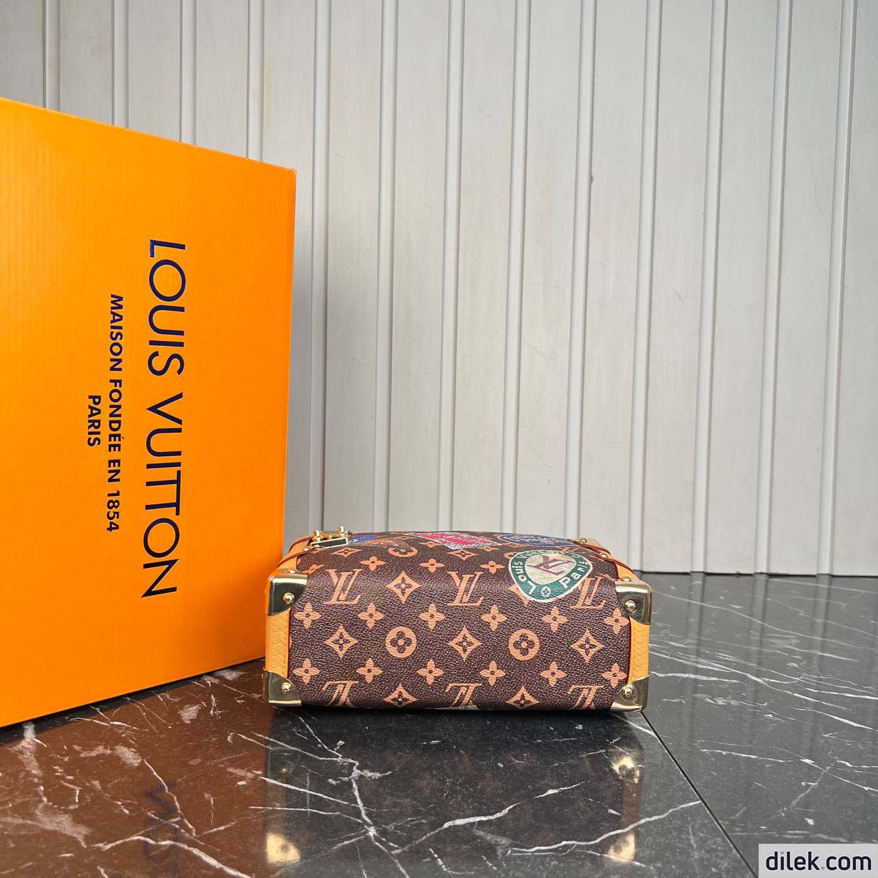 From the Spring-Summer 2024 show comes this Side Trunk MM handbag. It is inspired by the Maison’s archive-trunk Monogram canvas, made of a blend of cotton and linen glazed with resin for a superbly soft hand. Decorated with hotel labels that pay tribute to Gaston-Louis Vuitton’s fabulous collection, the bag is trimmed in heritage natural cowhide-leather. Both handle and strap are removable.