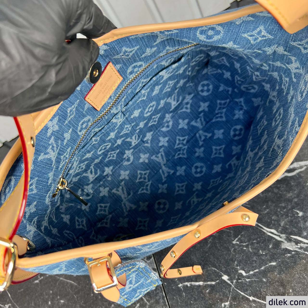 The roomy Carryall MM bag in Monogram Denim canvas with natural cowhide-leather trim combines style with functionality. The body-friendly design and spacious interior make it a versatile everyday bag. There’s an inside zipped pocket and a leather drawstring, in addition to the magnetic closure. The adjustable shoulder strap enables a comfortable carry.