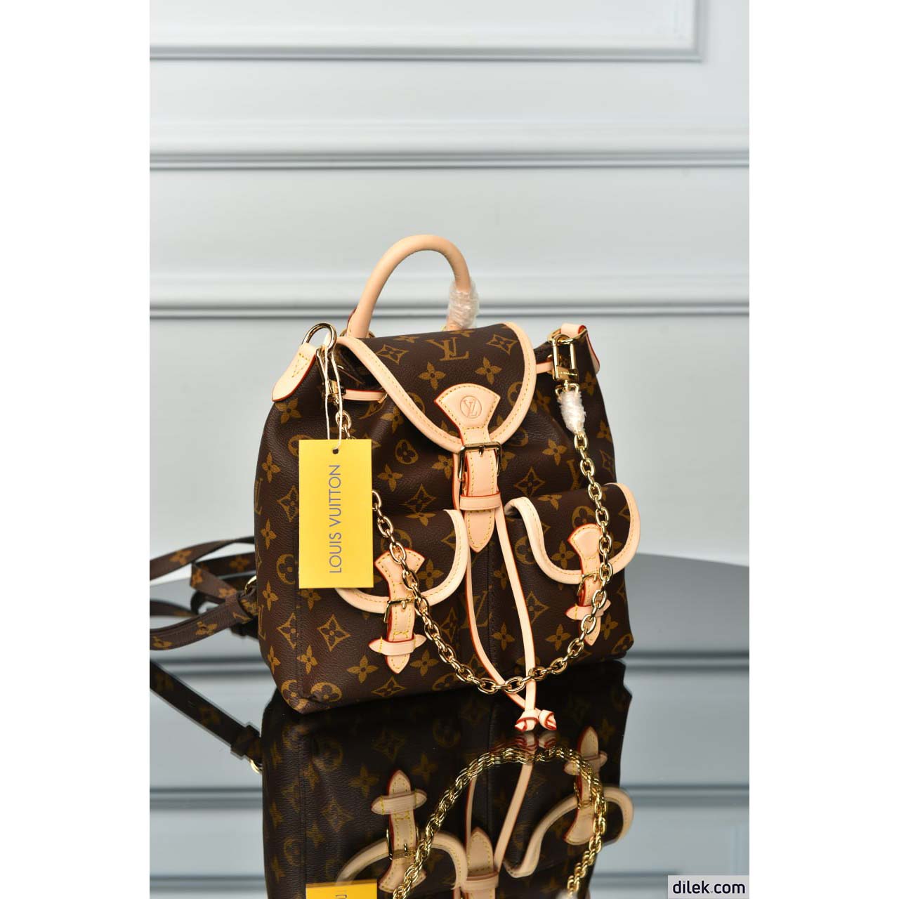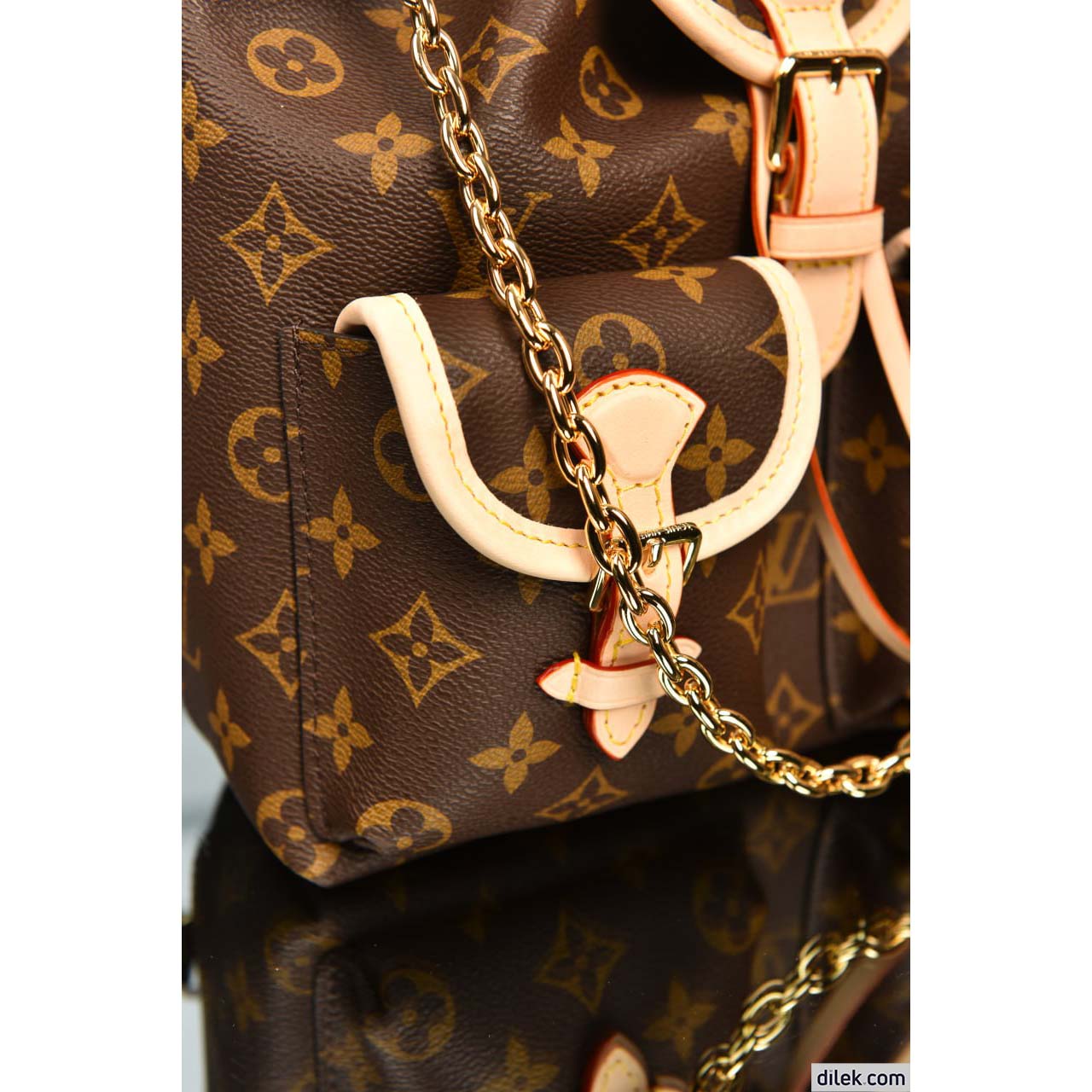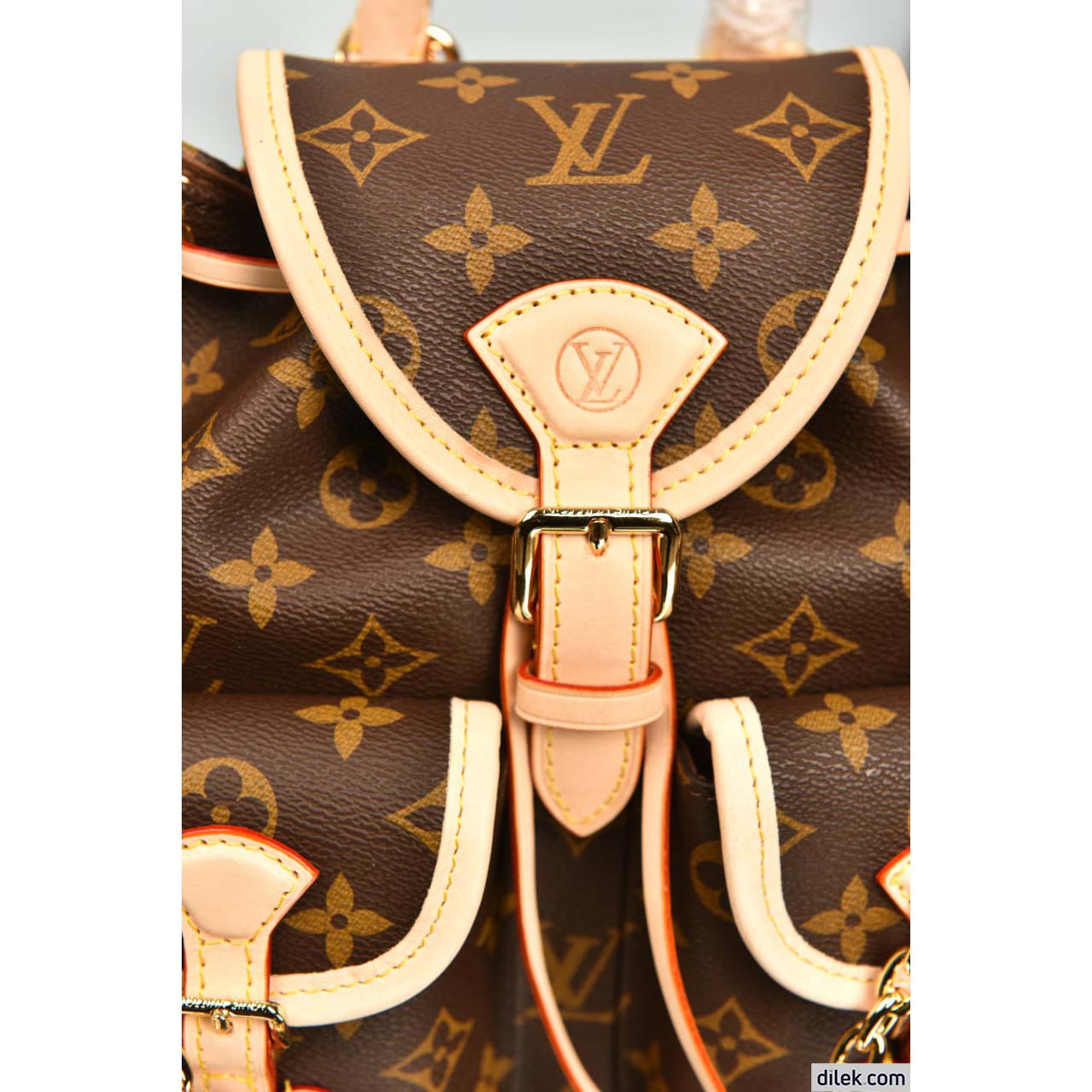 Made from Monogram canvas with leather trim, the super-cute, super-functional Excursion PM backpack has a design clearly influenced by the world of hiking. The main compartment closes with an adjustable sliding buckle and there are two pockets with buckles on the front. A gold-color chain, in addition to the top handle, enable different carries.