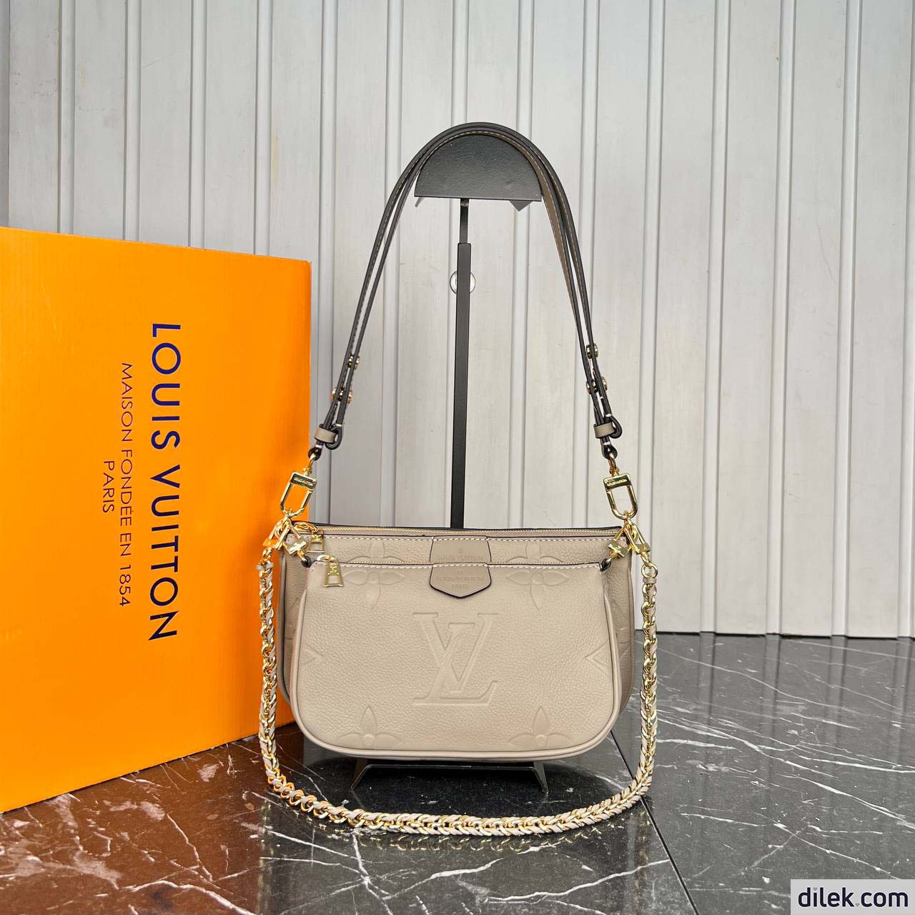 The Multi Pochette Accessoires cross-body bag in Monogram Empreinte leather allies form with function. Every part of this two-in-one bag is removable: the two pouches, the gold chain and the leather strap. The oversized Monogram embossed on the front contrasts perfectly with the classic Monogram pattern on the side gussets.