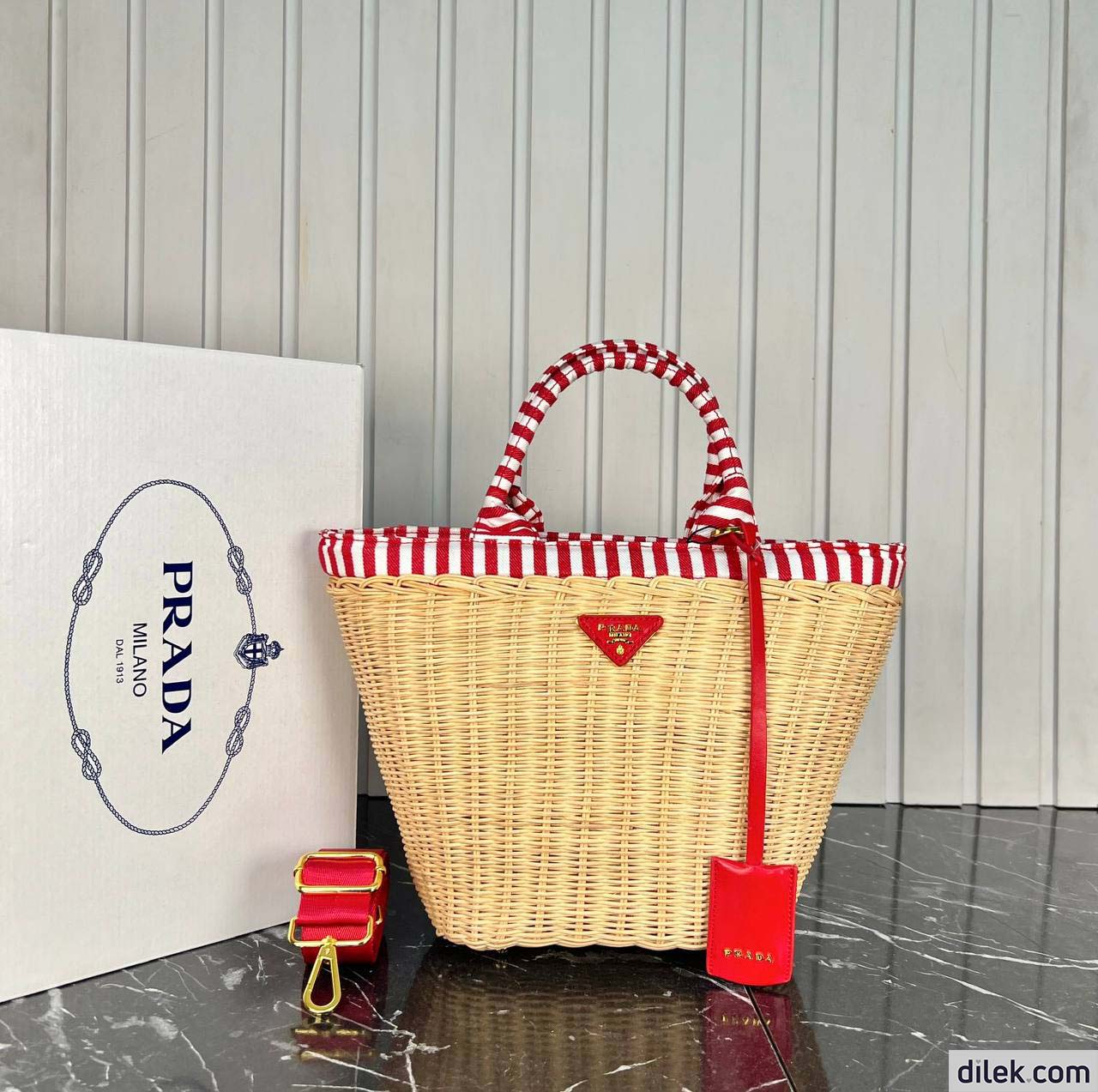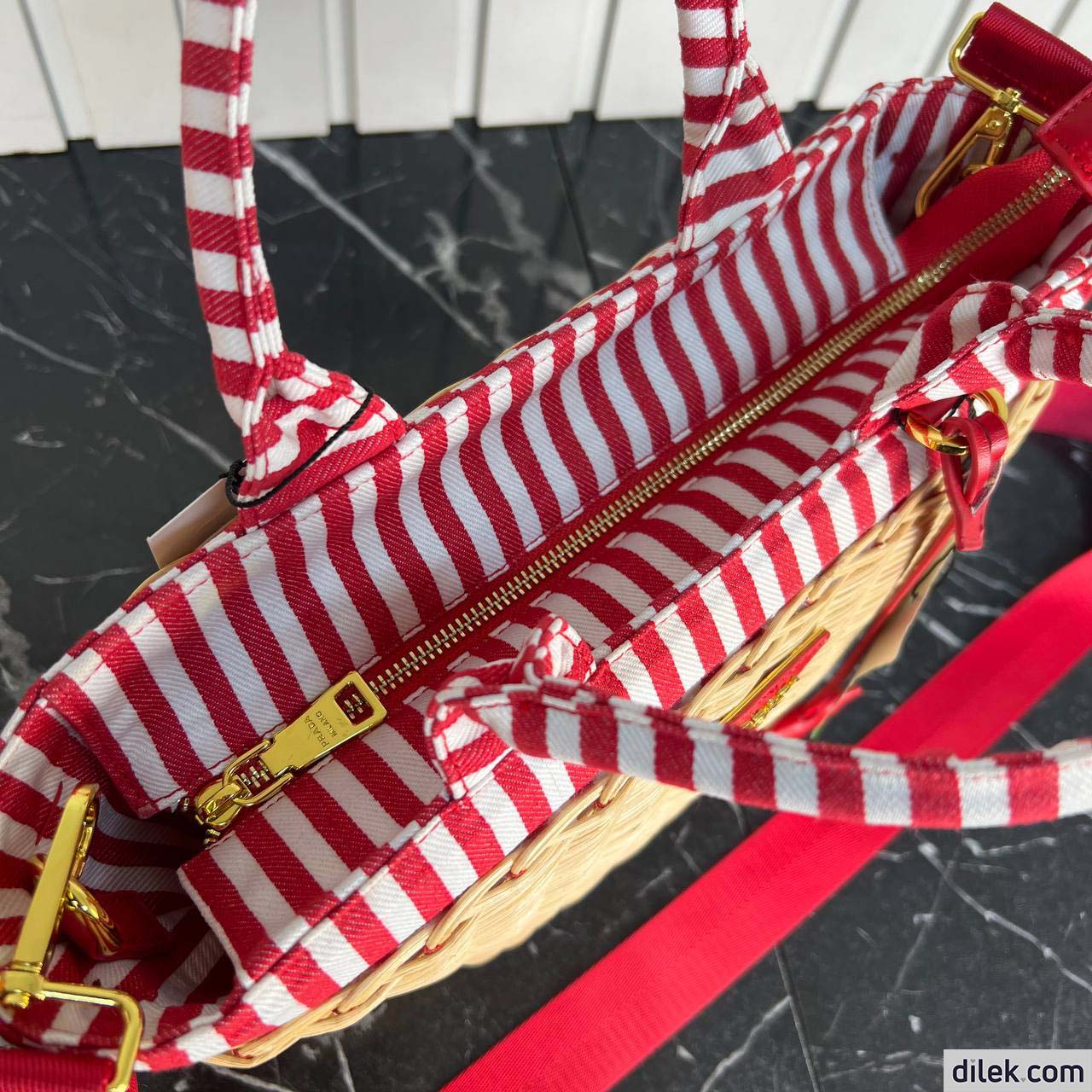 Prada Wicker Basket handbag Black canvas lining Golden hardware Comes with a Prada shoulder strap.
