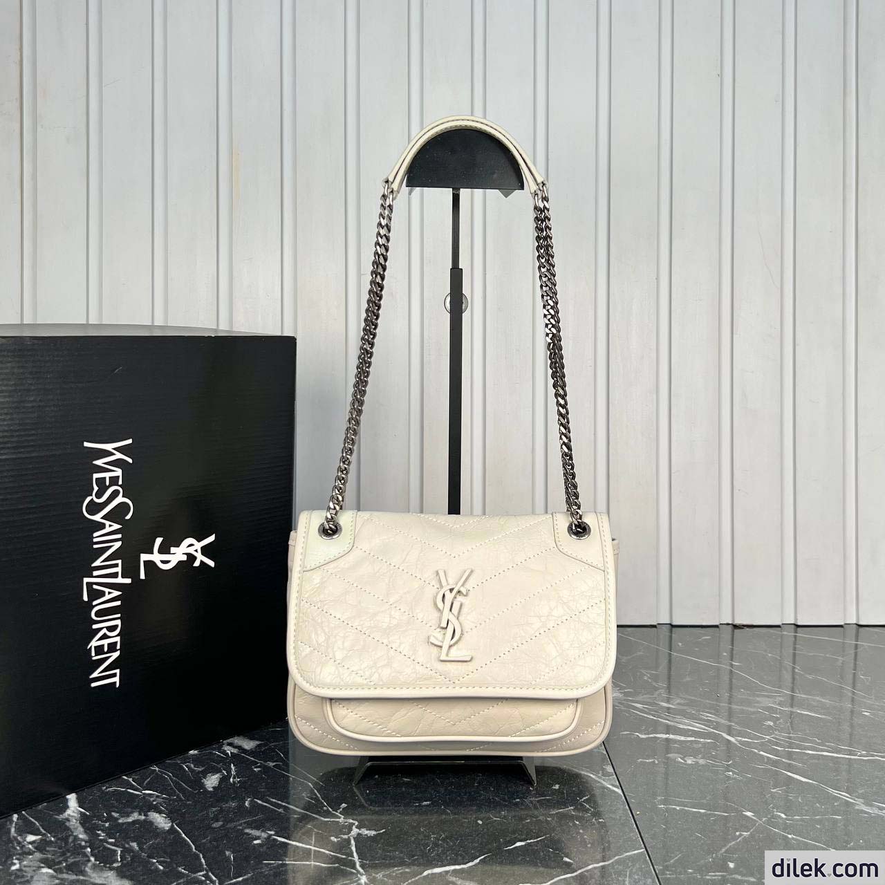 Small bag with front flap and the cassandre, featuring a convertible leather-and-chain shoulder strap,